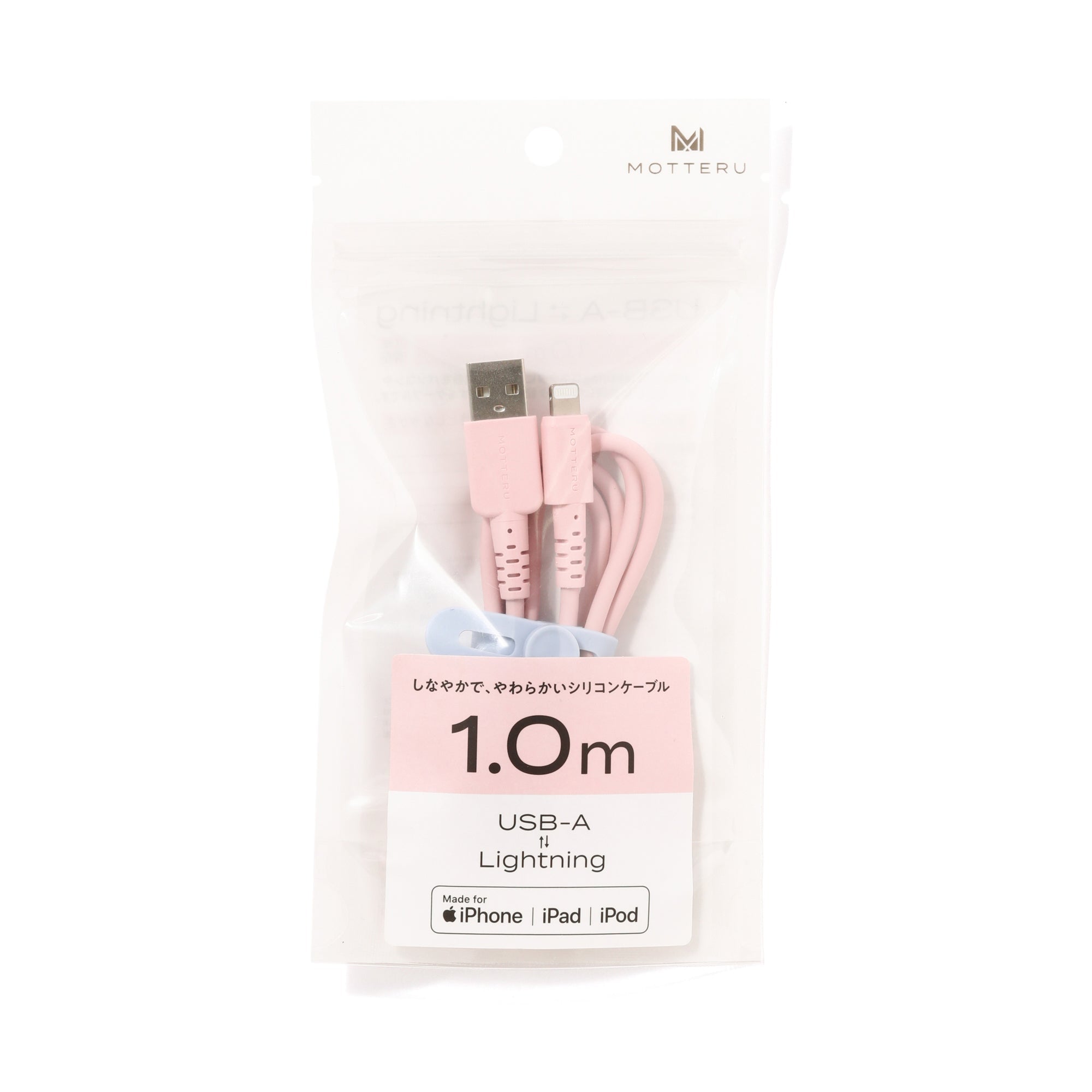 シリコンケーブル USB-A to Lightning 1m ピンク
