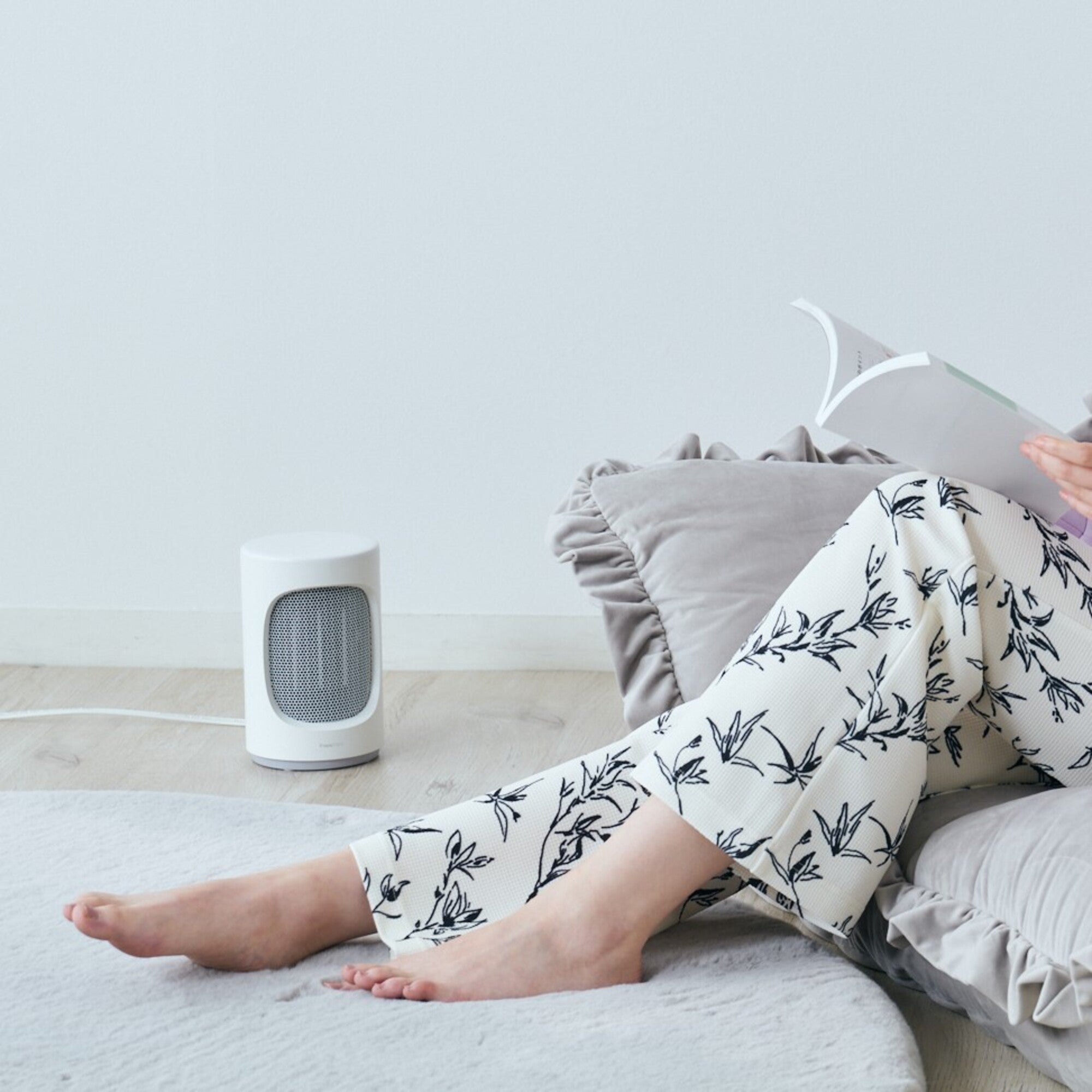 足元などパーソナル空間を暖められる、ミニサイズのファンヒーターです。足元が冷えるデスクワークや、冬場の脱衣所にあると嬉しいアイテム。暖房出力2段階調整+送風モードでお好みの暖かさに調整出来ます。2時間自動オフ設定もあるので、万が一の時も安心です。ワンボタンでの簡単操作。ランプの点灯数により、暖房出力の強弱や送風運転が切り替わります。優しいカラーでインテリアに馴染みやすいので、いろいろな場面で活躍してくれます。
