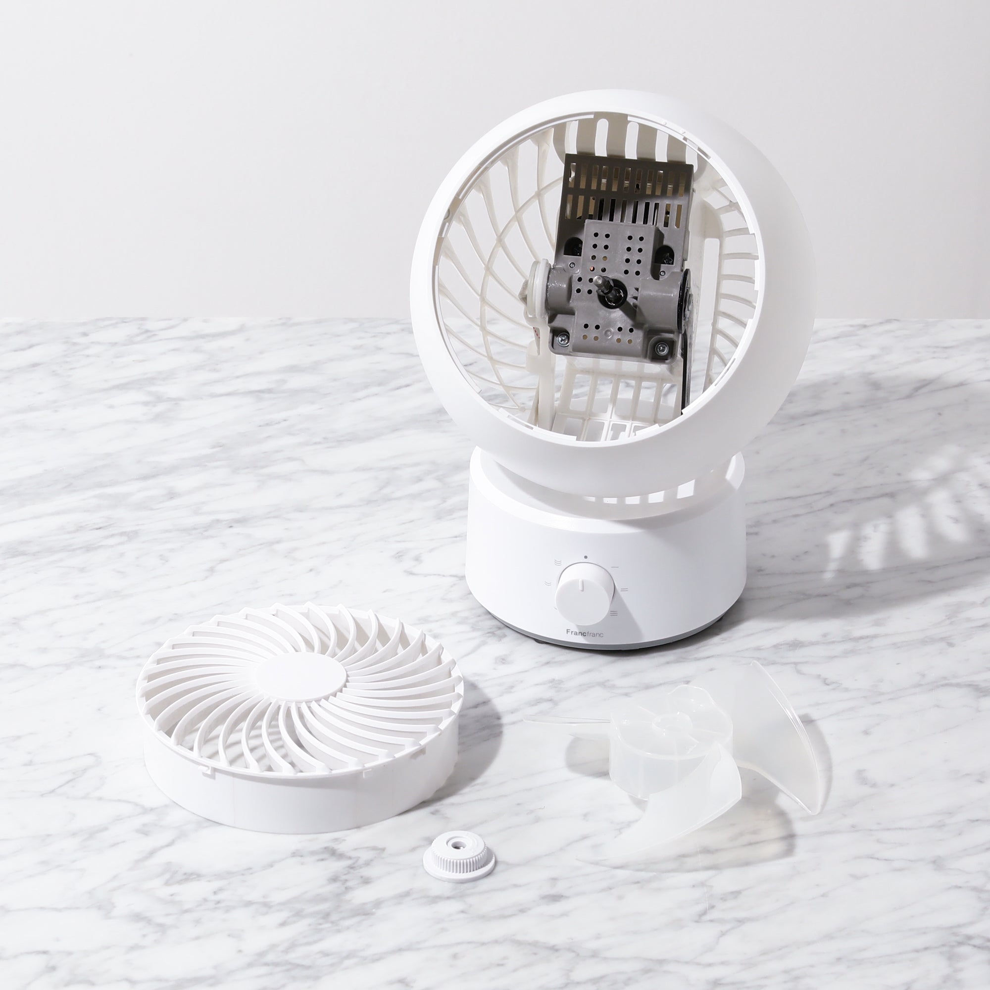 おしゃれでパワフルなサーキュレーターコンパクトなボディからは想像できないパワフルな風をお届けするサーキュレーターです。約25m先まで届く強力な直進風で、こもりがちなお部屋の空気をしっかり循環・換気できます。上手に使って冷暖房効果アップ一人暮らしのお部屋にぴったりなコンパクトサイズながらパワフルな風力が魅力。扇風機のふんわり広がる風とは異なり、力強い風がまっすぐ進んで空気をしっかり循環させます。正面から真上まで、手動で4段階の角度調整が可能です。左右の自動首振り機能つきで、部屋干しの洗濯物も素早く乾かします。エアコンとのダブル使いで空気を循環させれば効率よく室温を調整できて電気代節約にもつながります。3段階の風量調整が可能。ミニサイズの扇風機として、脱衣所などのスモールスペースでスポット使いするのもおすすめです。お手入れラクラク特別な工具なしで前ガードと羽が簡単に取り外せます。分解してお掃除できるので一年を通して清潔にお使いいただけます。