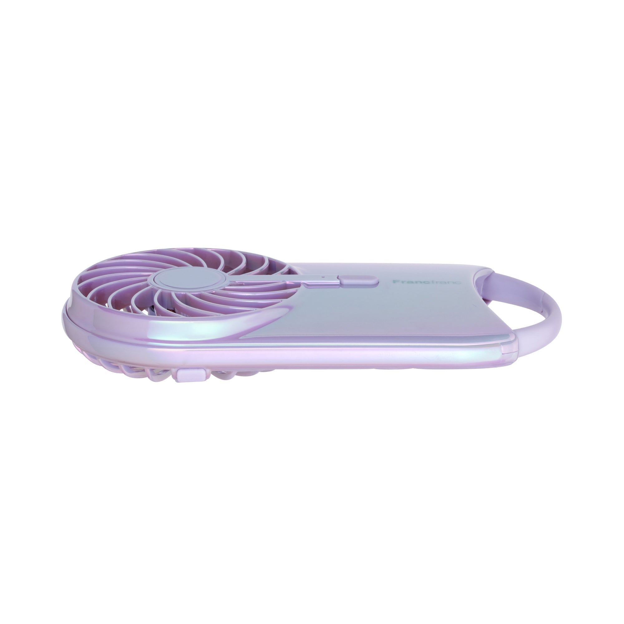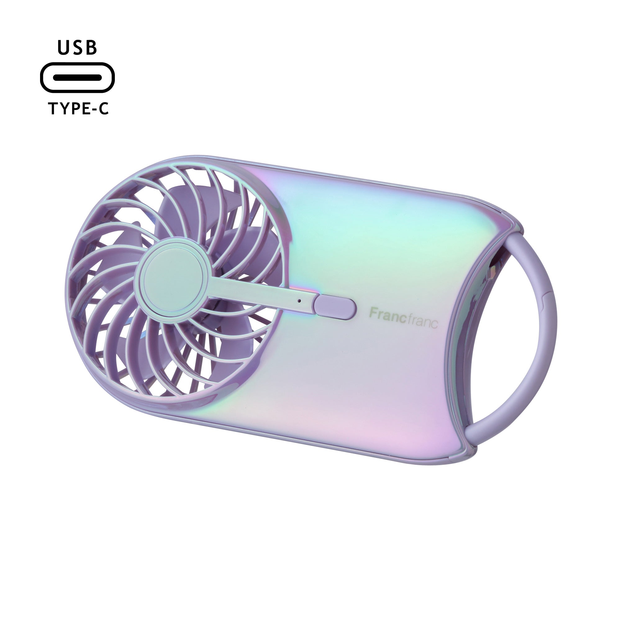 【ハンディファン買い替えキャンペーンクーポン利用対象品】※クーポン利用期間:2024年3月22日(金)10:00~2024年6月23日(日)23:59▼詳細はこちらハンディファン買い替えキャンペーン================スリム&パワフルな薄型ファン持ち歩きに特化した薄型ファンです。既にハンディファンをお使いの方にもおすすめしたいアイテムです。薄さわずか2.5cmのスリムタイプフレキャリーファンの特長はなんといってもスリムなフォルム。わずか2.5cmの薄さで、胸ポケットやバッグに入れてもかさばりません。大きなカラビナが付いているからリュック、バッグ、ベルトストラップなどにさっと取り付け可能。持ち歩く姿もスタイリッシュです。ボタン長押しで電源をON/OFFできる仕様なのでバッグにそのまま入れても誤作動を防ぎ、安全に持ち運べます。パワフル風量5枚の耐久力のある羽が作るパワフルな風をどこにでも持ち運べます。風量は3段階調節が可能なのでお好みに合わせてお使いください。デスクにも置けるスタンド一体型スタンドが本体と一体になっているので置き型としてもご使用いただけます。パワフルな風量でデスクに置いた時もしっかり風を感じられます。パソコンなどのUSBポートから充電できて便利。また、2024年モデルよりUSB Type-Cを採用しています。※オーロラ加工には個体差があります。サイズW75×D25×H147mm コードの長さ:約78cm素材本体・ハネ:ABS重量0.08 kgカラーPU品番 1109100030227 全国一律550円(税込)です。雑貨の商品金額合計が5,000円(税込)以上の場合、送料無料で配送いたします。※手数料、ラッピング料、付帯サービス料は含みません。※新生活期・年末年始は出荷や配送の繁忙期となるため、日時指定をいただいてもご希望日時通りお届け出来ないことがございます。■付属品:充電用USBケーブル■電池:リチウムイオン蓄電池■USBコネクタ規格:USB Type-C■充電時間:約2時間15分■電源種類・消費電力:DC5V 800mA・4W■バッテリー容量:1200mAh■連続使用時間:約1時間50分~4時間※使用する風量の強さによって異なります。■タイマー機能:無■取扱説明書:有■保証書:有 保証期間:6ヶ月■故障の原因になるため、必ず付属のケーブルをご使用ください。■充電時間は接続機器の電源供給能力が低い場合、極端に長くなる可能性があります。■連続使用時間は選んだ風量によって異なります。■オーロラ加工には個体差があり、表面の色や模様がそれぞれ異なる場合があります。■オーロラ柄には抗菌加工は施されておりません。■加工特有のにおいがすることがありますが、商品本体に問題はございません。また、時間の経過と共ににおいはなくなります。■原産国:中国