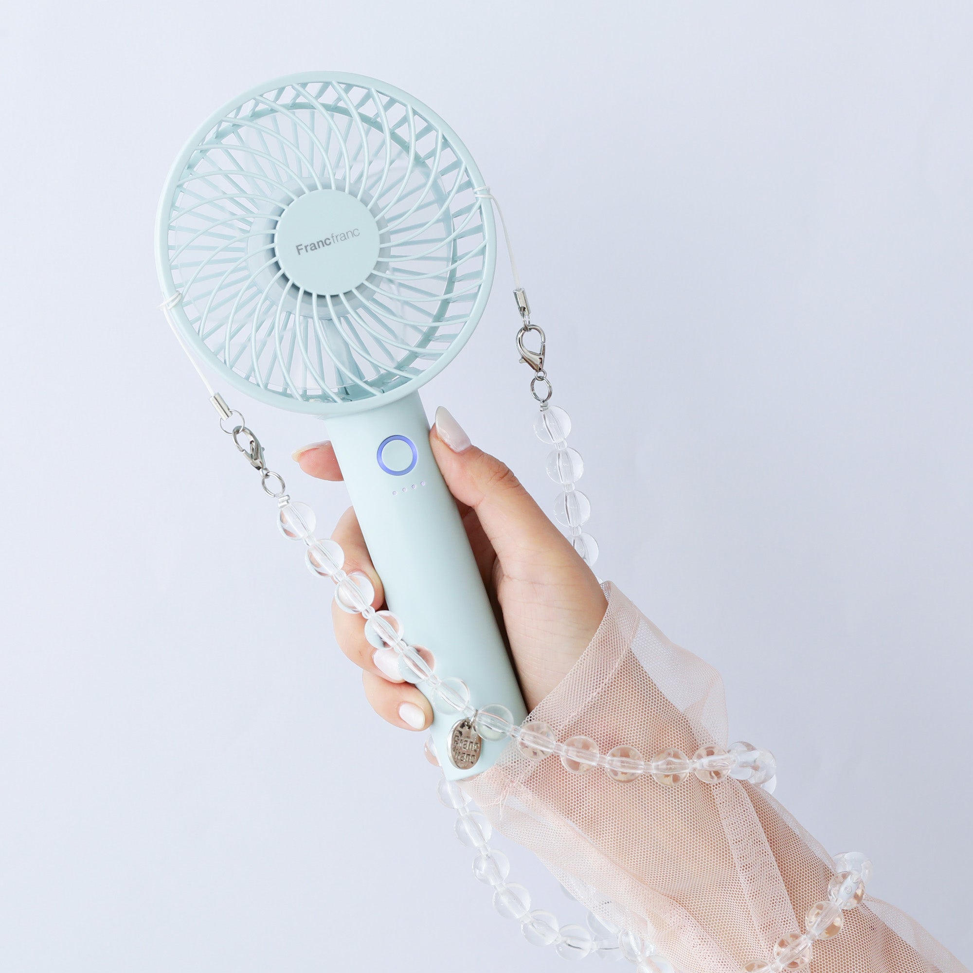 フレ シリーズのファンに取り付けることができるネックストラップです。涼し気で遊び心のあるデザインはどんなハンディファンにも合わせやすいところが魅力です。金具を繋げてマルチストラップとしても使用可能。ショルダー使いもオススメです。※耐荷量200g