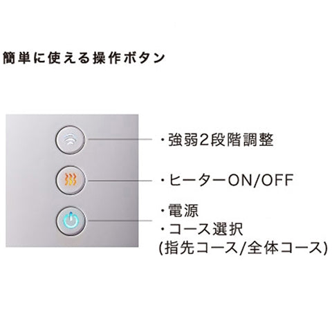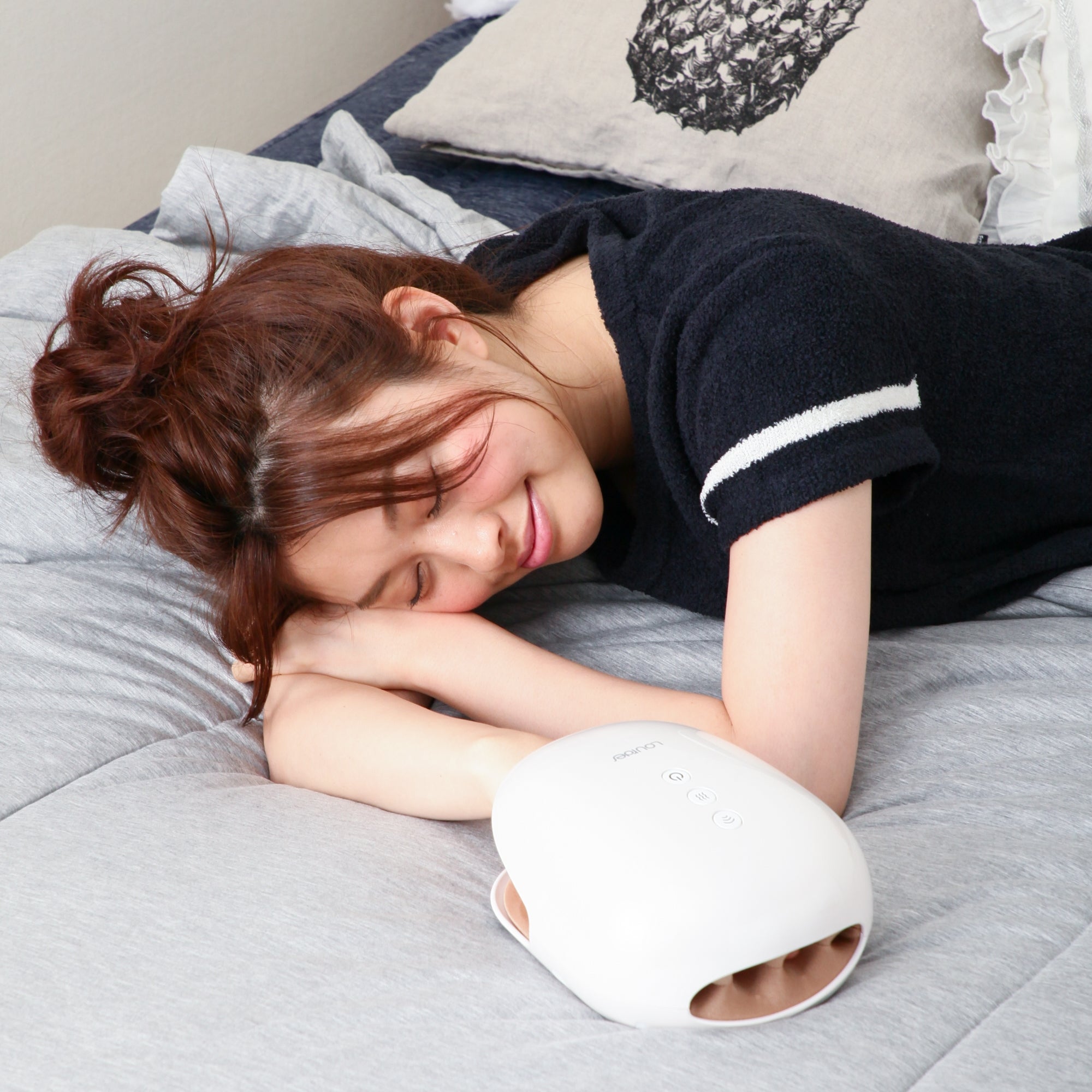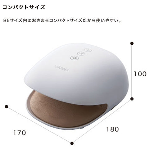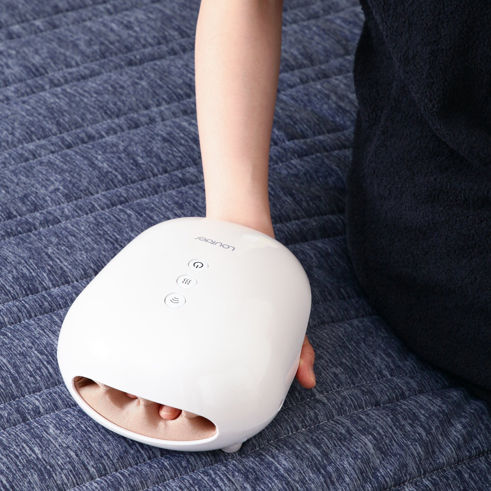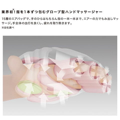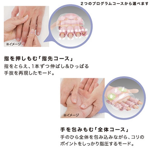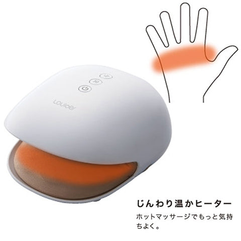 業界初、指を1本ずつ包むグローブ型ハンドマッサージャーです。パソコン疲れやスマホ疲れ、家事疲れに、エアバッグ×ヒーターのW効果で気軽にご褒美マッサージが楽しめます。めぐりをよくするハンドケア15層のエアバッグを搭載、手のひらはもちろん指の1本1本までエアの力でもみ出しマッサージ。手全体の血行を改善して疲れを取り除きます。乾燥が気になる時は、お好みのハンドクリームを塗ったあとに付属のビニール手袋をつけてマッサージ。うるおいとほぐしの相乗効果で癒し度アップです。2つのプログラム+ヒーター効果指を押しもむ「指先コース」と、手を包みもむ「全体コース」の2つのコースが選べます。ヒーターも付いているので、じんわりあったかホットマッサージでさらに気持ちよく。強弱2段階・ヒーターON/OFFのコース選択が、3つのボタンで簡単に操作できます。かわいくご褒美マッサージB5サイズにおさまるころんとコンパクトなデザイン。16種類のシール付きで、かわいくデコレーションして使えます。