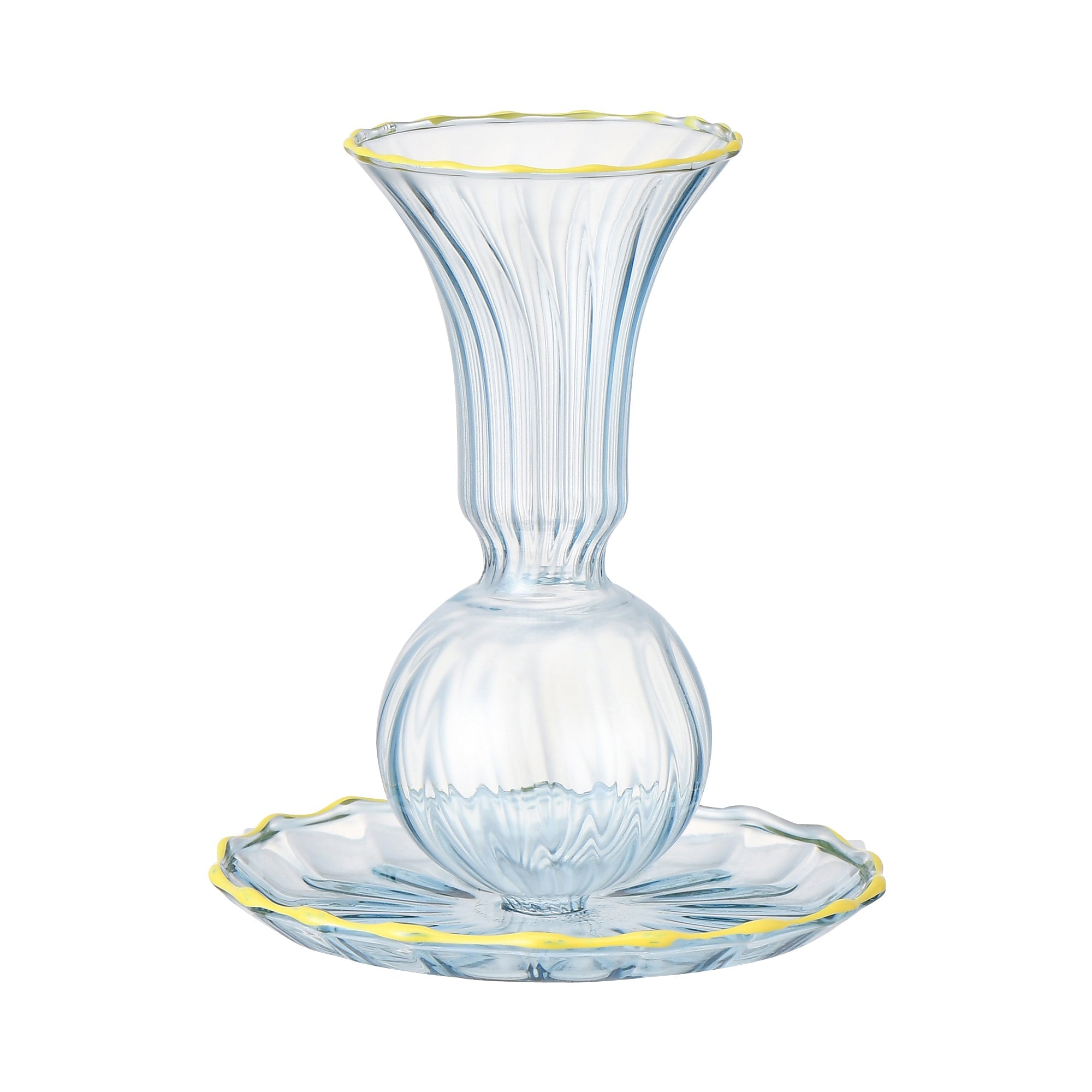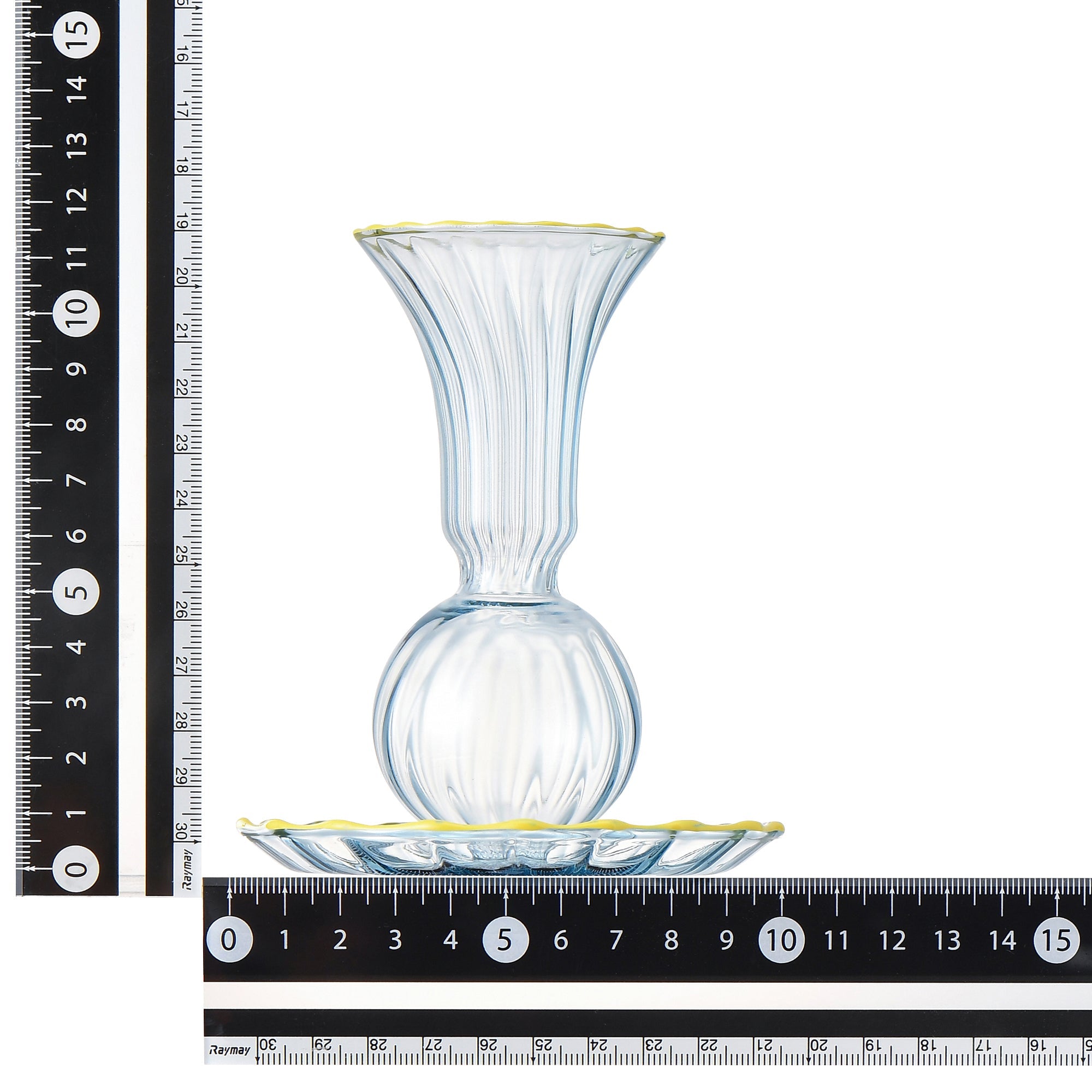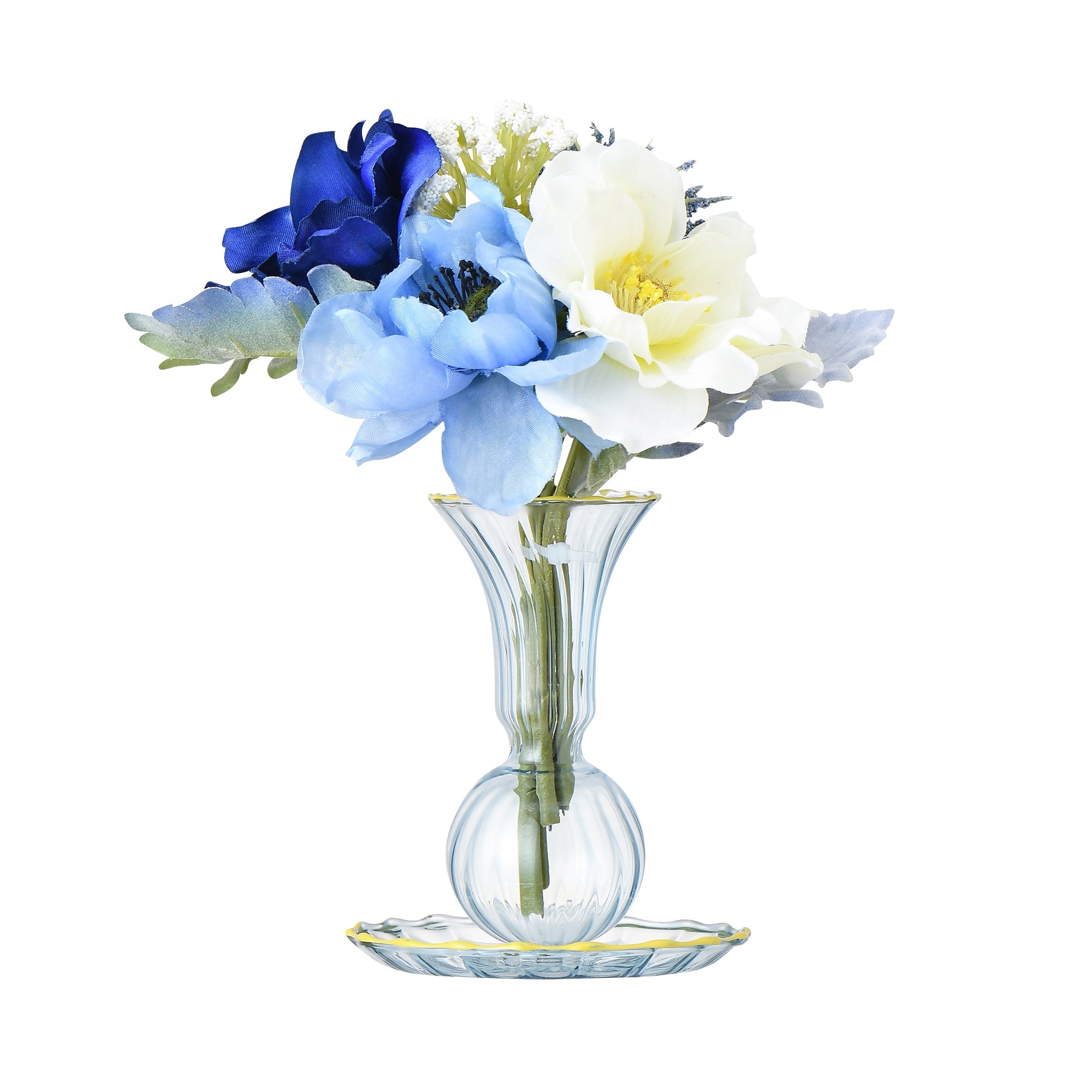 プチブーケにぴったりのカラフルで繊細な手作りのガラスミニベースです。縁のカラーリングがそれぞれ異なるので、ガラスの色とブーケを同じ色にしたり、縁の色とブーケを同じ色にしたり、色んな組み合わせを楽しんでください。切り花を最後まで楽しむ目的や、お花を短めに飾って並べても素敵です。複数お気に入りスペースに並べるのもおすすめ。