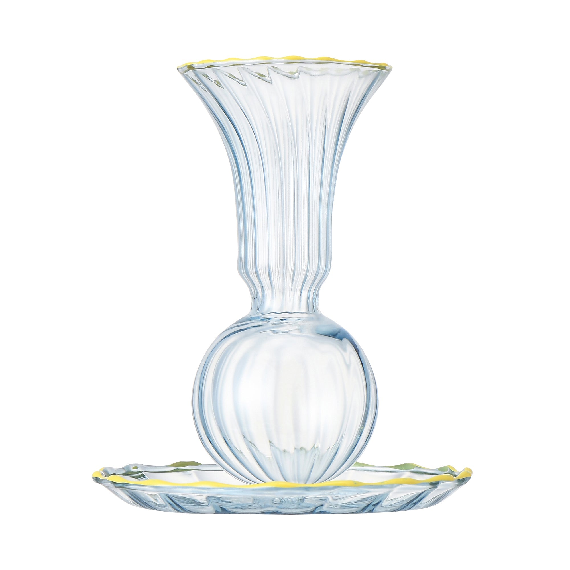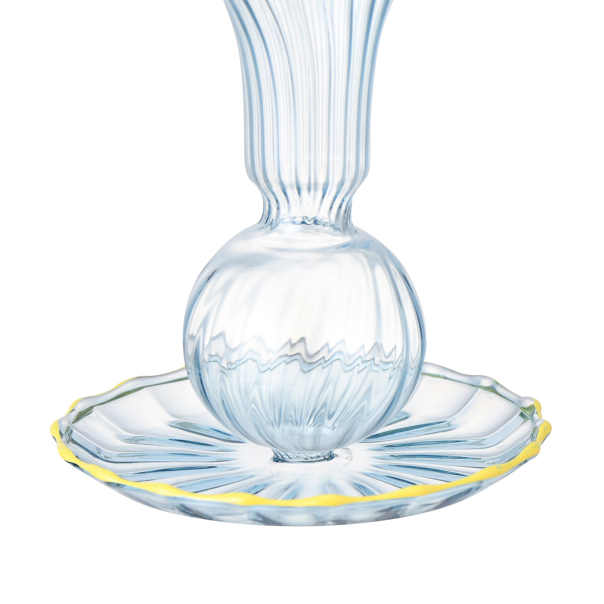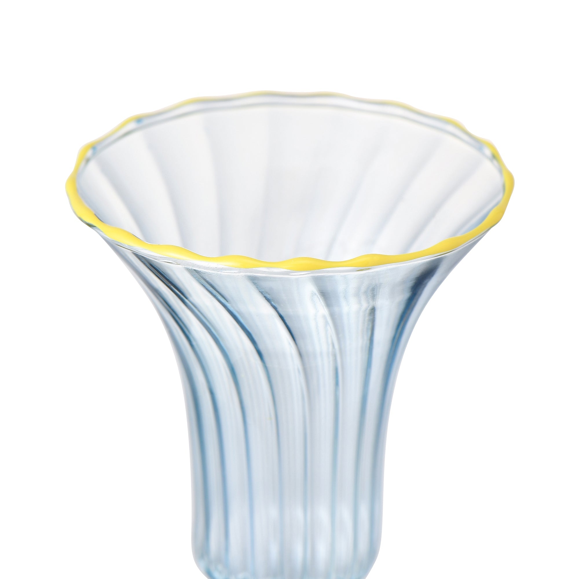 プチブーケにぴったりのカラフルで繊細な手作りのガラスミニベースです。縁のカラーリングがそれぞれ異なるので、ガラスの色とブーケを同じ色にしたり、縁の色とブーケを同じ色にしたり、色んな組み合わせを楽しんでください。切り花を最後まで楽しむ目的や、お花を短めに飾って並べても素敵です。複数お気に入りスペースに並べるのもおすすめ。