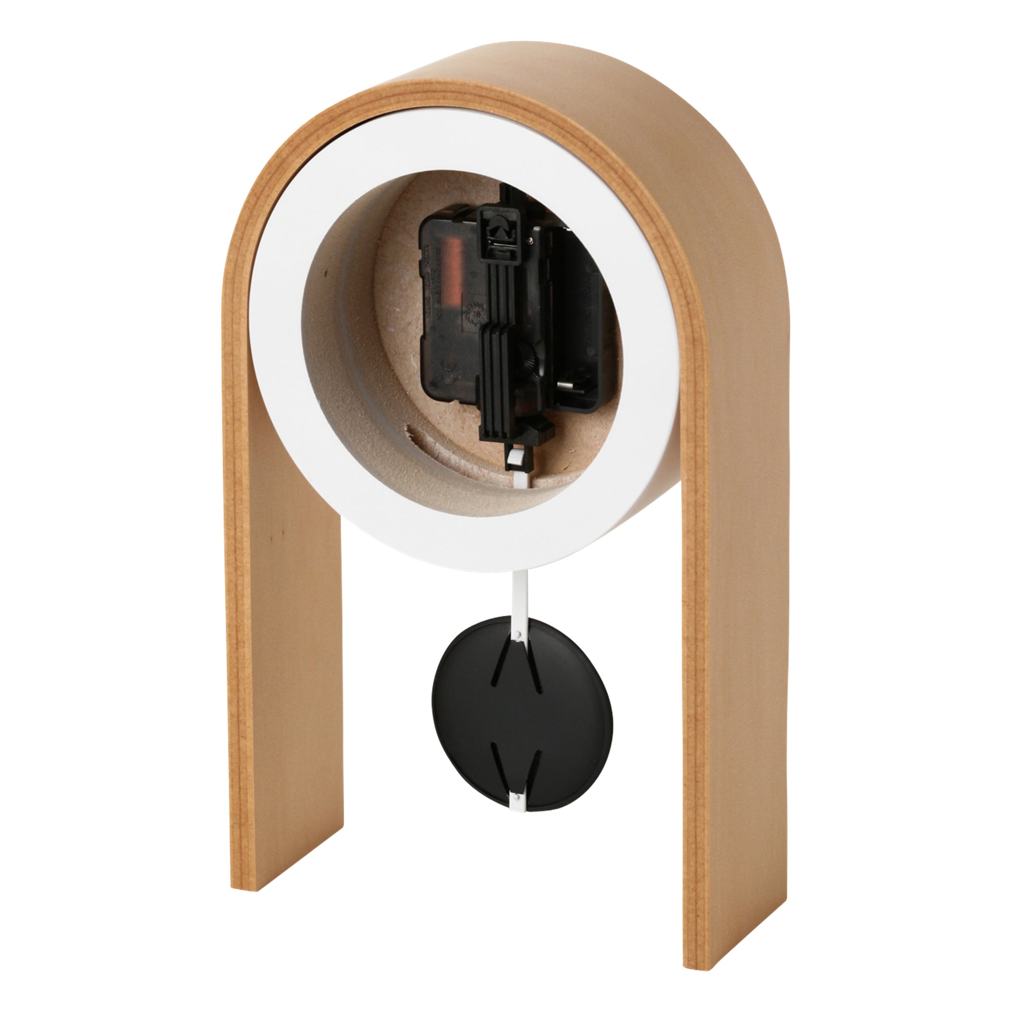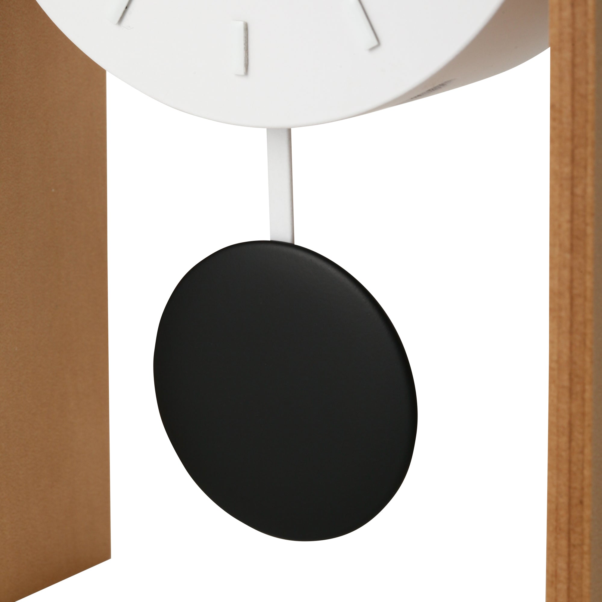 柔らかいウッドカラーとホワイトの組み合わせがインテリアに合わせやすい振り子時計です。 スイープムーブメントを使用しており、カチカチ音が鳴りにくい仕様です。 ※秒針は付いておりません。