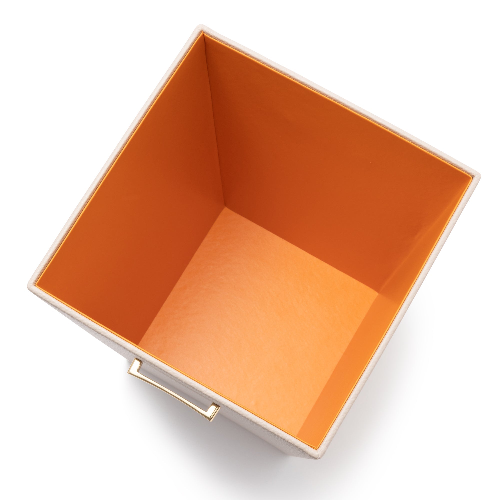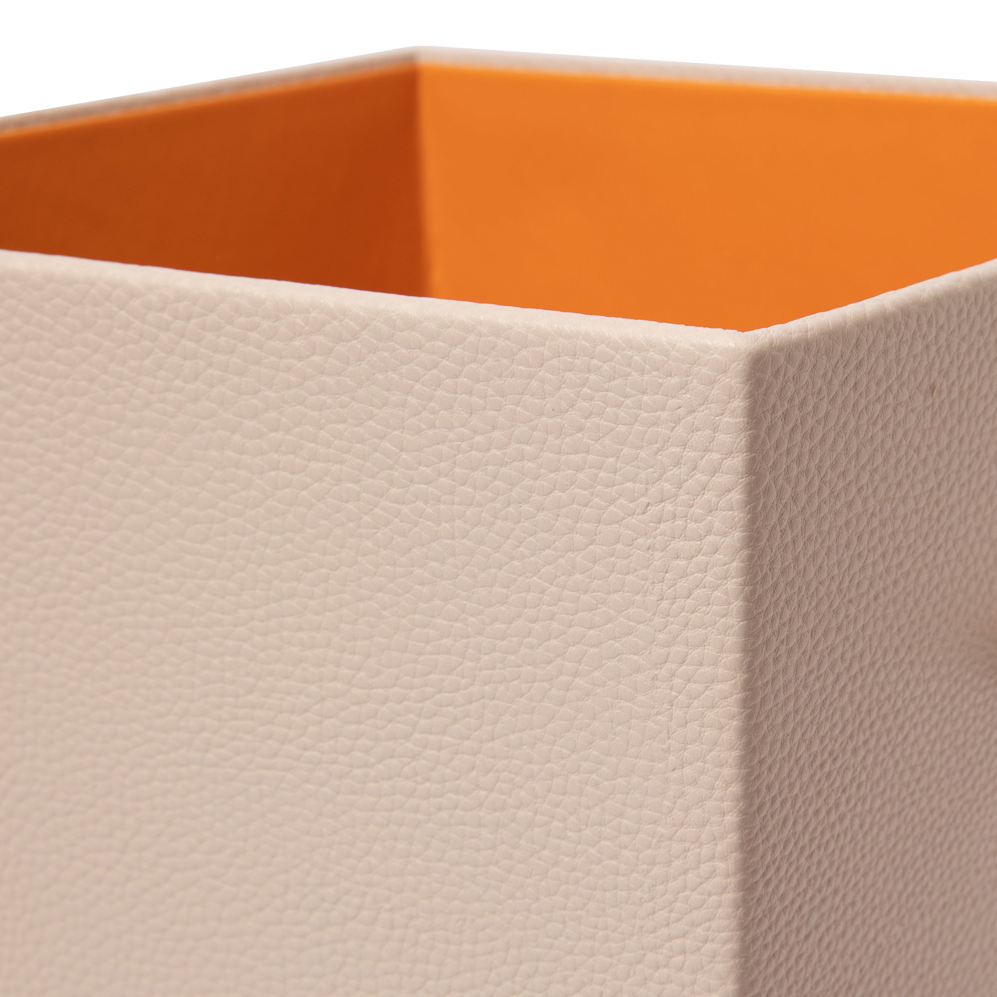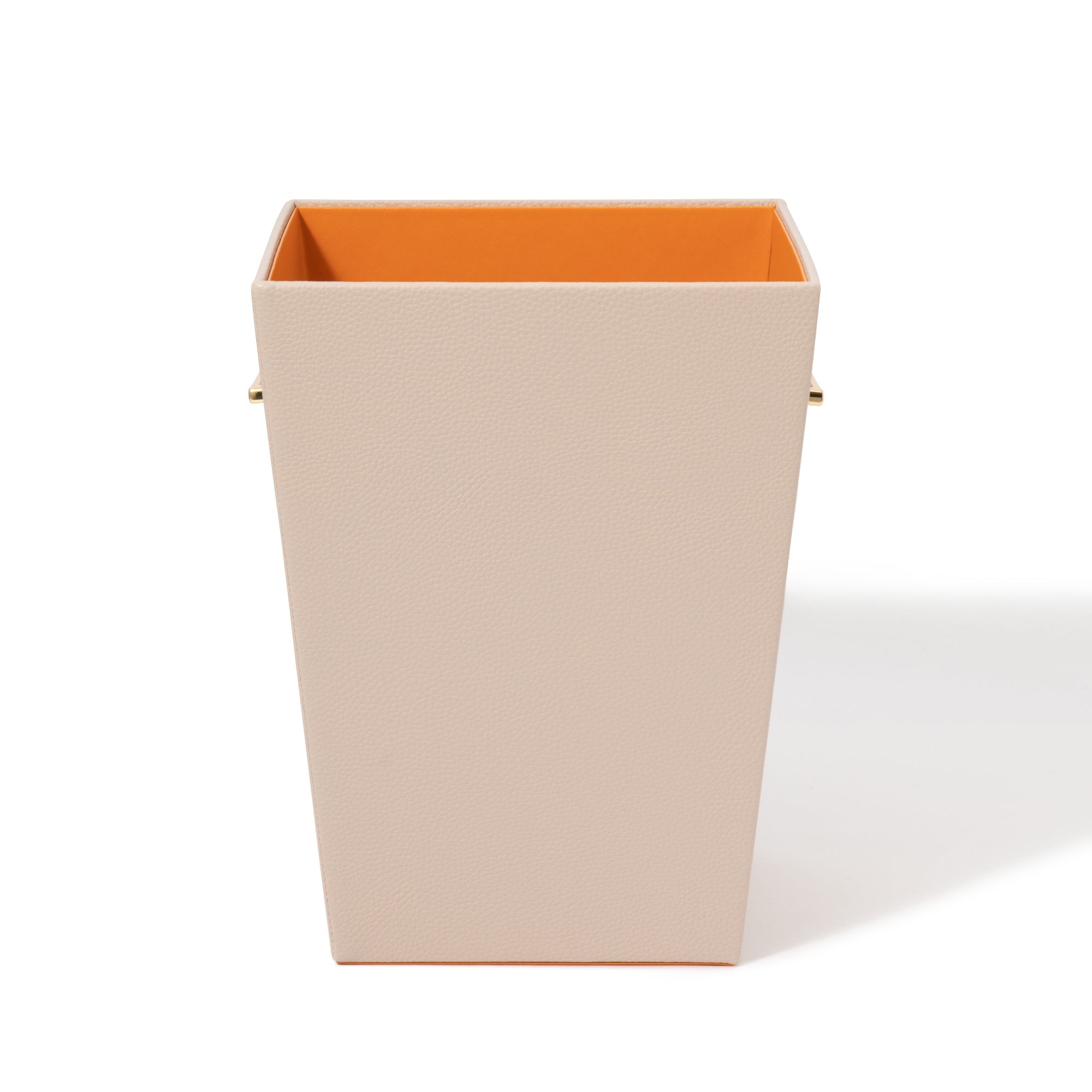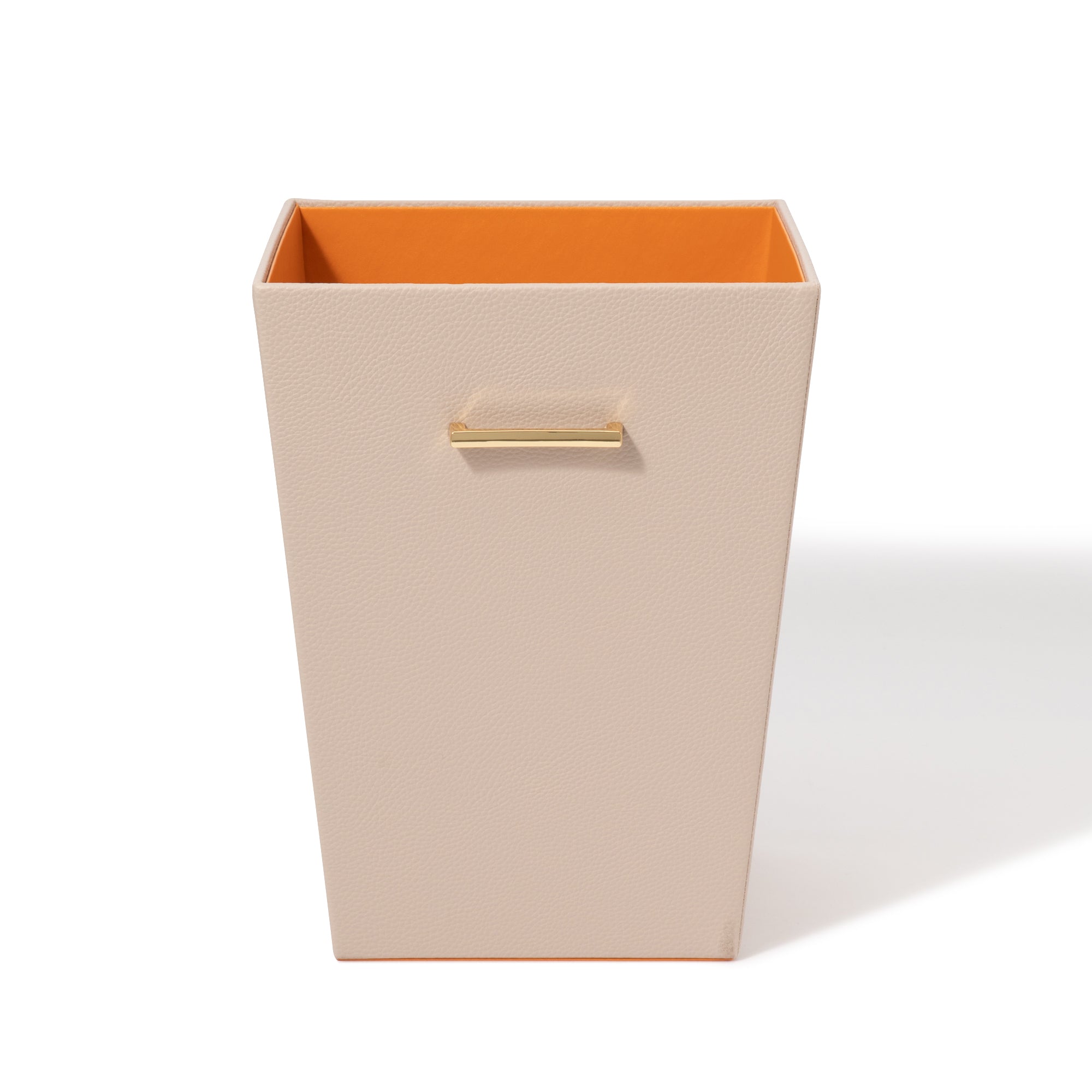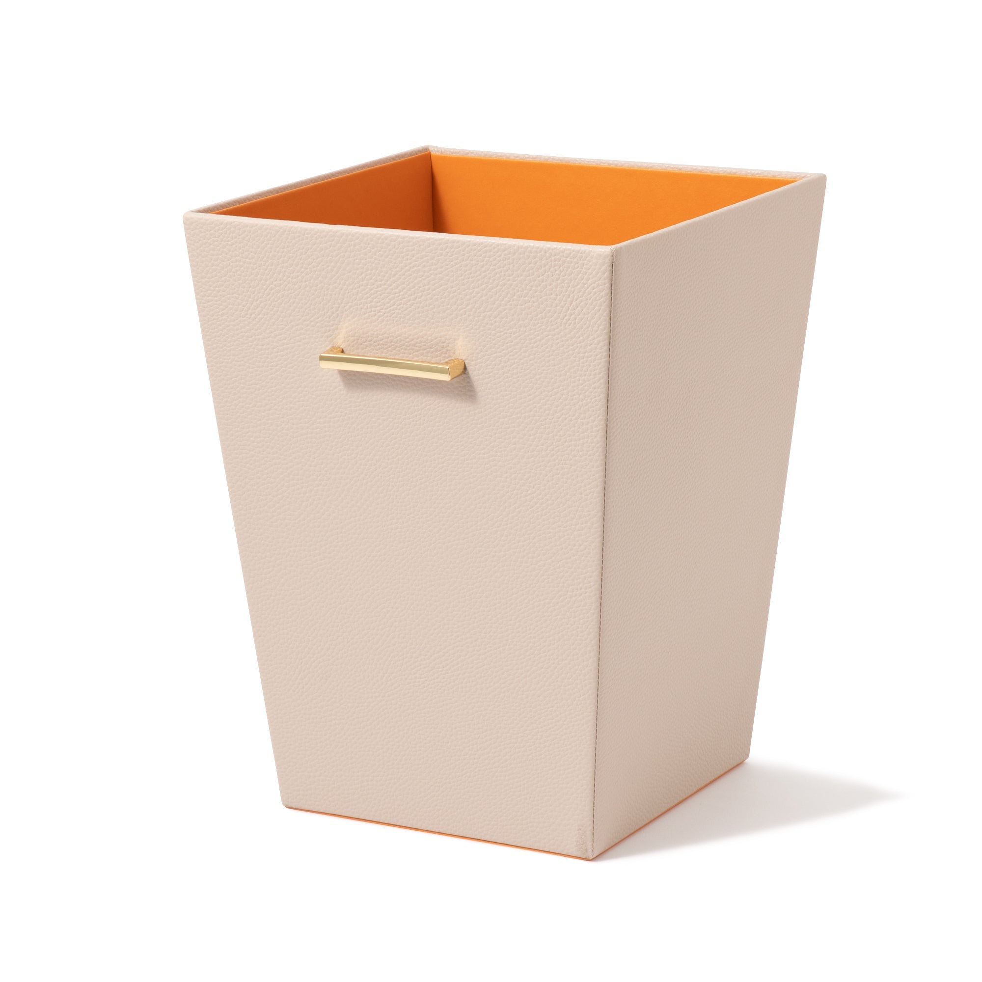 大人らしく上品なデザインのダストボックスです。皮革を模した素材にゴールドの金具をあしらうことで、上品で落ち着いた印象になっています。スクエアの形が甘くなりすぎず、オシャレに使用できます。キラッと輝くゴールドの取っ手が上品さと高級感をプラスしてくれます。外側はインテリアに合わせやすい落ち着いたカラーですが、内側と上部はパッと明るくなるオレンジのカラーです。物を入れていても、チラッと見えるオレンジが可愛いポイントです。ゴミ箱としてではなく、雑誌や小物を入れて、マルチボックスとしても使用してできます。