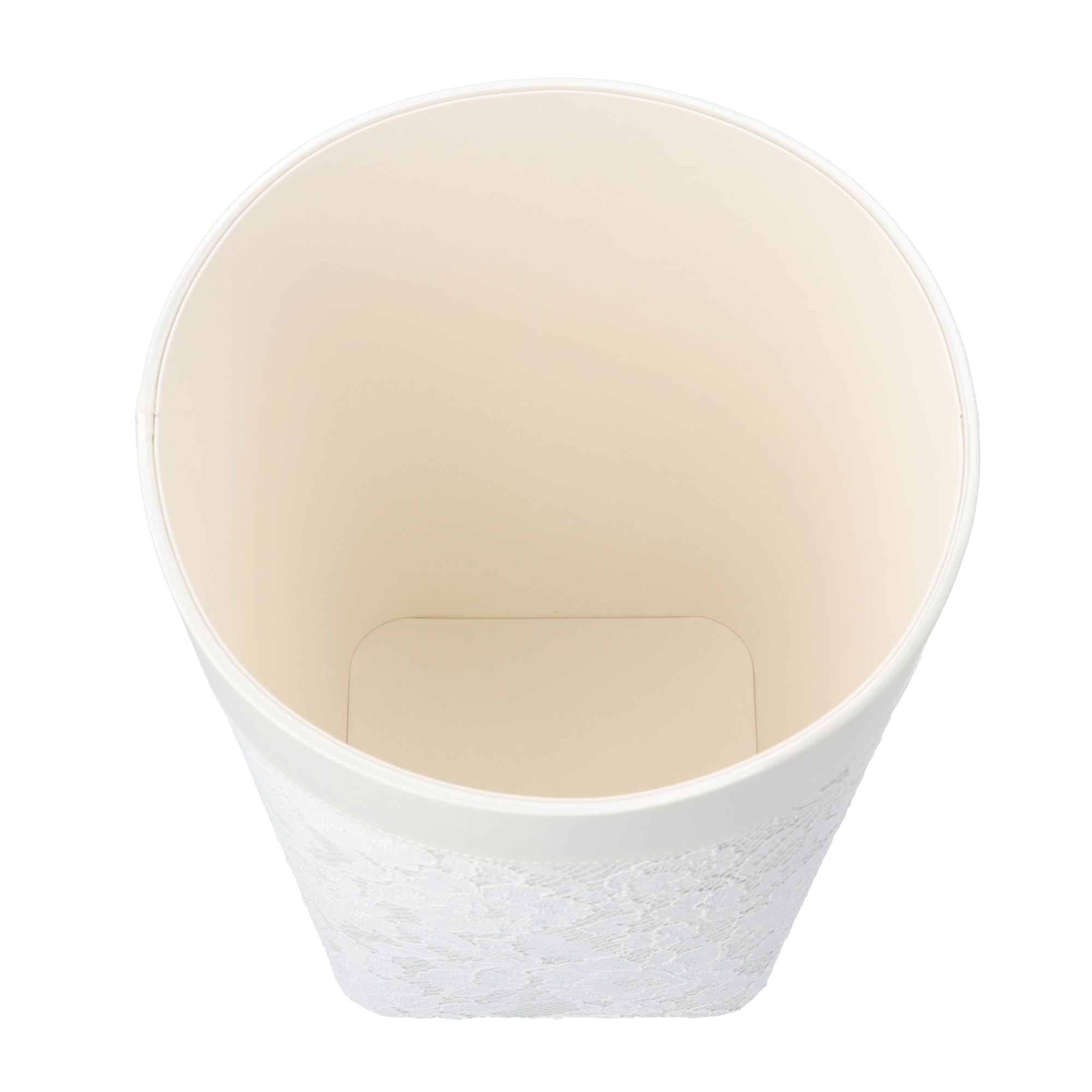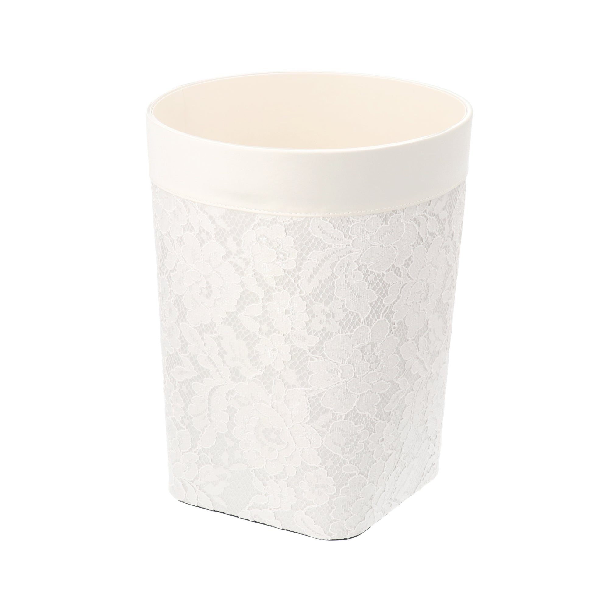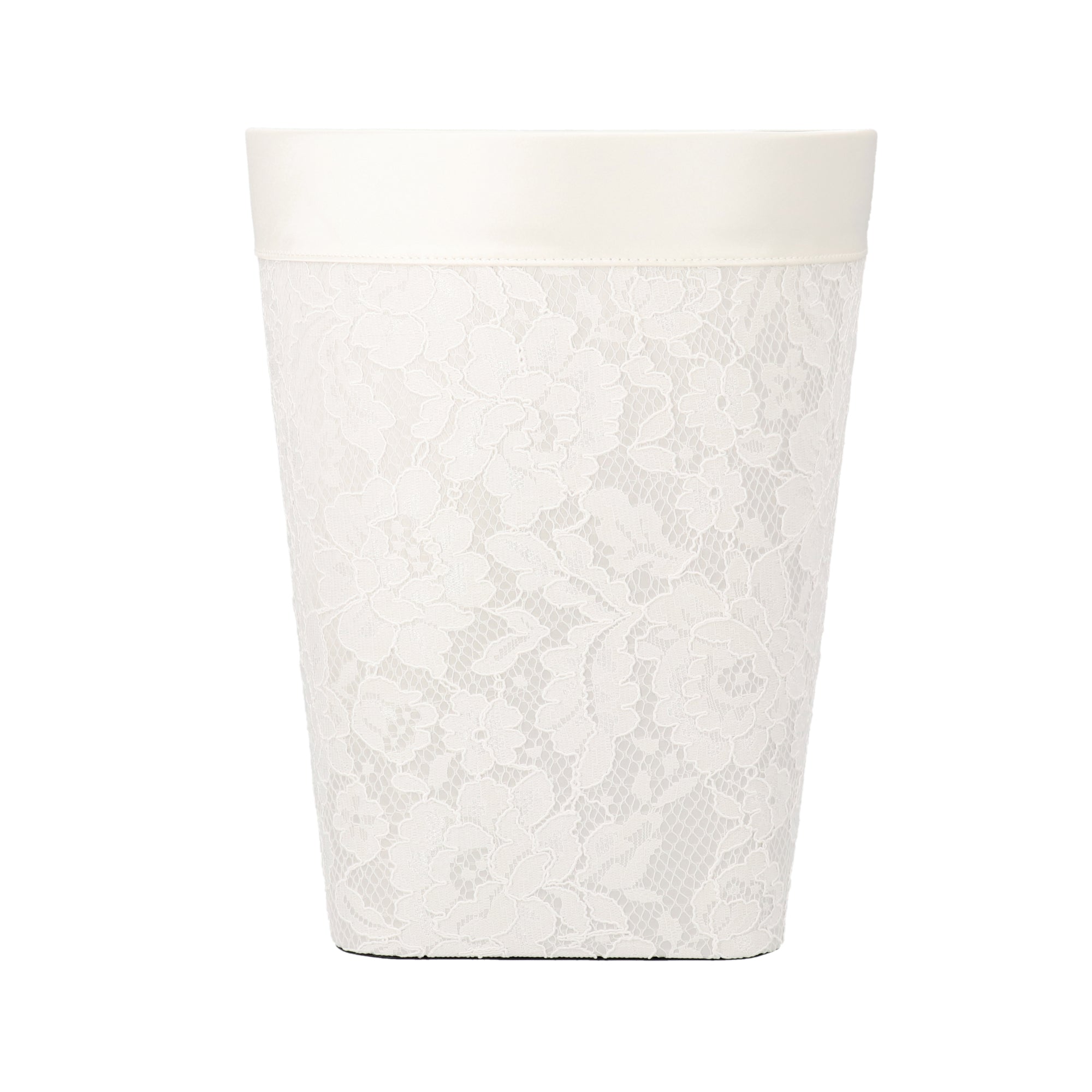 表面にレース生地をあしらった上品なデザインのダストボックスです。生活感が出にくいので、急な来客時も安心です。
