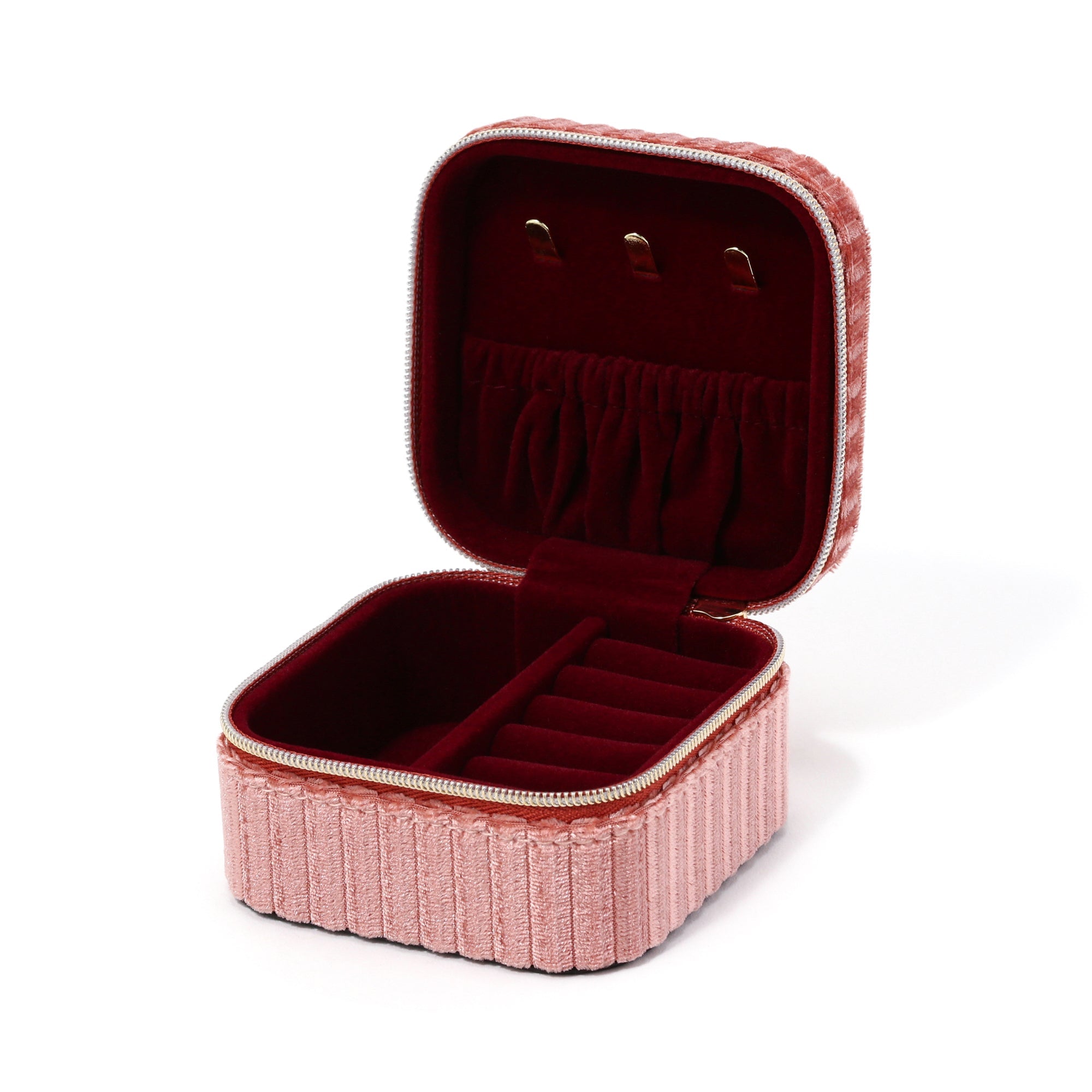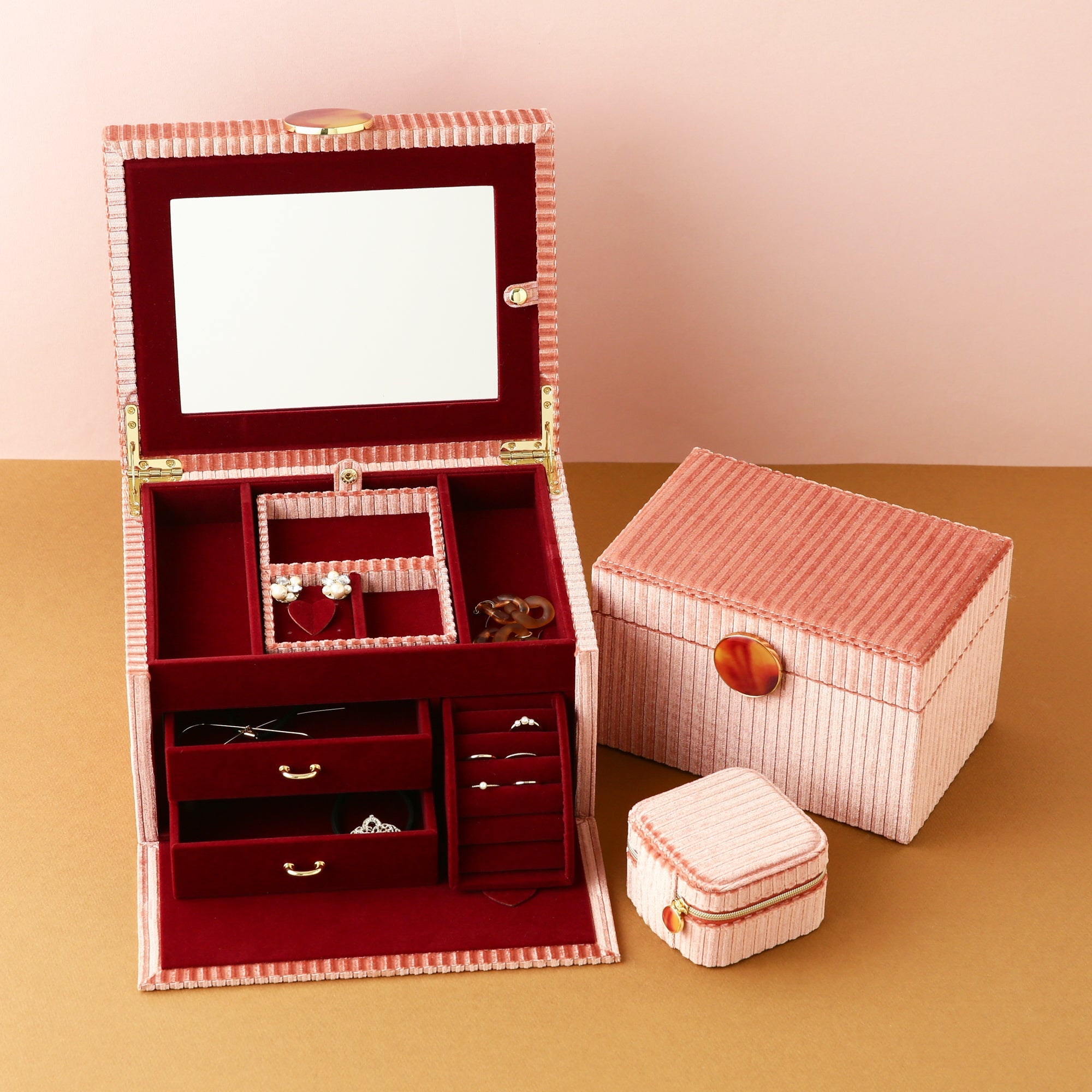 ストライプベロア トラベルジュエリーボックス ピンク