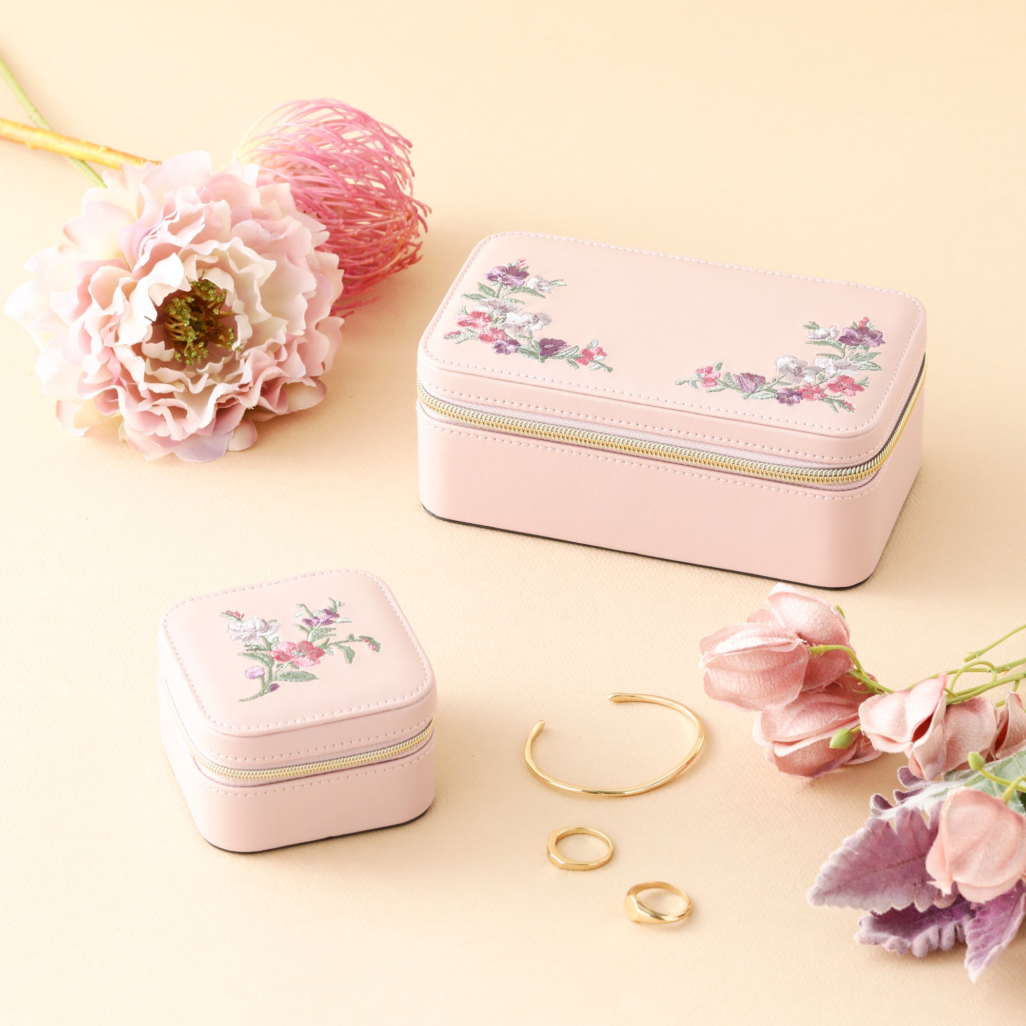 エンブロイダリーフラワー トラベルジュエリーボックス S ピンク