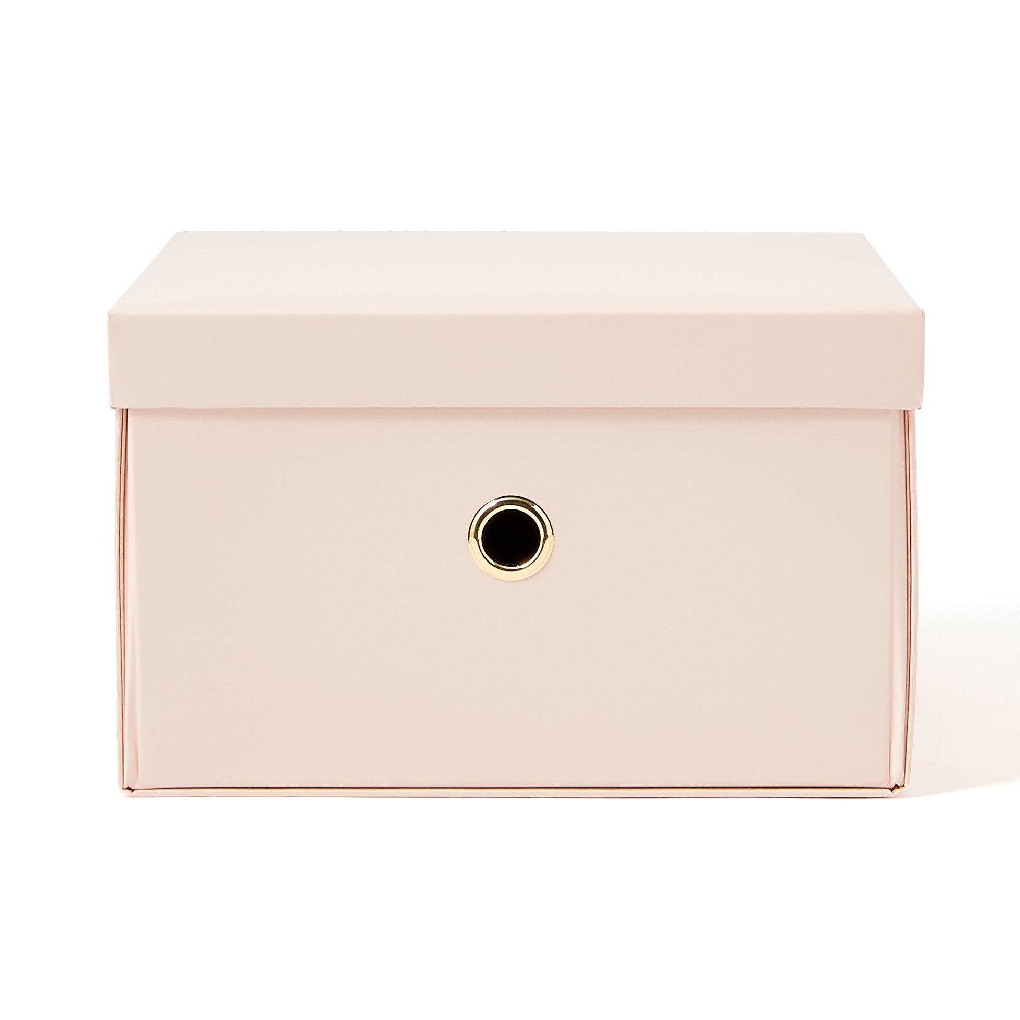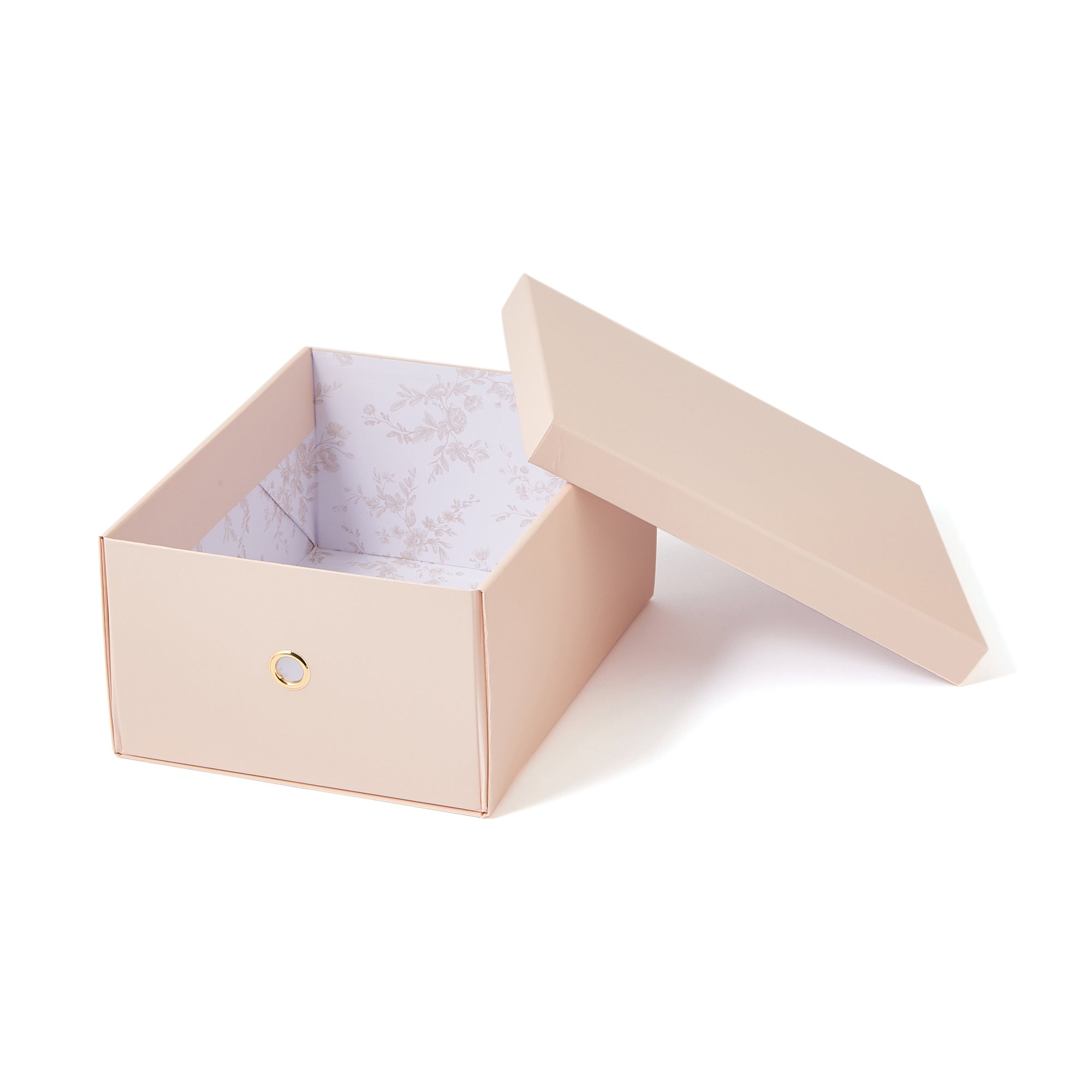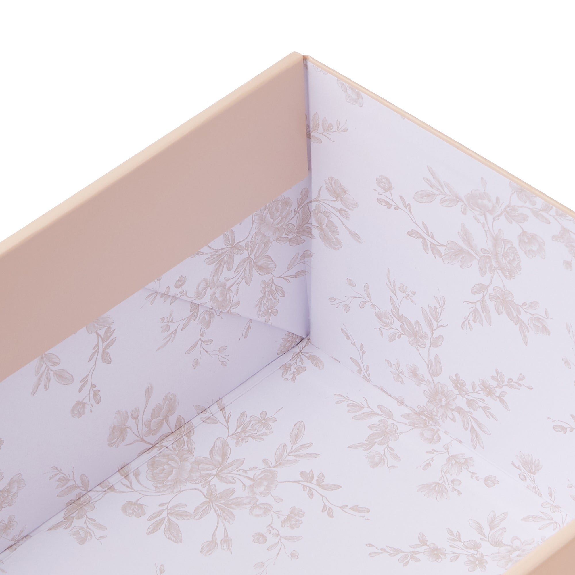 3ステップで簡単に組み立てられる収納ボックスです。使用しないときは折りたたんでコンパクトにしまうことができます。外側はお部屋に合わせやすい単色、内側に優しい花柄プリントを施しました。