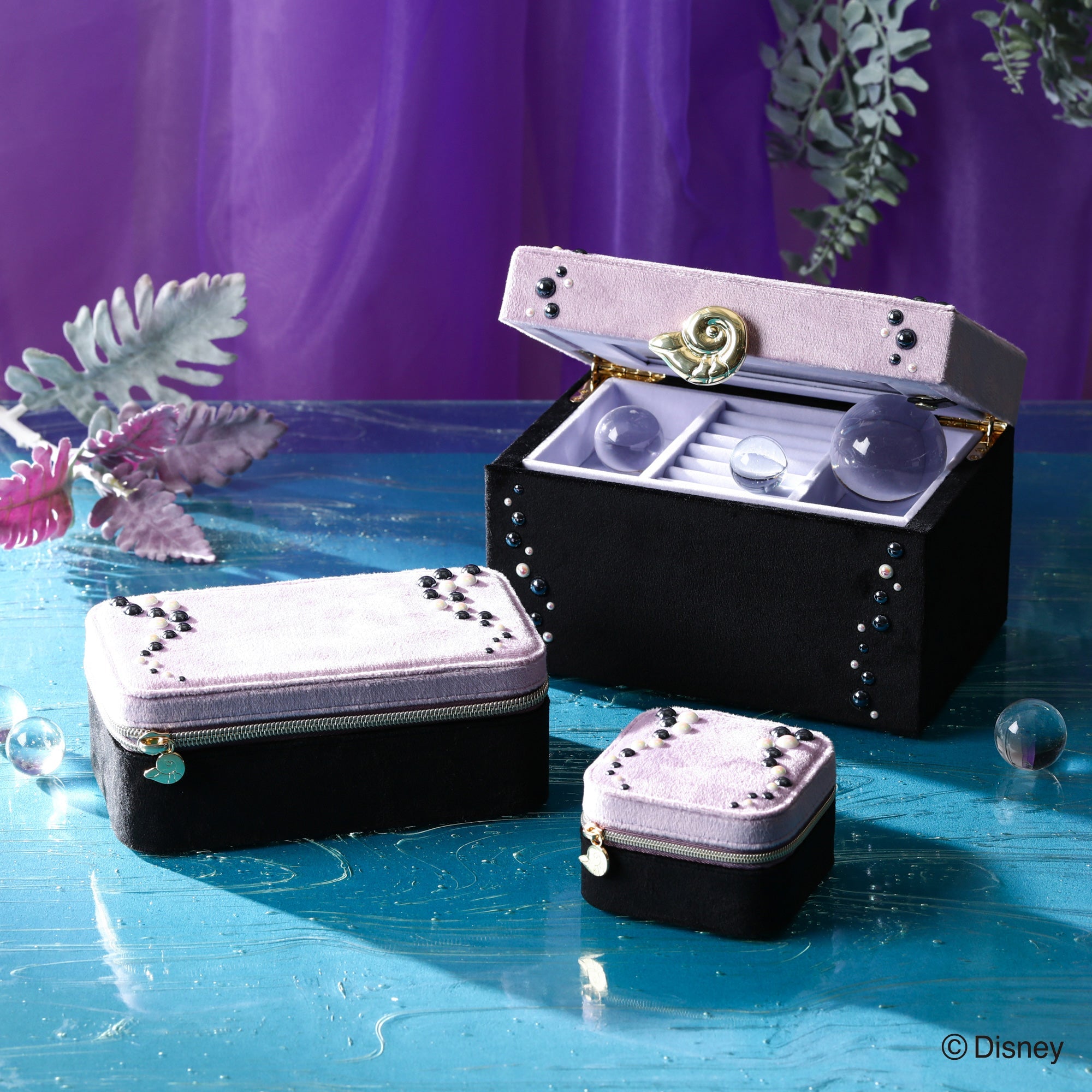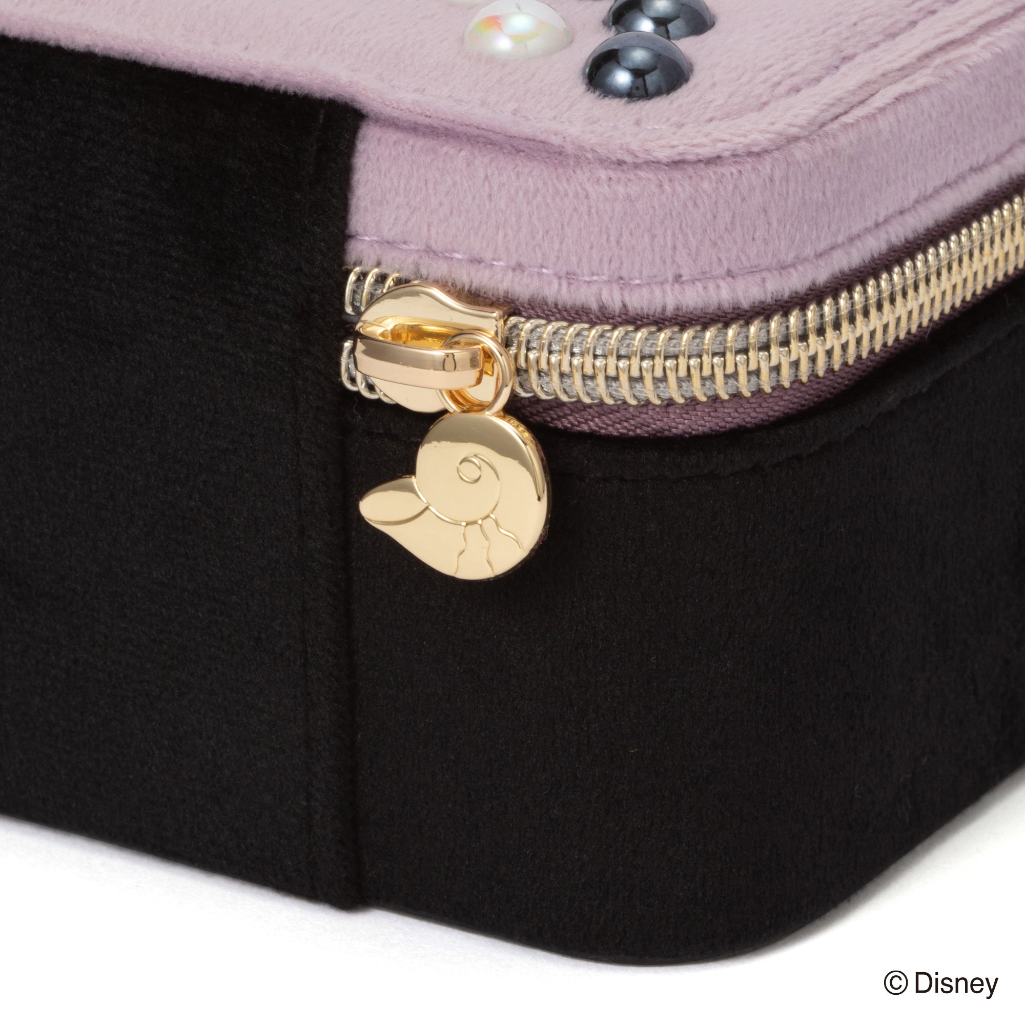 ディズニー映画『リトル・マーメイド』に登場する海の魔女、「アースラ」をイメージしたトラベルジュエリーボックスです。持ち運びに便利なサイズです。チャームとバックルのモチーフはアースラが身に着けているペンダントです。本体はアースラのタコ足の吸盤、海の中の泡をイメージしたパールをあしらいました。大人っぽいカラーの組み合わせで幅広い年齢の方にお楽しみいただけます。持ち運ぶジュエリーに合わせて選べる、S・Mの2サイズ展開です。