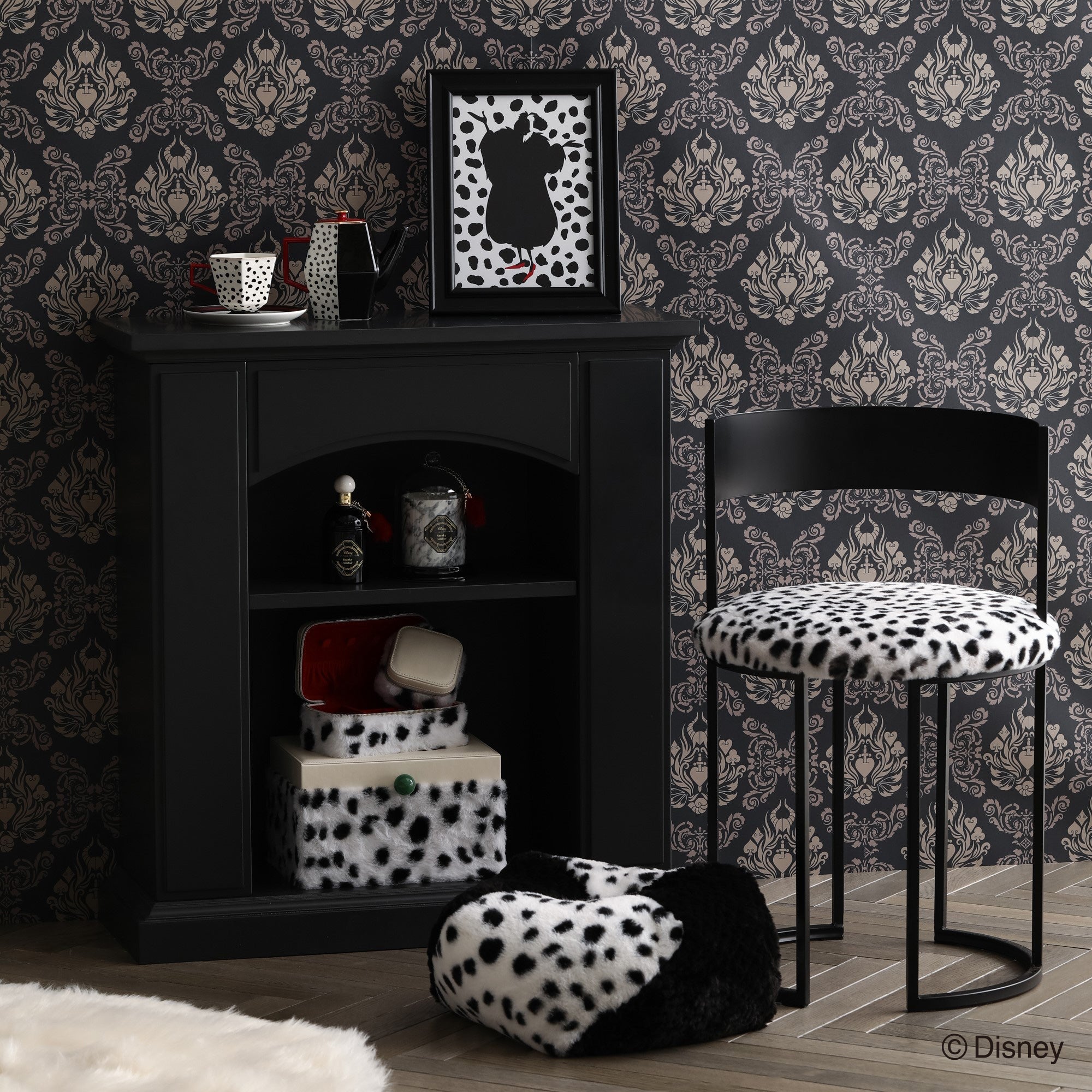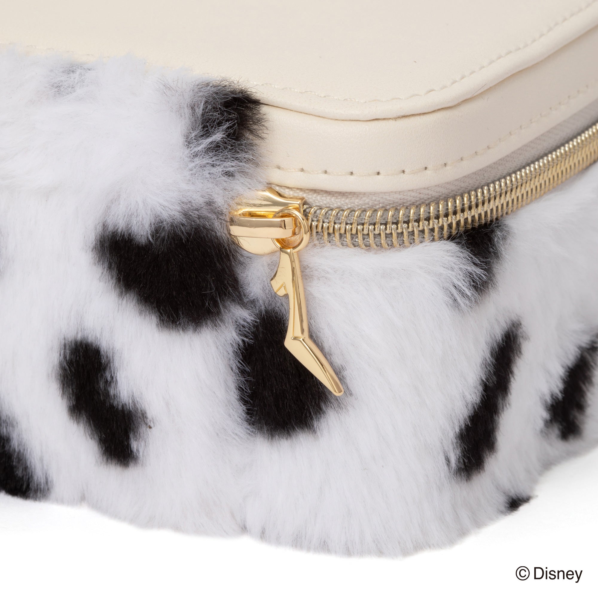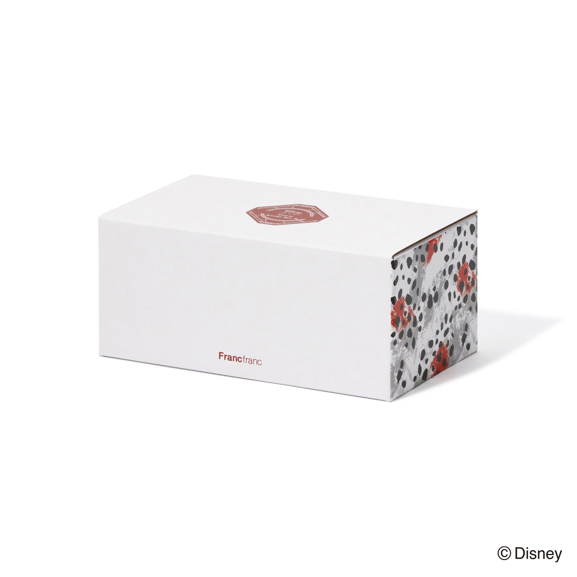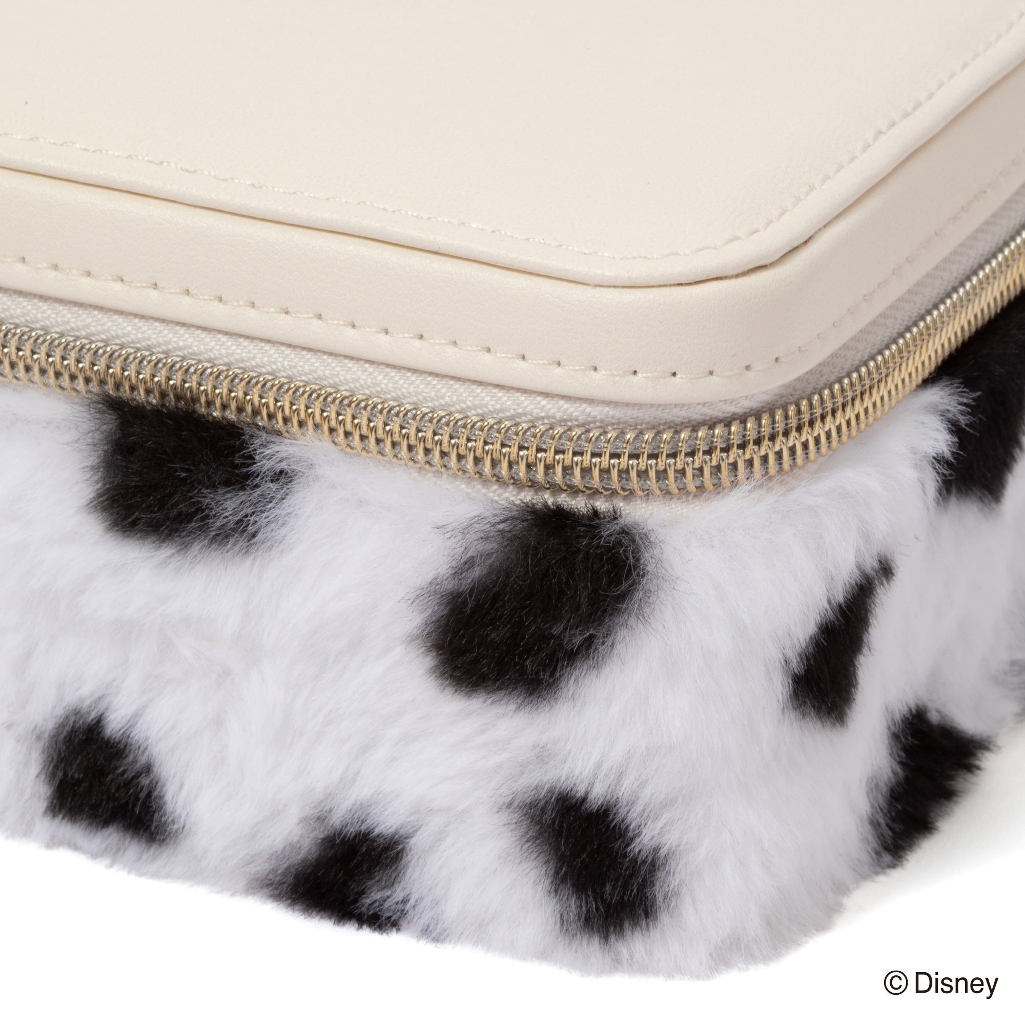 ディズニー映画『101匹わんちゃん』に登場する「クルエラ・ド・ビル」をイメージしたトラベルジュエリーボックスです。持ち運びに便利なサイズです。チャームとバックルのモチーフはクルエラが身に着けているグリーンのリングです。本体はダルメシアンを起想起させる生地に。眺めているだけでも癒される可愛らしいデザインです。内生地にはクルエラのコートの内側と同じ赤色で仕上げました。持ち運ぶジュエリーに合わせて選べる、S・Mの2サイズ展開です。