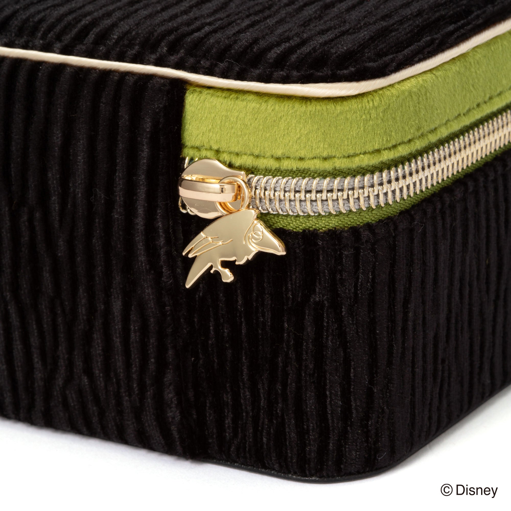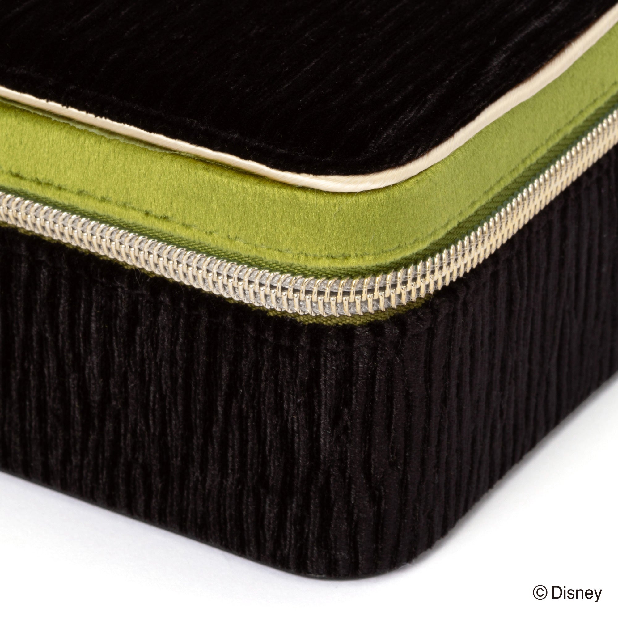 ディズニー映画『眠れる森の美女』に登場する魔女、「マレフィセント」をイメージしたトラベルジュエリーボックスです。持ち運びに便利なサイズです。チャームとバックルのモチーフはマレフィセントが身に着けている黒のリングです。本体はマレフィセントの角を凹凸のある生地で表現しました。大人っぽいカラーの組み合わせで幅広い年齢の方にお楽しみいただけます。持ち運ぶジュエリーに合わせて選べる、S・Mの2サイズ展開です。
