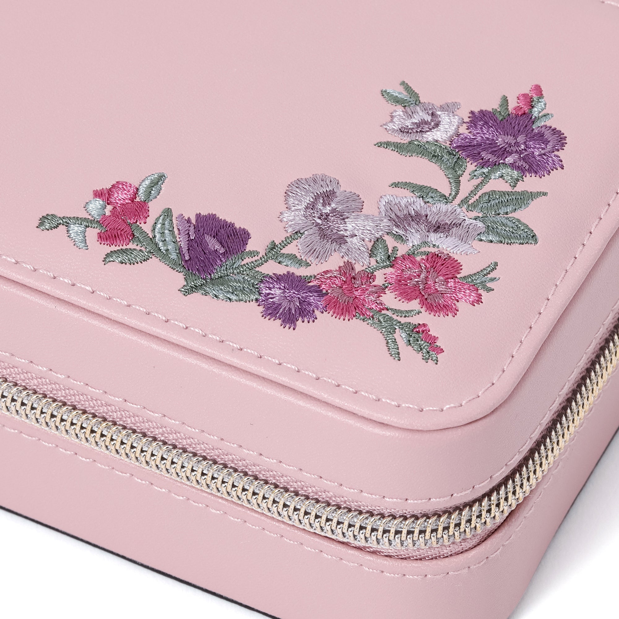 エンブロイダリーフラワー トラベル ジュエリーボックス 2 M ピンク