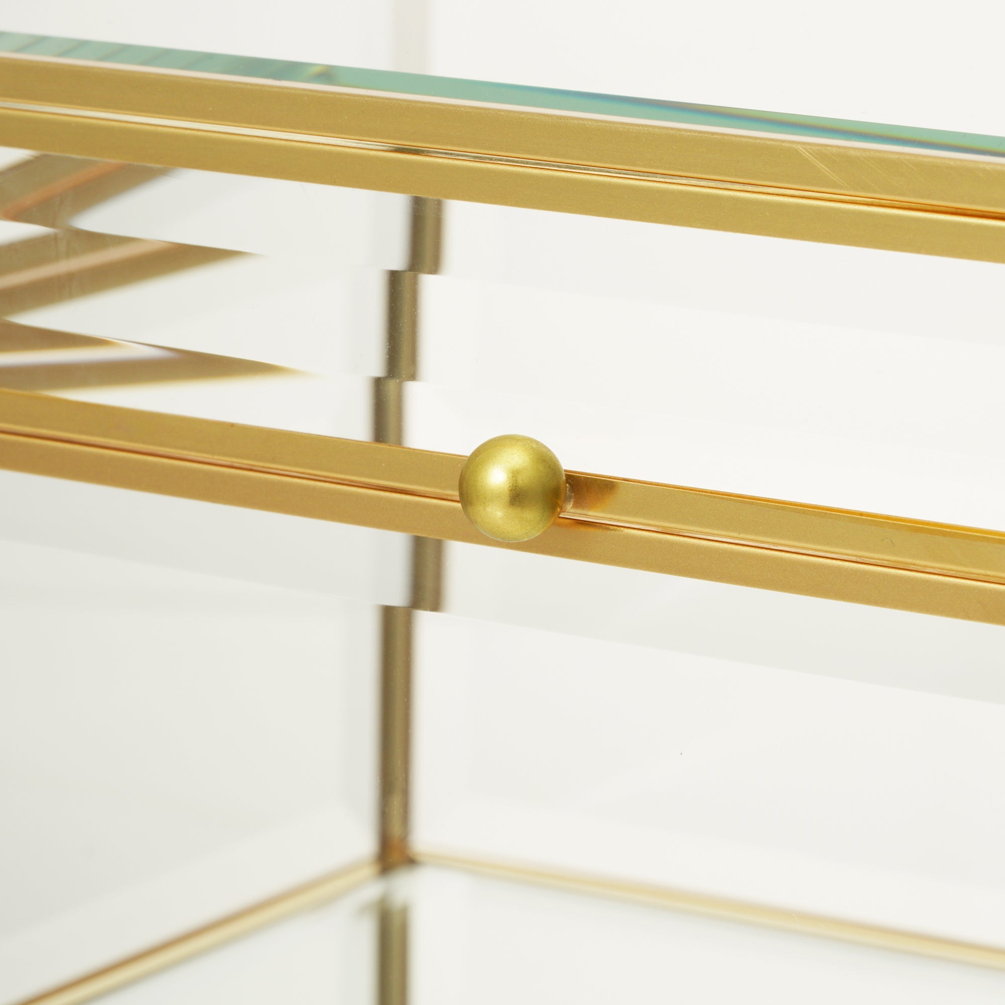 ゴールドのメタルフレームが高級感あふれる、上品なデザインの小物入れです。シンプルでありつつ、ガラスとミラーの輝きが素敵なアイテムです。ジュエリーケースとしてはもちろん、ポプリや香水をいれて飾るのもおすすめです。