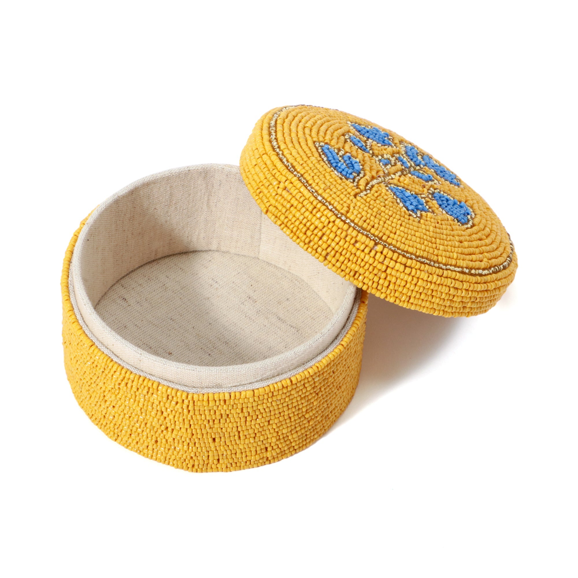 ハンドメイドの風合いがかわいらしい、ビーズの小物入れです。カラフルでお部屋のアクセントにぴったりな商品です。