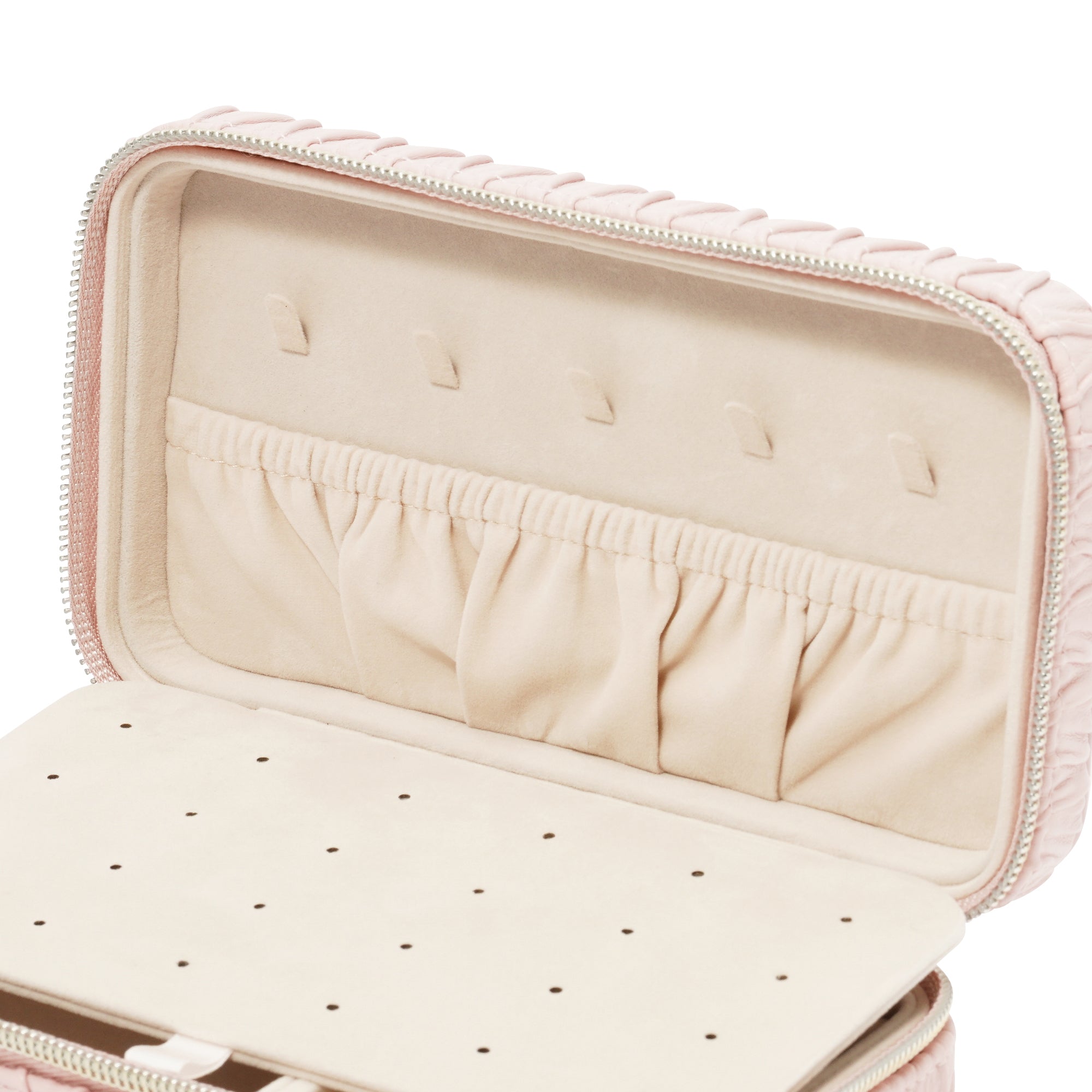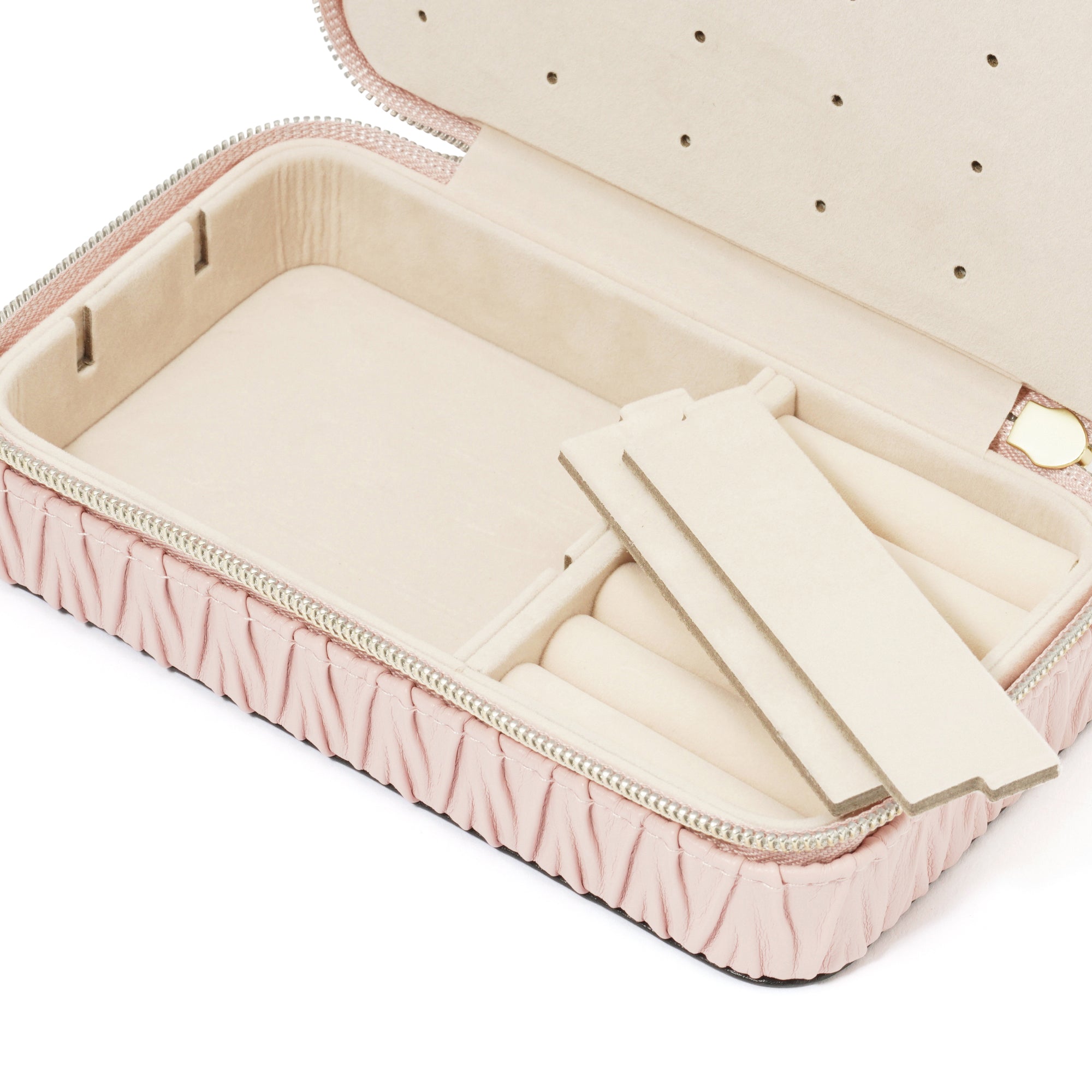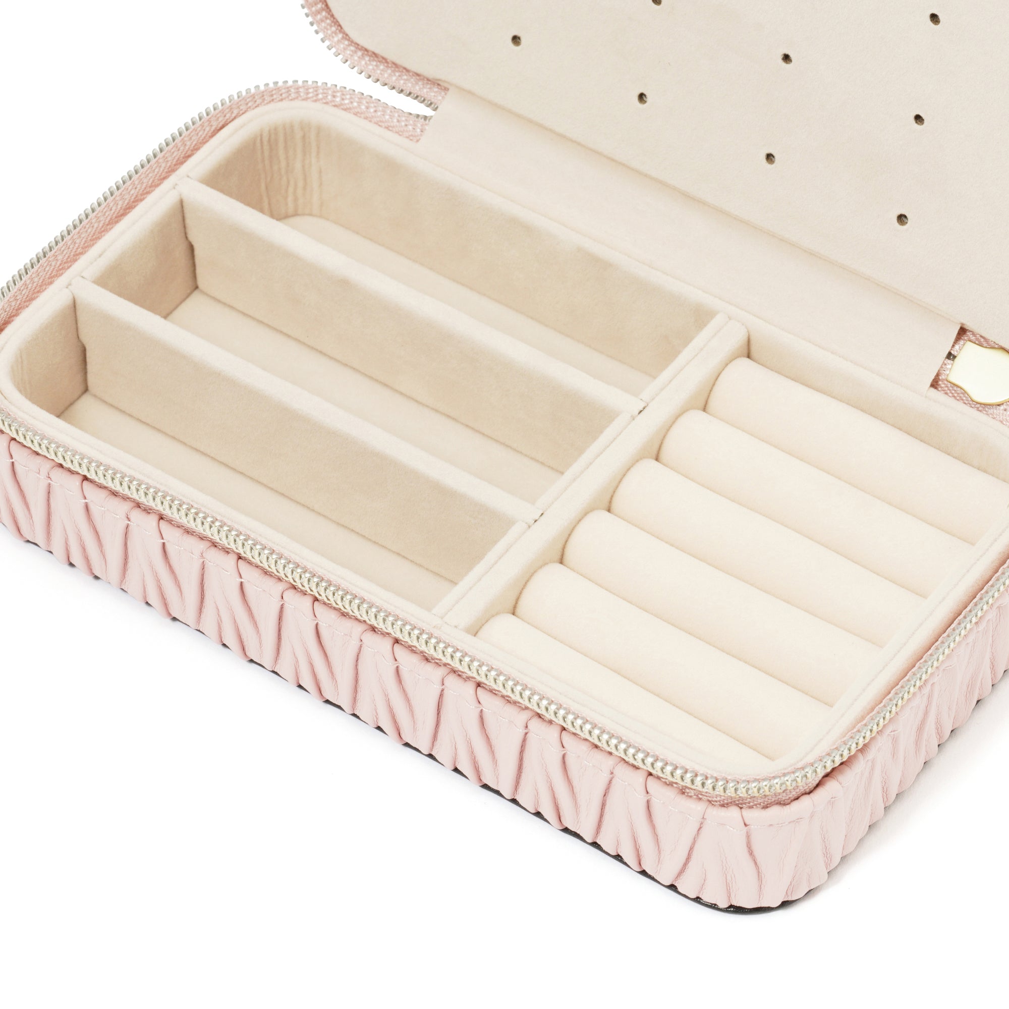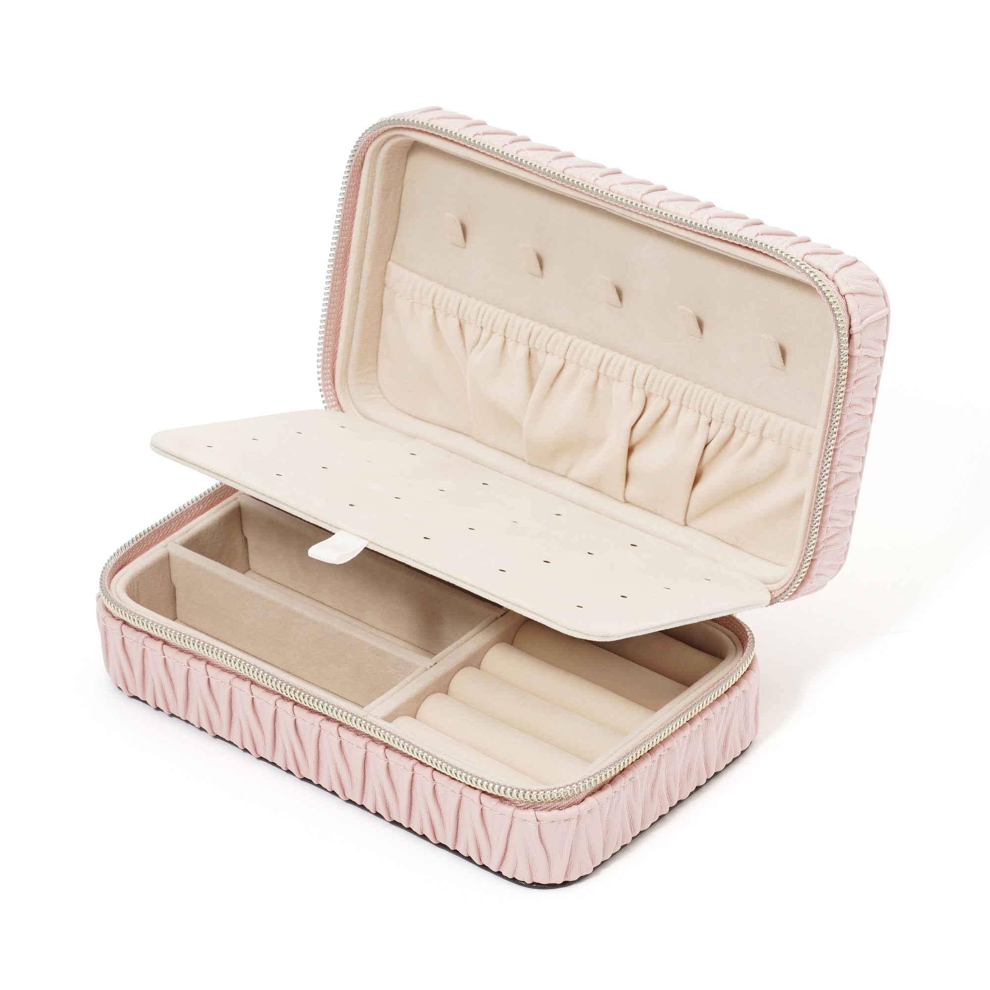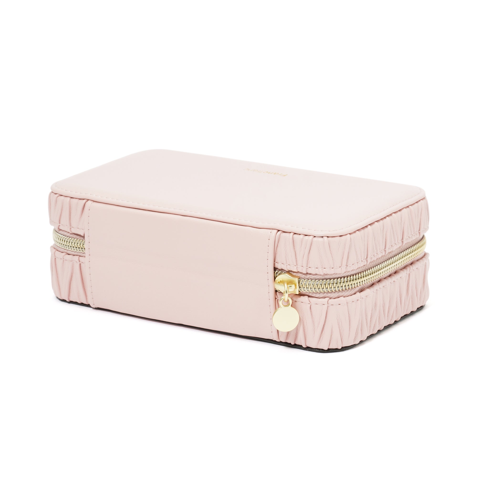 持ち運びできるジュエリーボックスです。 コンパクトな見た目ですが収納力は十分。旅行先に携帯するのはもちろん、仕事終わりの気分転換にアクセサリーをチェンジするときにも重宝します。