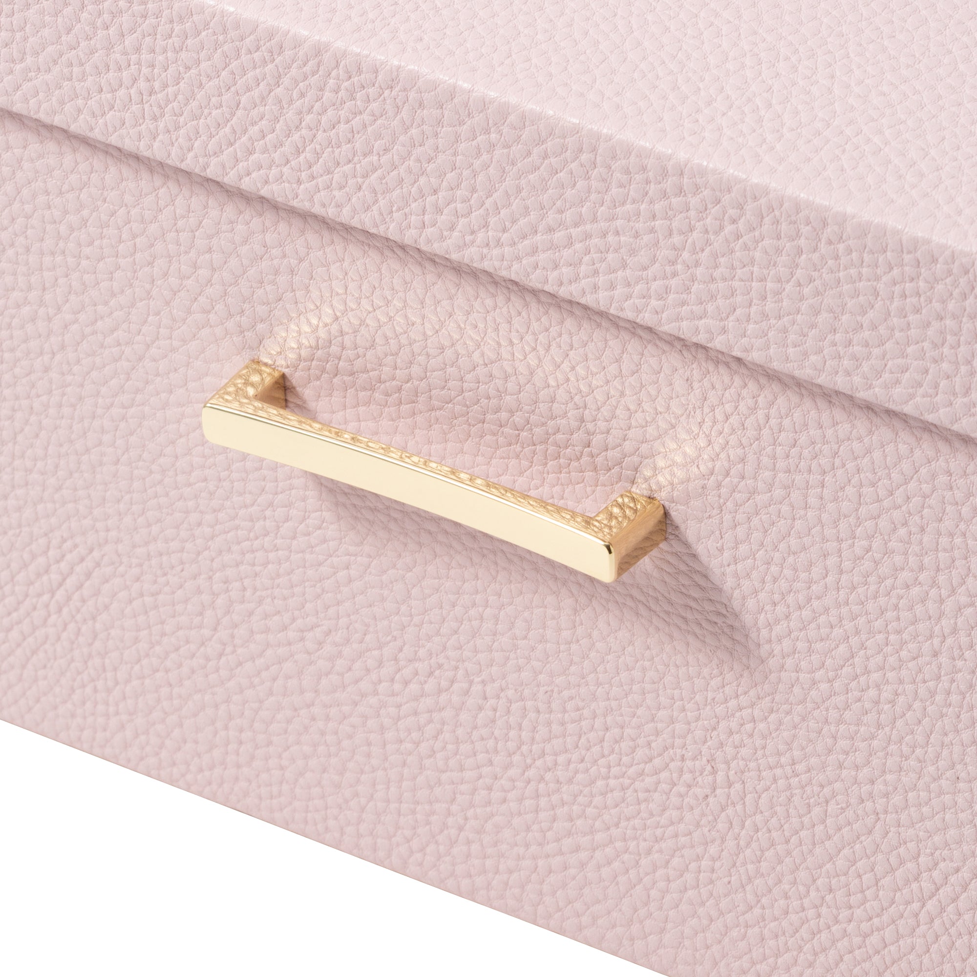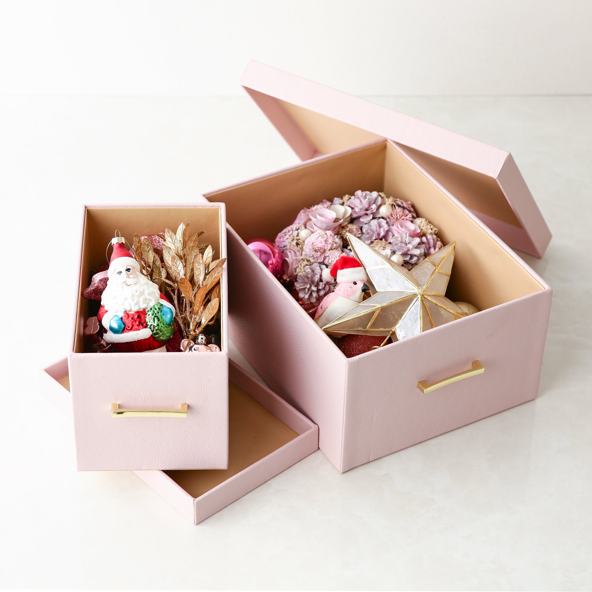 シンプルで柔らかいカラーが特徴のストレージボックスです。蓋付きのためすっきりと収納でき、細々とした物の収納に最適です。しっかりした作りで高級感があり、長く安心してお使い頂けます。他サイズや色違いとシリーズで揃えて頂くのもおすすめです。