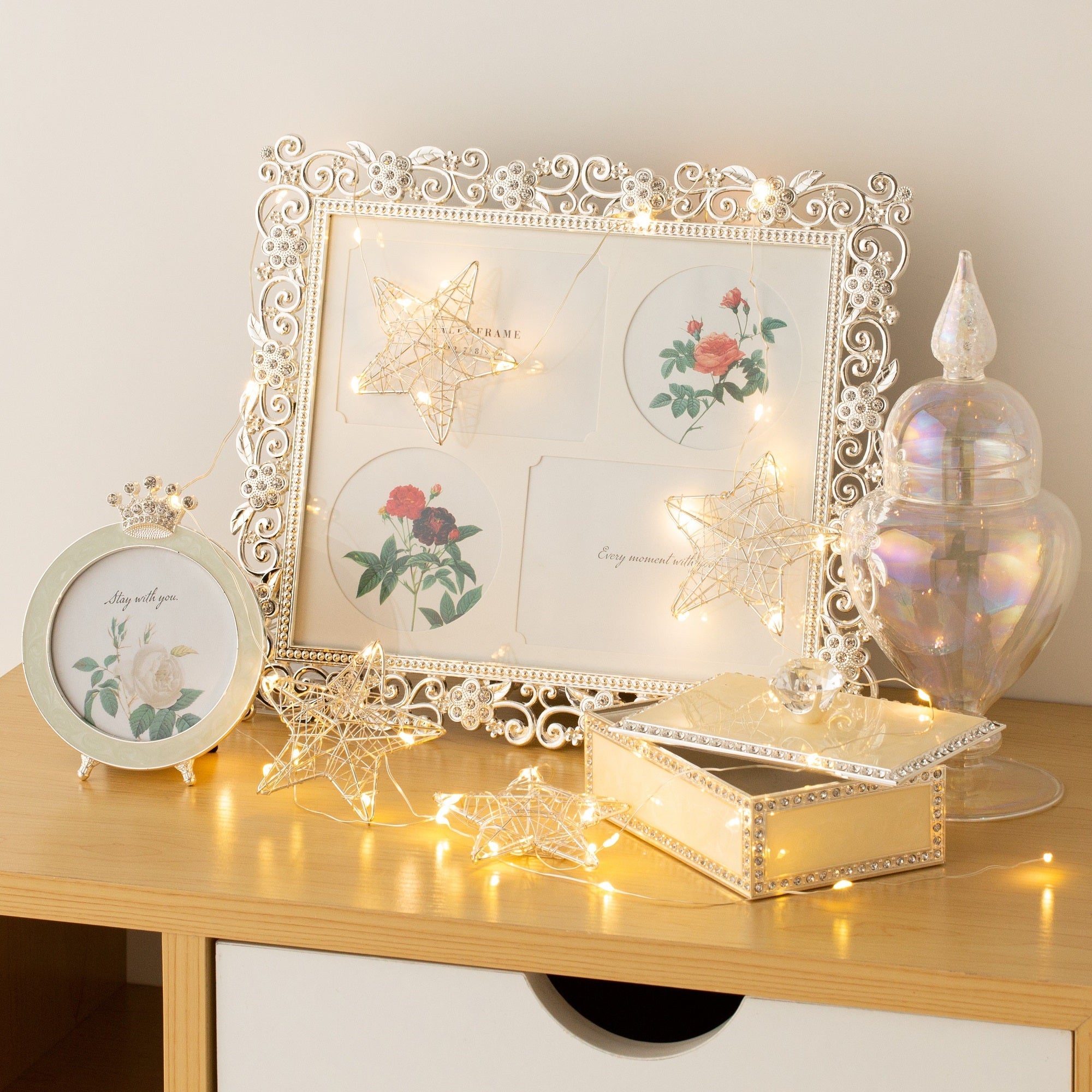 お部屋がキラキラにグレードアップするLEDガーランドです。 誕生日、結婚式やクリスマスパーティなどの装飾としてもおすすめです。 乾電池仕様なので場所を選ばすどこでも使用できます。