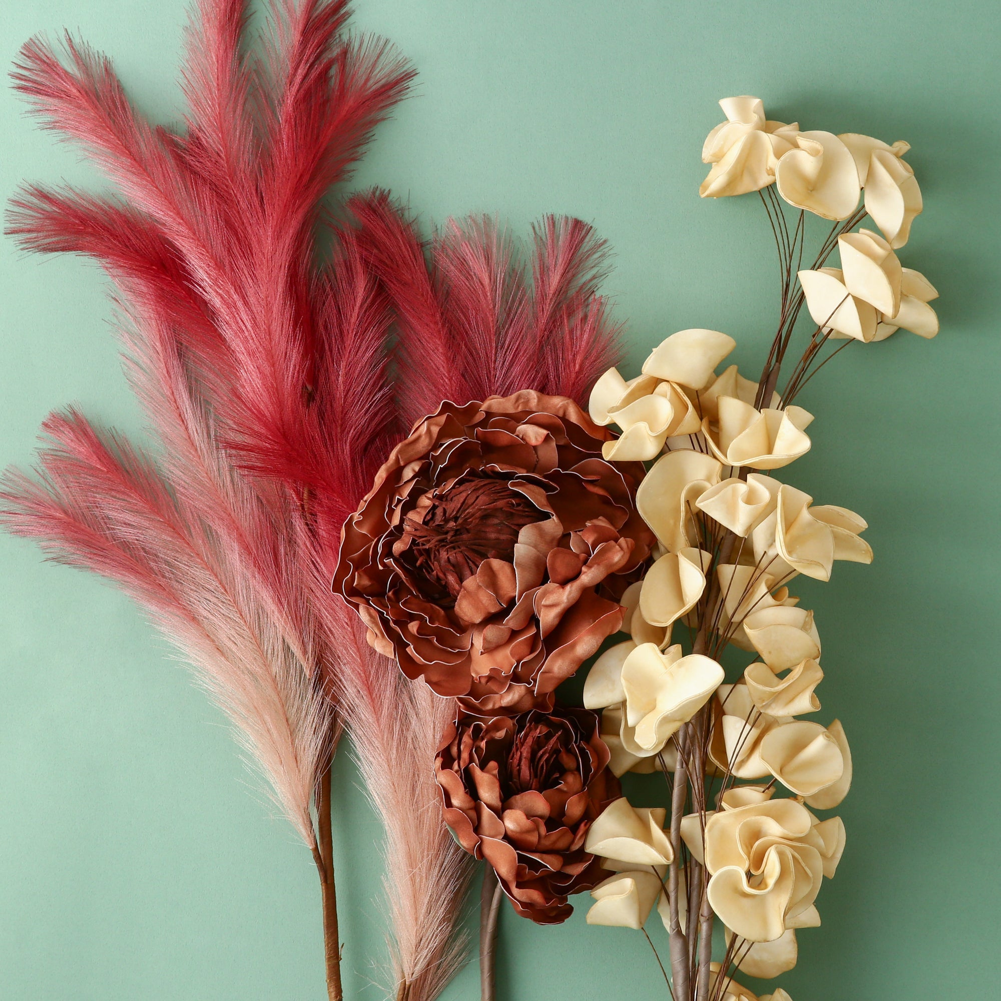 グラデーションがキレイで単色よりお部屋に馴染みやすいデザインのアートプランツです。 秋らしい色味で単体でもお部屋のアクセントにぴったり。 ▼あわせて使える花瓶はこちら 花瓶・フラワーベース一覧