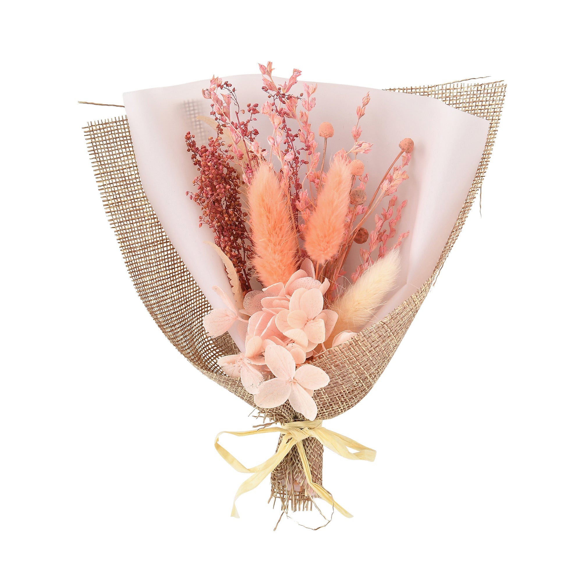 ドライフラワーのブーケです。 ナチュラルなテイストのお部屋によく合うデザインです。
