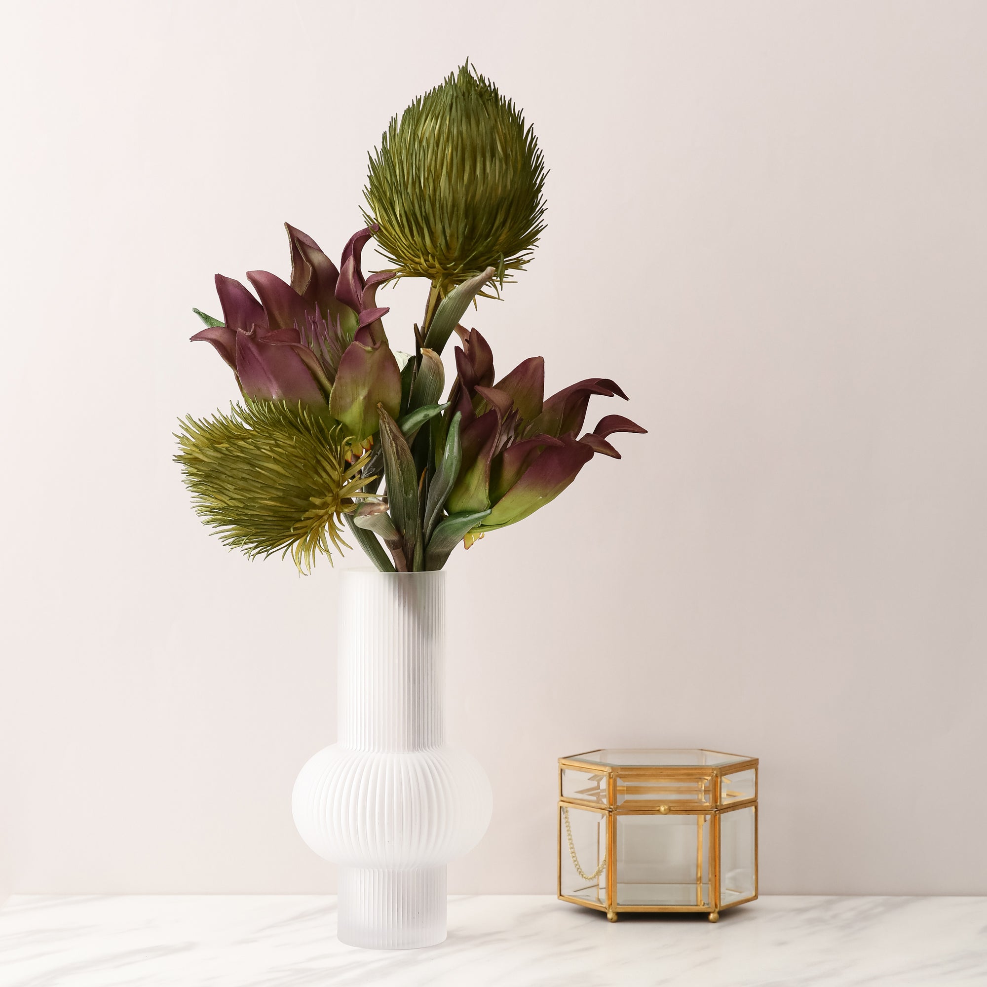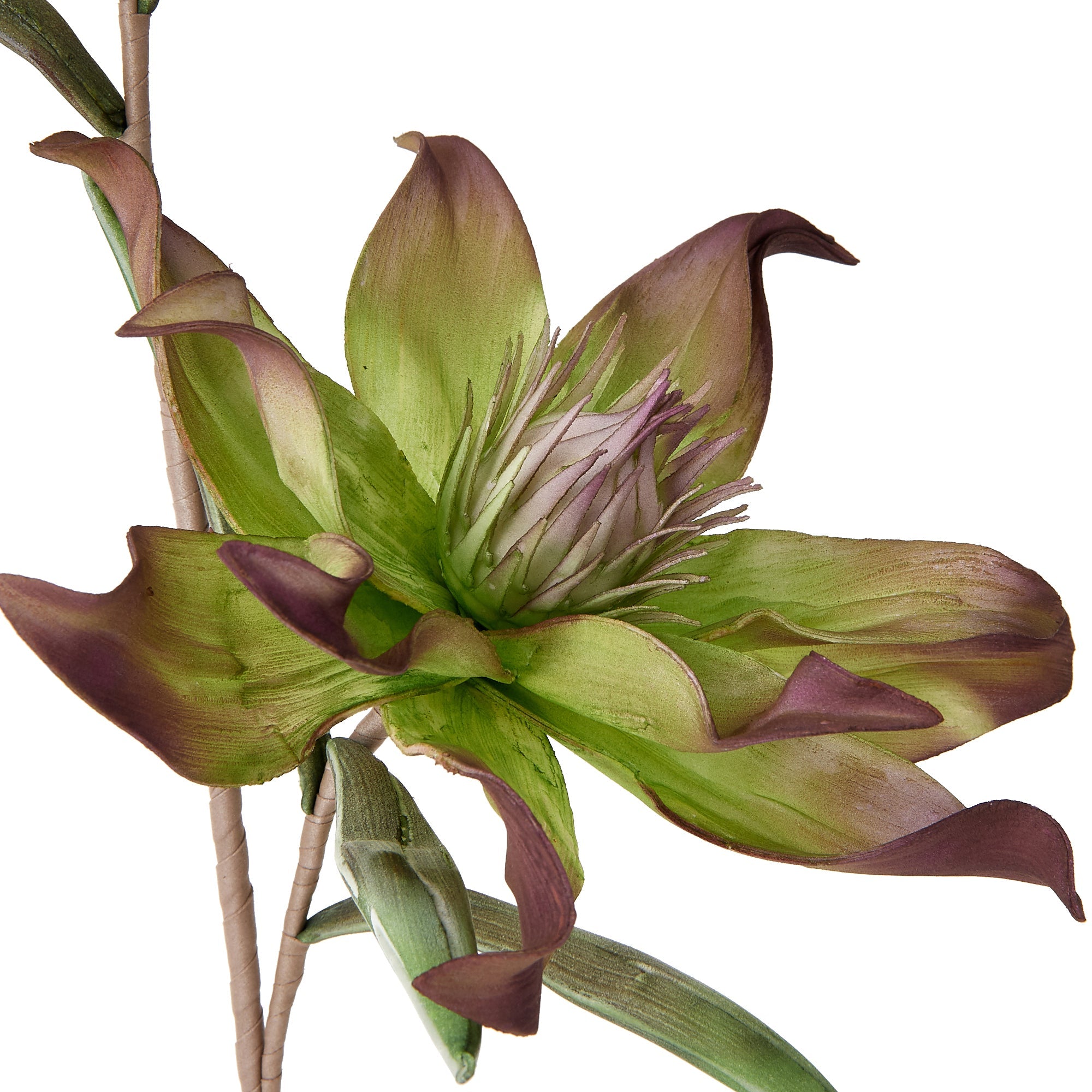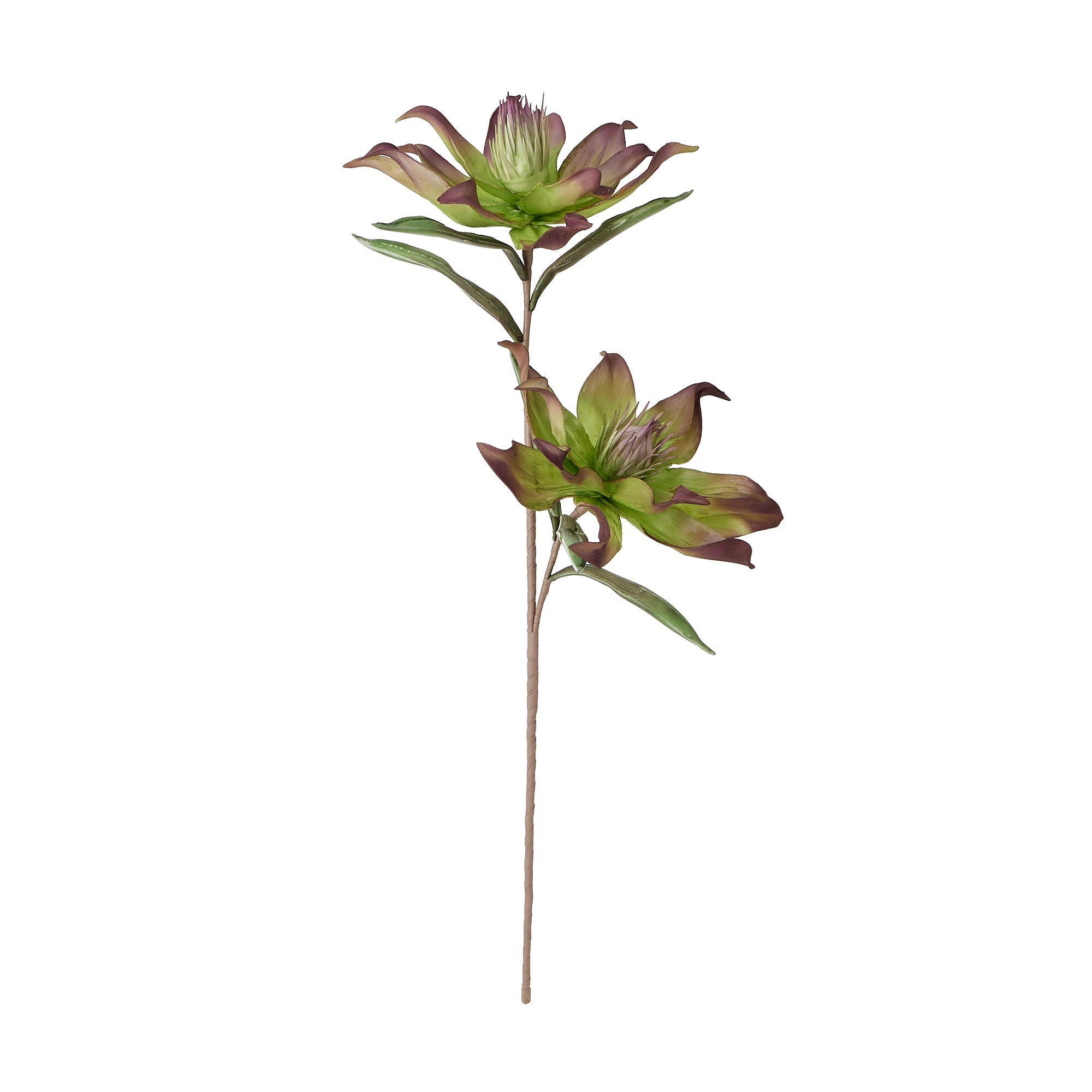 自然な色味とグラデーションが美しいドラセナのアートプランツです。 合わせやすい色なので、1本持っているとコーディネートの幅が広がります。お手入れがいらないアートプランツなら気軽に取り入れられて、お部屋の雰囲気も一変します。違う種類のアートプランツも同系色のものと合わせると、コーディネートがまとまりやすくなり、おすすめです。 細部にわたり精巧に作られたアートプランツは、ハイセンスなオブジェのような存在感です。ドラセナは、大輪の花びらの先端に着色されたワインカラーがポイント。グリーンとワインカラーのグラデーションが、シックな大人の雰囲気を感じさせるアイテムです。 アートプランツは生のお花のように水に挿したり、水を替えたりする必要もないので、どこにでも好きなスペースに飾ることができます。 アートプランツをお部屋に飾ると、華やかさグレードアップの豪華なインテリアに。ほかのアートプランツとブーケにしたり、短くカットしてディスプレイのオブジェにしたりと、お好みのアレンジが楽しめます。 また、グリーンとワインカラーの花は、クリスマスや冬のディスプレイにもおすすめ。クリスマスモチーフや、キャンドルなどと一緒に飾ると、ホリデー気分も盛り上がります。クリスマスツリーやリースにプラスすると、ボリュームのある素敵なアレンジに。ゴージャスな見た目は、パーティーやイベントなどの装飾にもぴったりです。 ドラセナのアートプランツは、グリーンの色のほかにブルーや、レッドも用意しています。好みの色でインテリアの装飾やディスプレイにお楽しみください。 ▼あわせて使える花瓶はこちら 花瓶・フラワーベース一覧