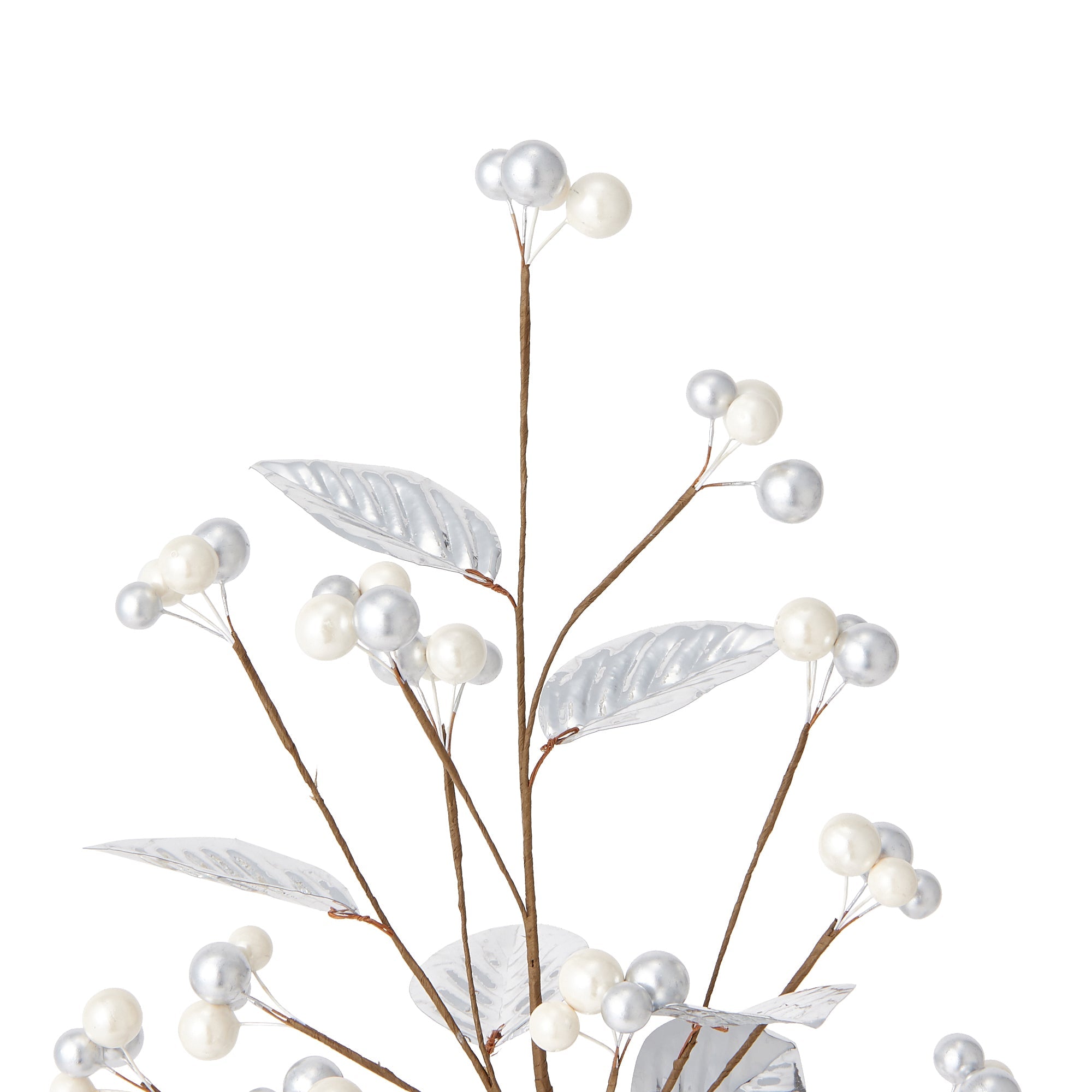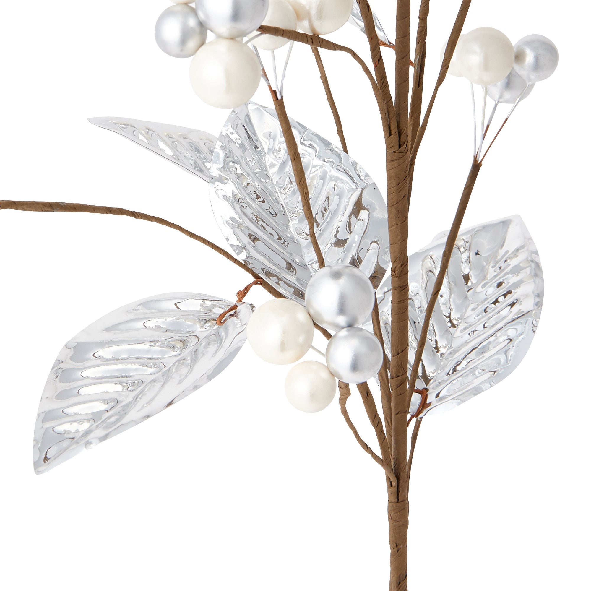大人っぽいシルバーカラーが、秋冬の落ち着いたインテリアに映えるデザインのアートプランツです。 コーディネートに1本加えるだけで、特別な空間を演出してくれます。リアルな植物にはないキラキラ感が、インテリアに非日常的なアクセントを与えてくれます。細部にわたり精巧に作られたアートプランツは、ハイセンスなオブジェのような存在感です。 シャイニーリーフのアートプランツは、光沢が美しいシルバーの葉がポイント。葉脈がほどこされた葉に、色が微妙に異なるパールをつけて、上品な大人の雰囲気に仕上げています。アートプランツは生のお花のように水に挿したり、水を替えたりする必要もないので、どこにでも好きなスペースに飾ることができます。 アートプランツをお部屋に飾ると、華やかさグレードアップの豪華なインテリアに。ほかのアートプランツとブーケにしたり、短くカットしてディスプレイのオブジェにしたりと、お好みのアレンジが楽しめます。 また、シルバーカラーが美しい葉は、クリスマスや冬のディスプレイにぴったり。クリスマスモチーフや、キャンドルなどと一緒に飾ると、ホリデー気分も盛り上がります。クリスマスツリーやリースにプラスすると、素敵なアレンジに。ゴージャスな見た目は、パーティーやイベントなどの装飾にもおすすめです。 シャイニーリーフのアートプランツは、シルバーのほかにオーロラ色や、ゴールドも用意しています。好みの色でインテリアの装飾やディスプレイにお楽しみください。 ▼あわせて使える花瓶はこちら 花瓶・フラワーベース一覧