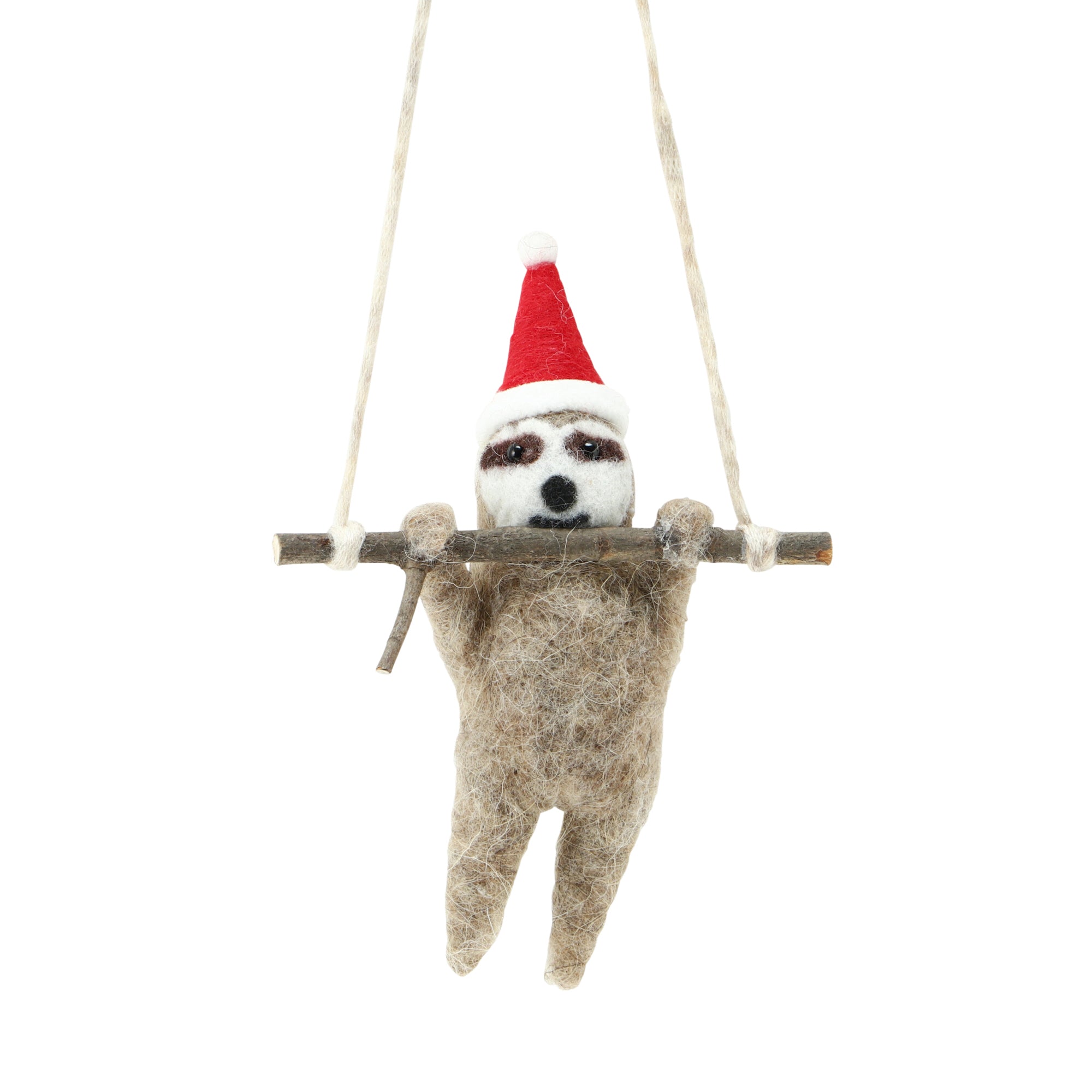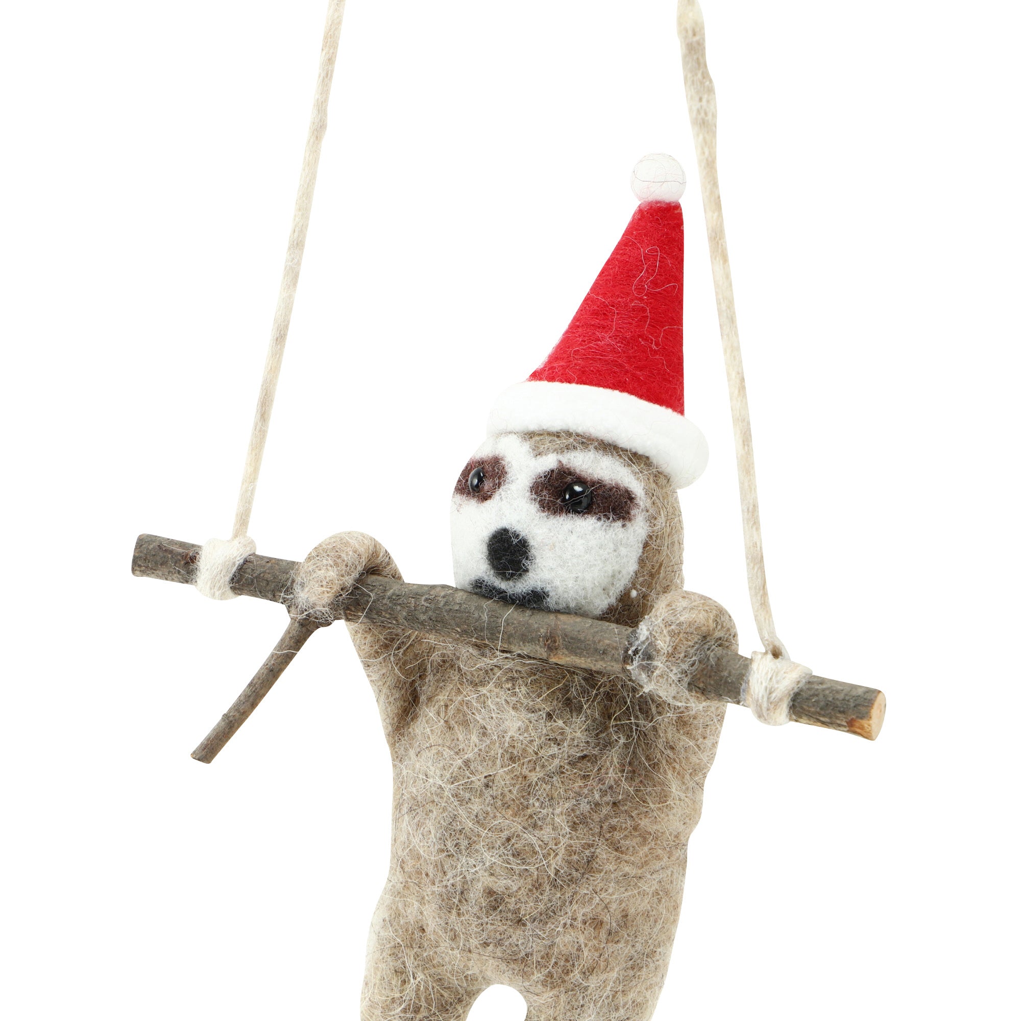 ほっこりする表情のなまけものがかわいらしいフェルトのオーナメントです。 ツリーを愛らしく彩ります。