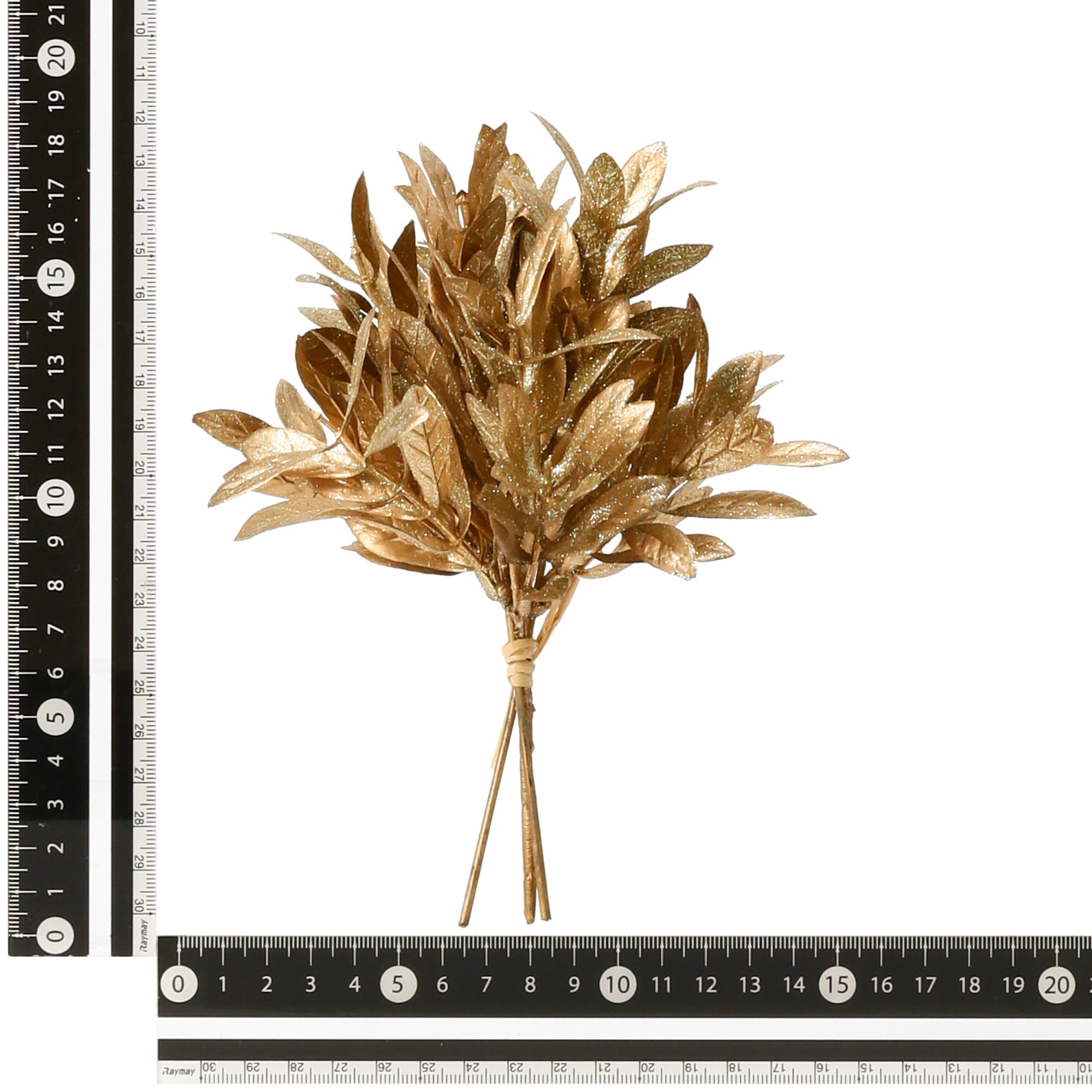 ゴールドにコーティングされたアートプランツです。お手持ちのお花とコーディネートすると、一気にホリデームードを演出できます。小ぶりなティーリーフブーケは、食卓等に添えてもパーティー気分を盛り上げられます。