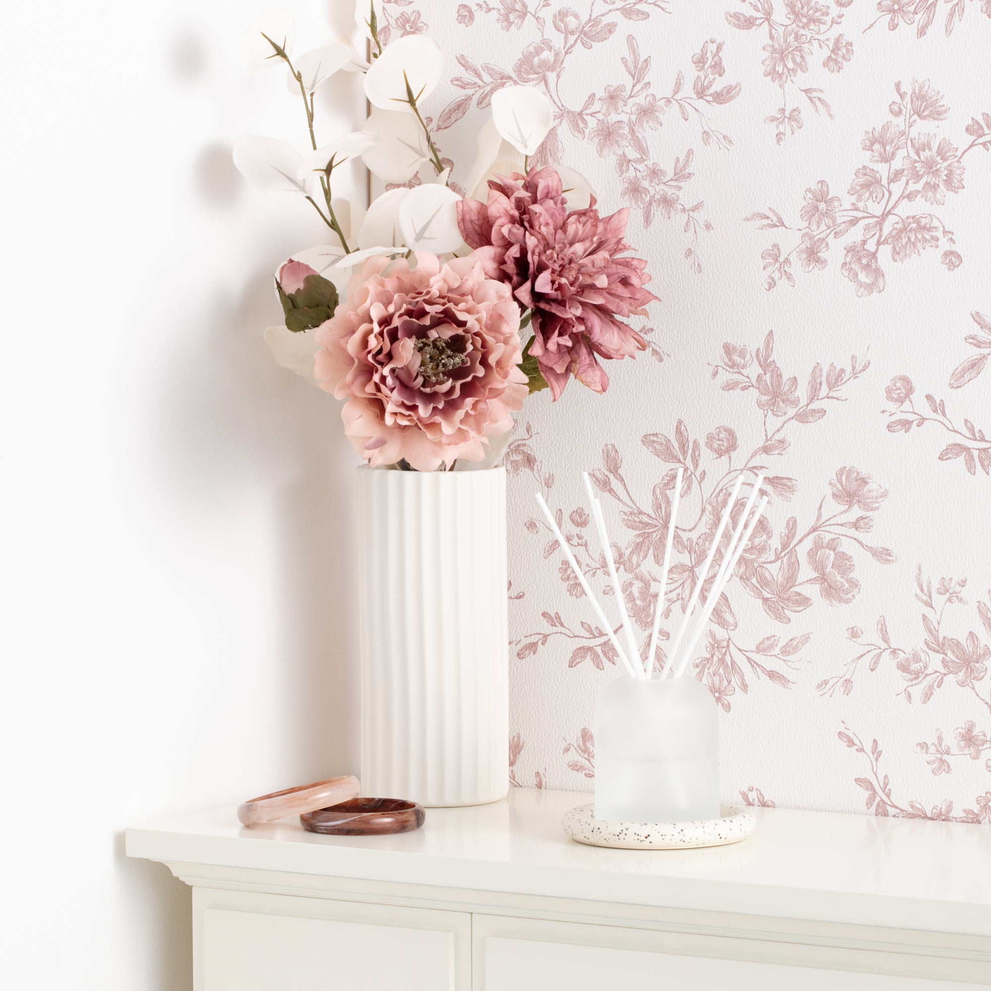 幅45cm×長さ250cmの簡単にはがせる壁紙です。 エレガントなお部屋にもナチュラル系のインテリアにも合う、こだわりの繊細なフラワー柄です。 お好きな長さに切って貼るだけのシールタイプ。賃貸住宅で壁にのりを使うのが難しい方やDIY初心者の方も、簡単に失敗なくお部屋を飾れます。 お部屋を簡単メイクアップ シールのように貼ってはがせるリムーバブルタイプだから、のりを付ける手間やはがすための面倒な作業も不要です。簡単に貼ってはがせる秘密は表面のエンボス(凸凹)加工と裏面の粘着力の絶妙なバランス。2年以上かけて研究・開発された独自の技法です。 裏面には格子状のガイドがプリントされているのでまっすぐカットするのも簡単。 気分や季節に合わせて安心して模様替えが楽しめます。 使い方、自由自在 1ロールの長さは250cm。賃貸物件の天井高平均は240cmなので、1ロールで天井から床まで届くサイズ設計です。模様は高さ50㎝ごとにリピートされていますので、柄合わせしやすい部分でカットしてつなぎ合わせることも可能です。 壁だけではなく、家具や収納ボックス、フォトフレームなどの雑貨をアレンジするのもおすすめ。余った壁紙も無駄なくお使いいただけます。 丈夫で安心な素材 本体にはフリース(不織布)を使用。紙と違って丈夫で破れにくく、海外の壁紙では最もメジャーな素材です。ホルムアルデヒド等級の最上位規格F☆☆☆☆(フォースター)を取得している安心品質も嬉しいポイントです。