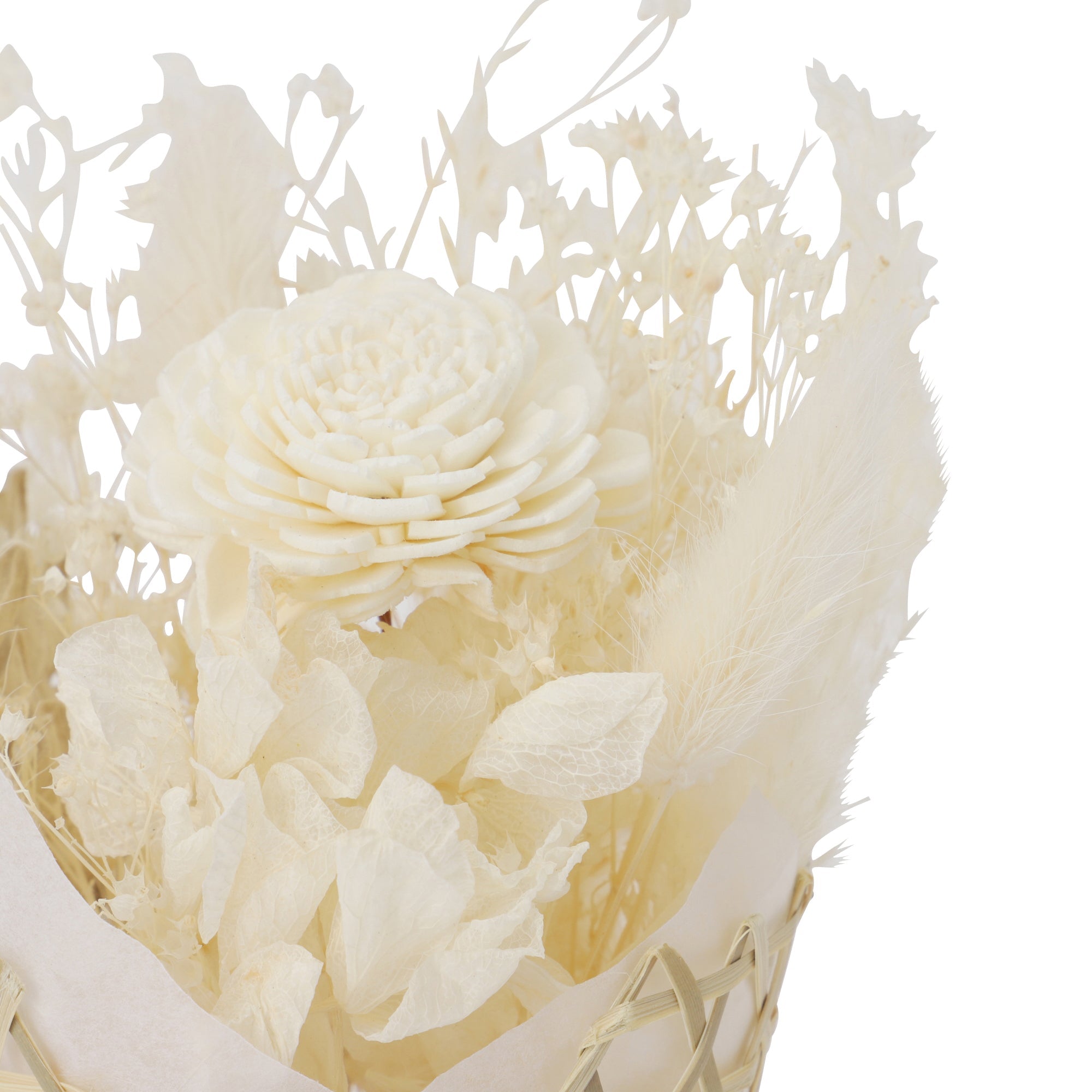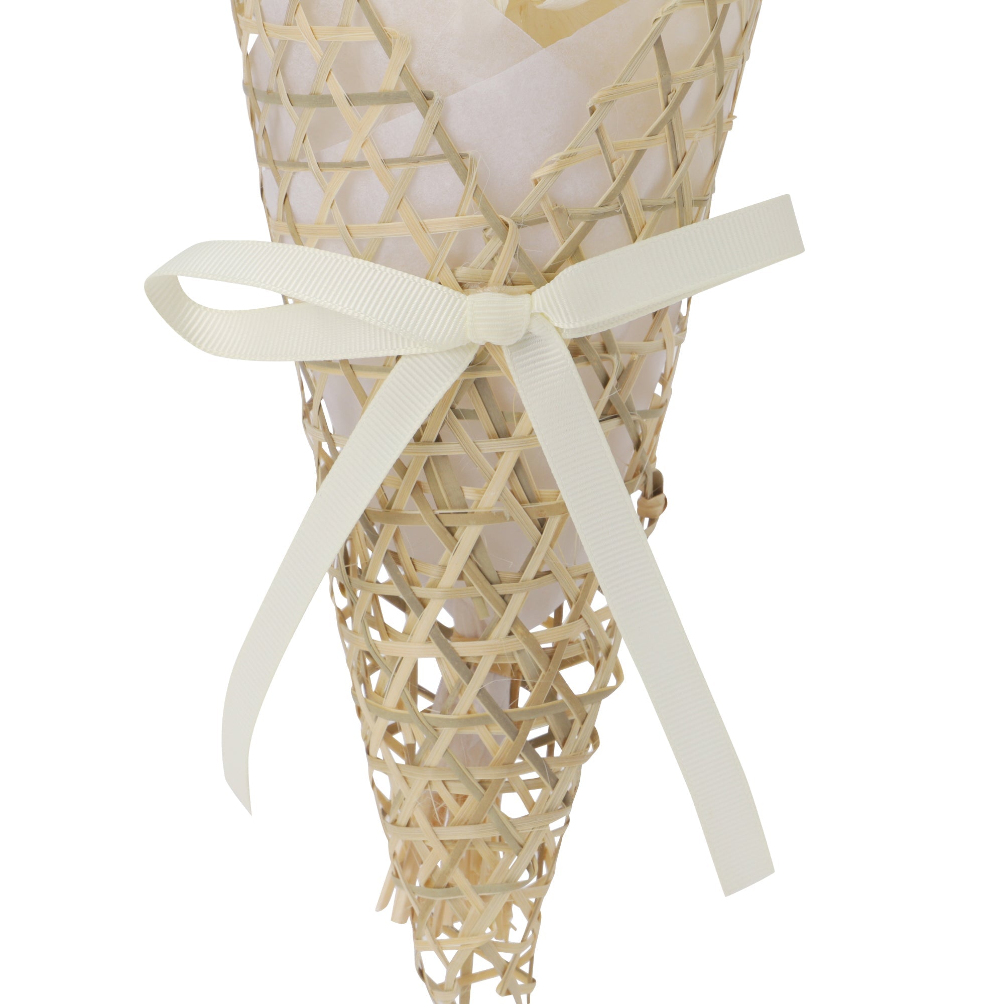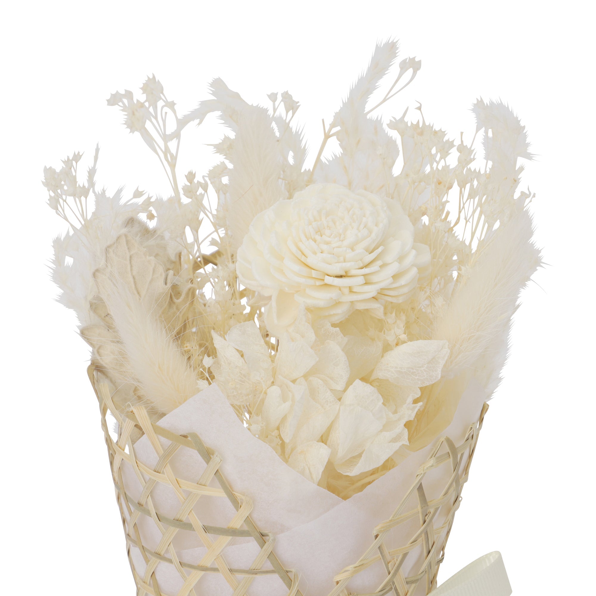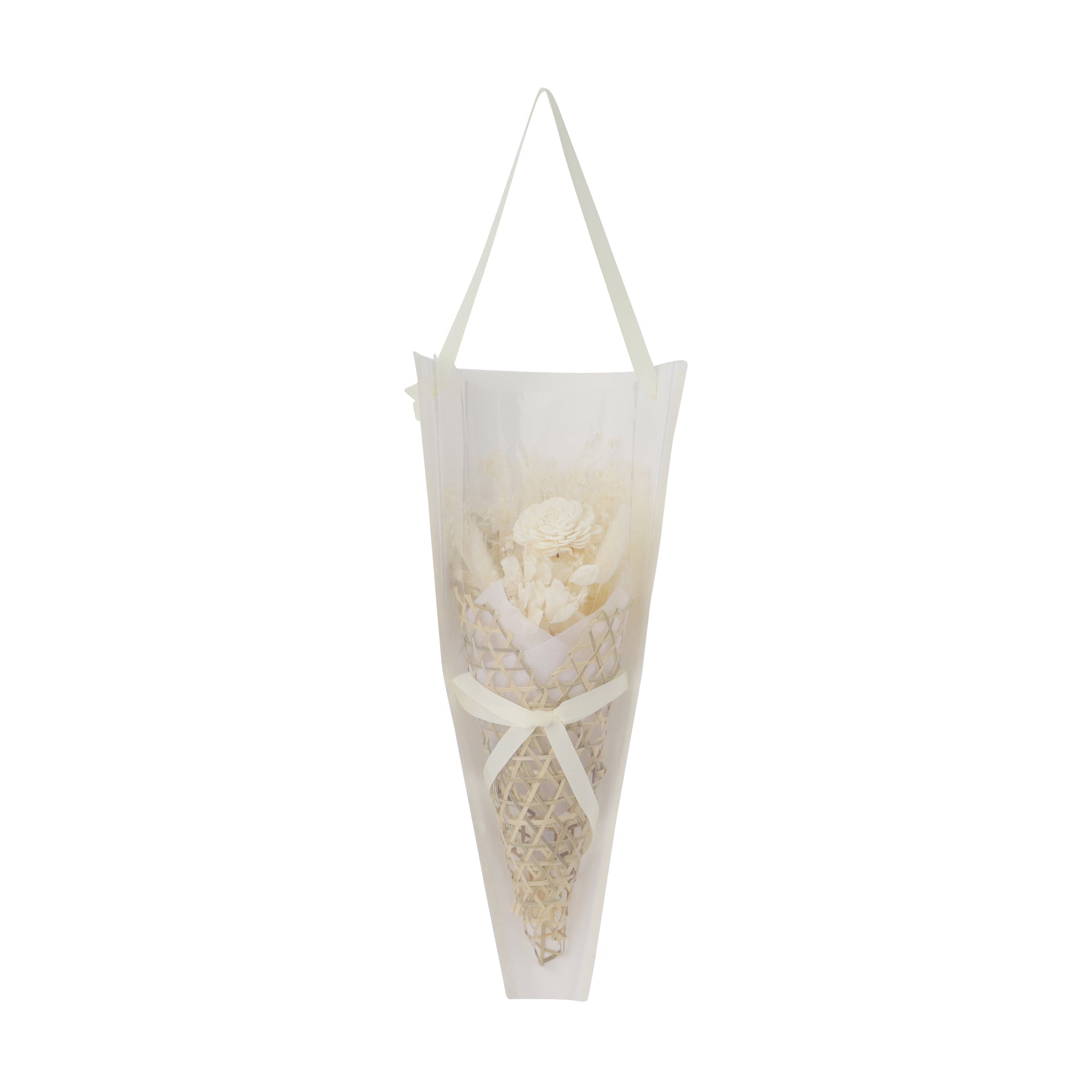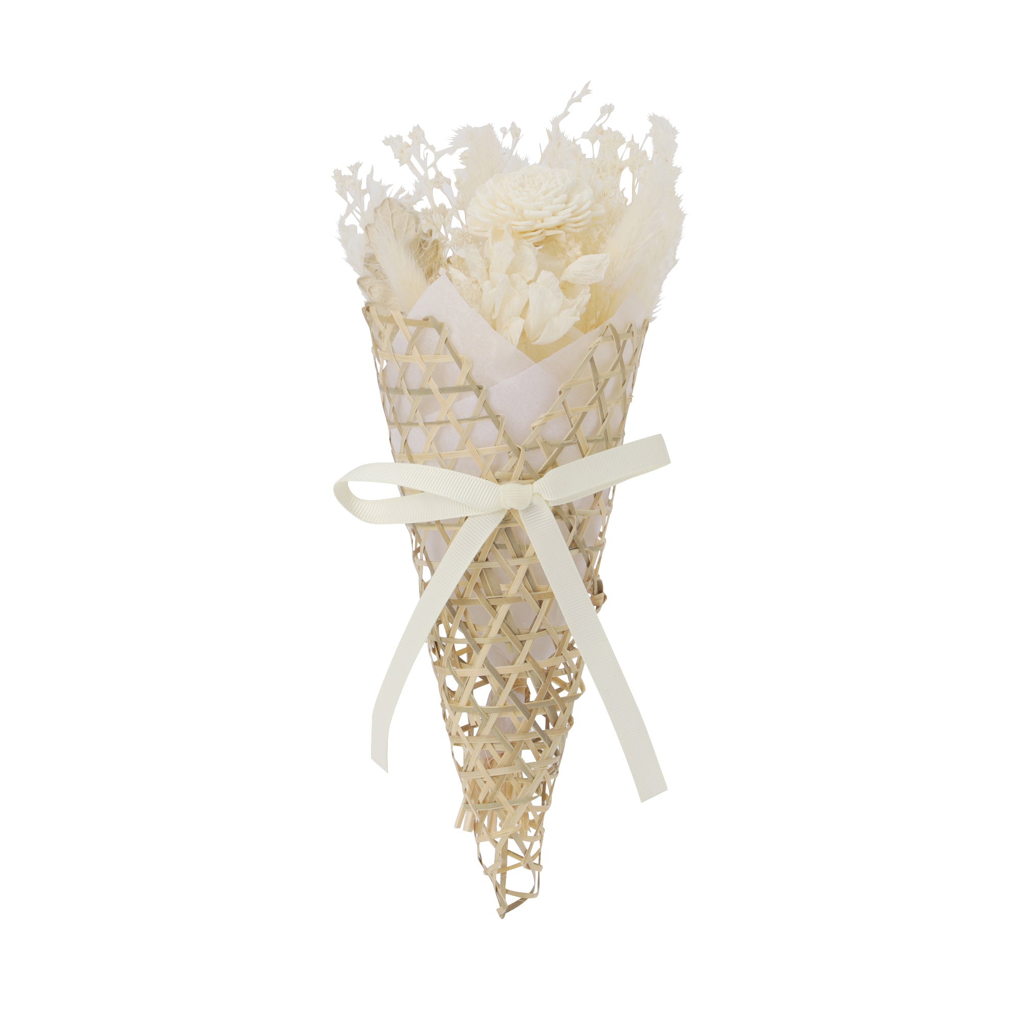 コーンに入ったタイプのドライフラワーのブーケです。 フラワーベースに生けるのはもちろん、そのままちょっとしたスペースに置いたり、パッケージのまま吊るしたり、様々な飾り方を楽しめます。 天然素材を使用しているので、ひとつひとつ表情が異なる世界で一つだけのアイテムです。