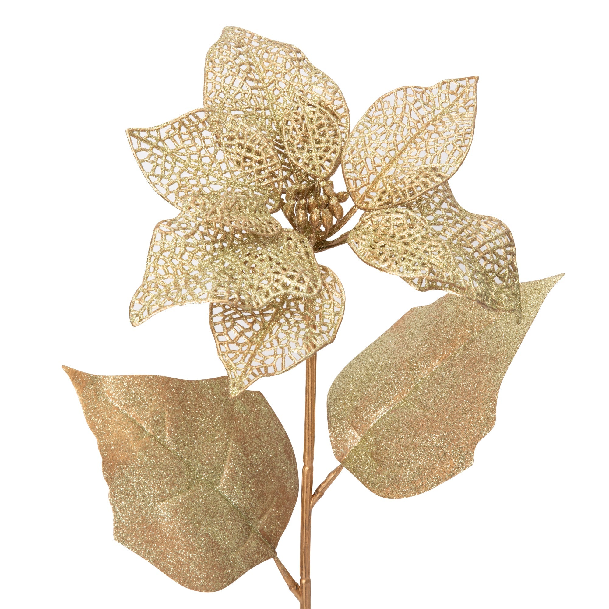 ゴールドにコーティングされたゴージャスなポインセチアのアートプランツです。 お手持ちのお花とコーディネートするだけで一気にホリデームードを演出できます。 一輪でも十分な存在感のあるアイテムです。 ▼あわせて使える花瓶はこちら 花瓶・フラワーベース一覧