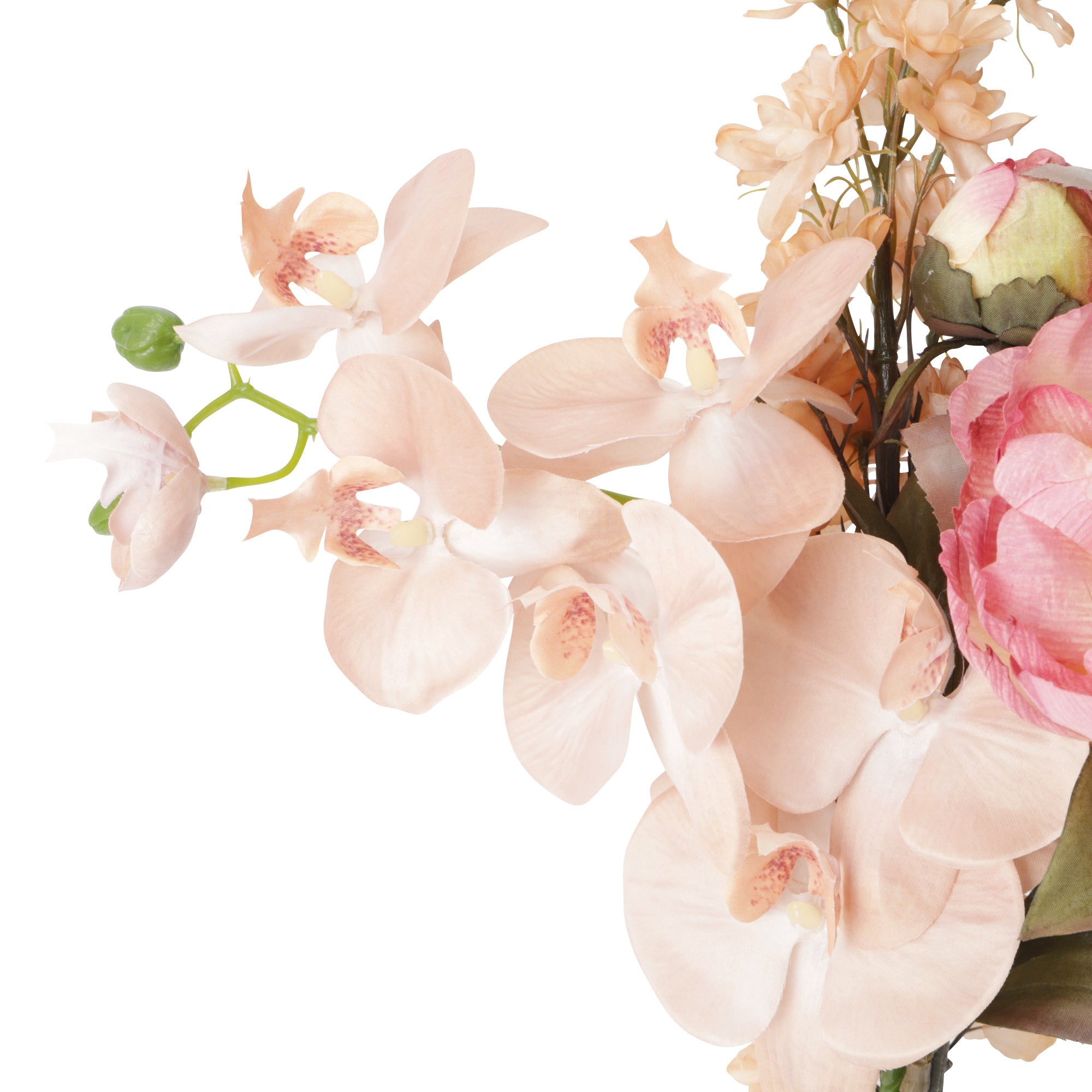 コーラルカラーのグラデーションカラーが魅力のトレンド感あるワントーンブーケです。 くすみカラーの華やかなコチョウランがアクセントになっています。 そのまま飾れて、綺麗なお花をお手入れいらずでずっとお楽しみいただけます。 ▼あわせて使える花瓶はこちら 花瓶・フラワーベース一覧