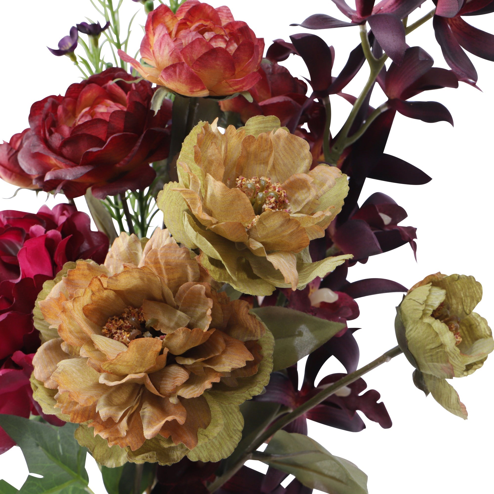 リーフとフラワーがたっぷりのシックでゴージャスな印象のブーケです。 クロス フラワーベース ゴールドとのコーディネートがおすすめです。 そのまま飾れて、綺麗なお花をお手入れいらずでずっとお楽しみいただけます。 ▼あわせて使える花瓶はこちら 花瓶・フラワーベース一覧