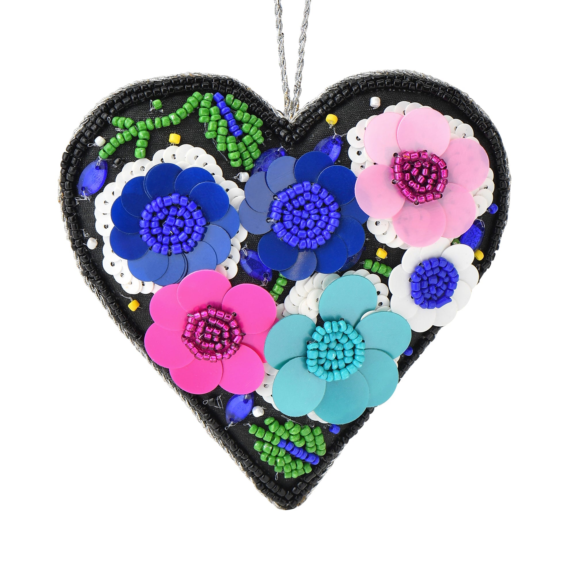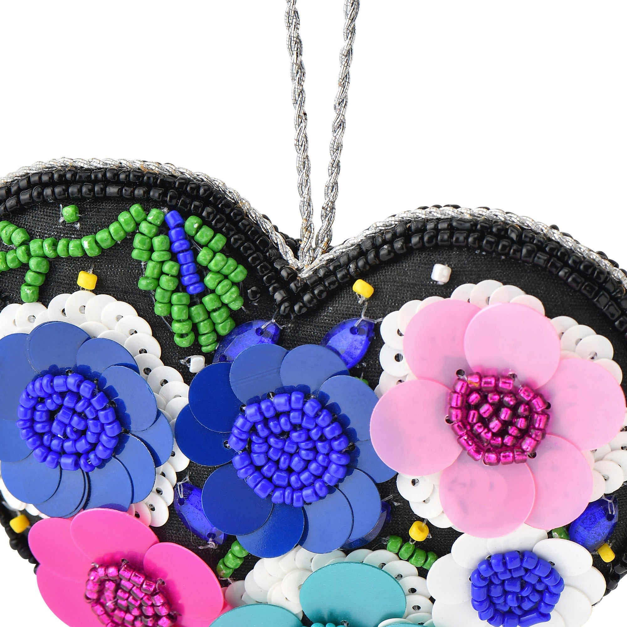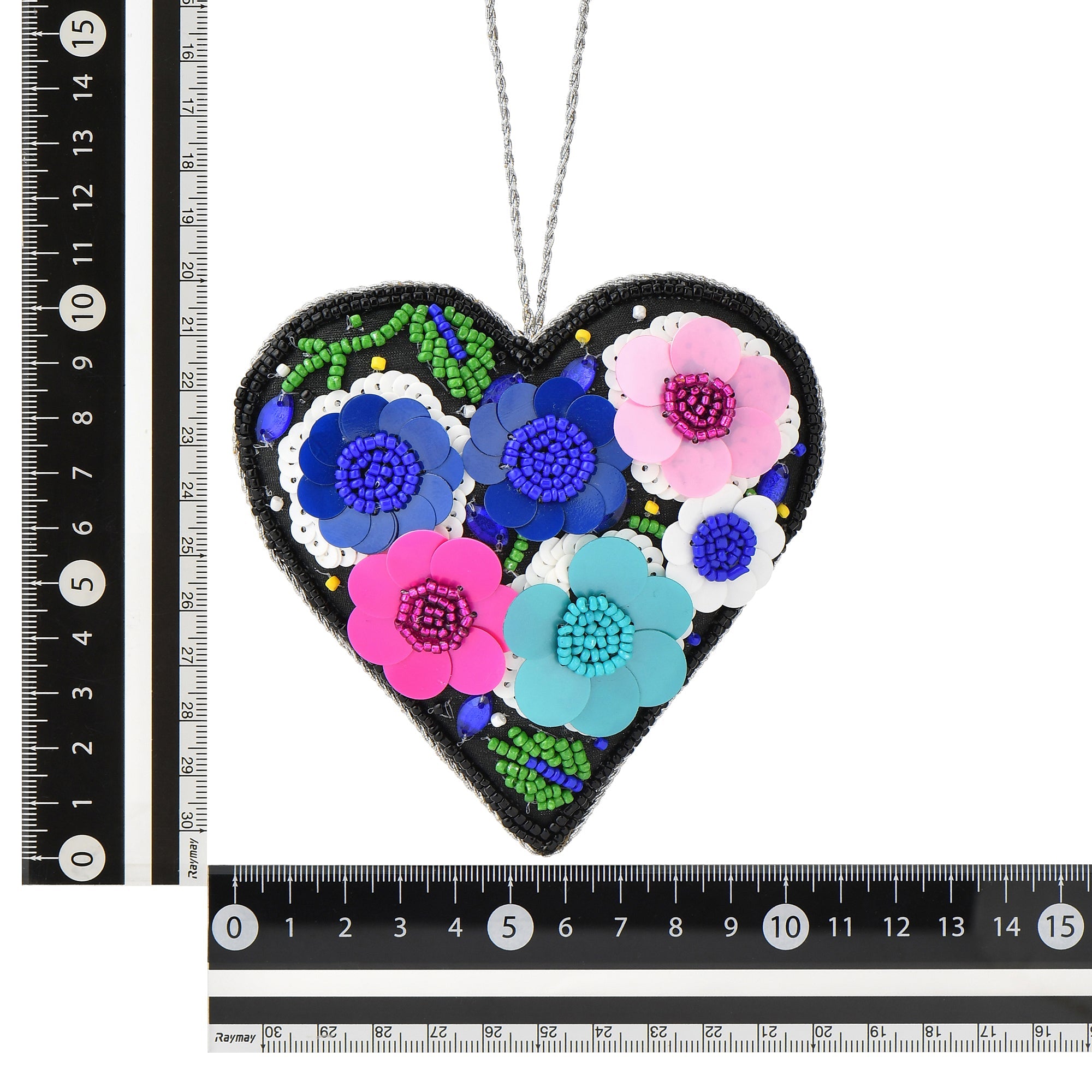 ハート型に様々なお花をあしらった、目を引くビーズオーナメントです。 インパクトのあるデコレーションが楽しめます。