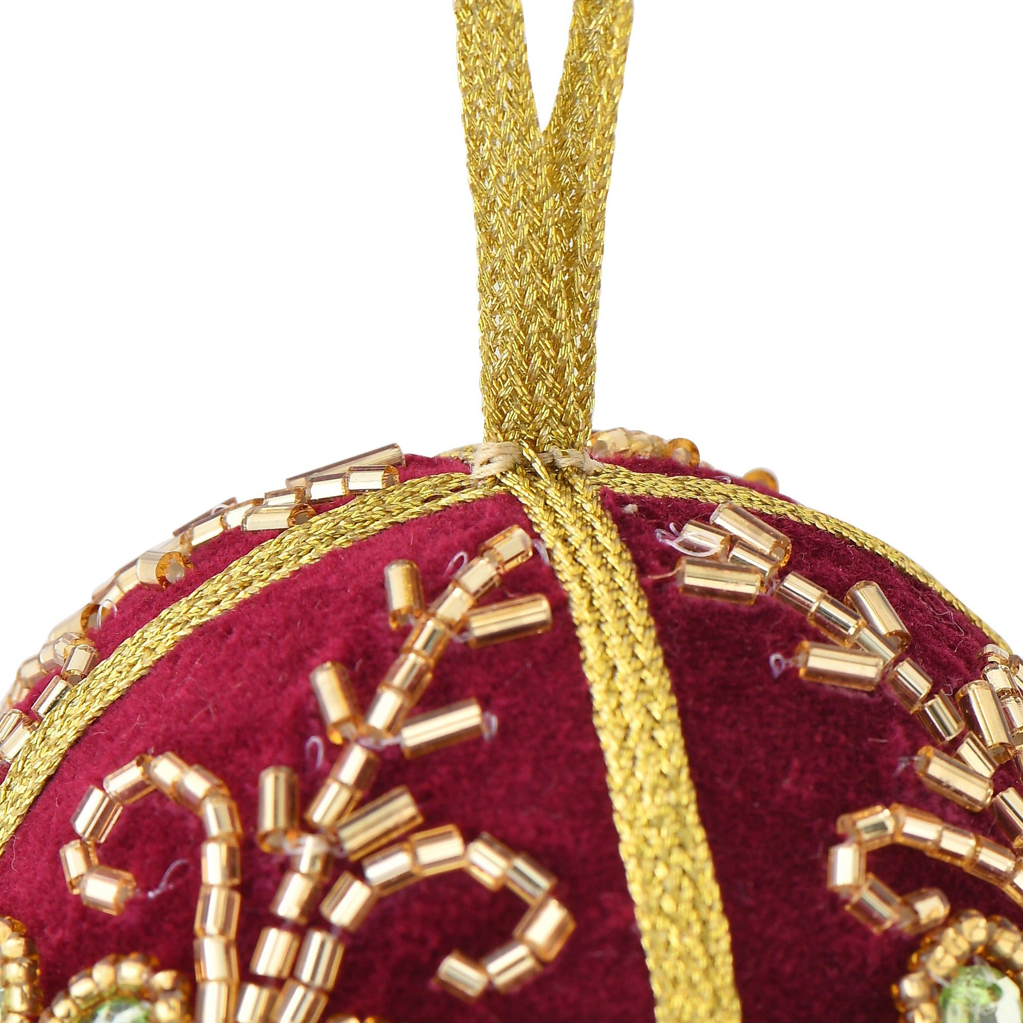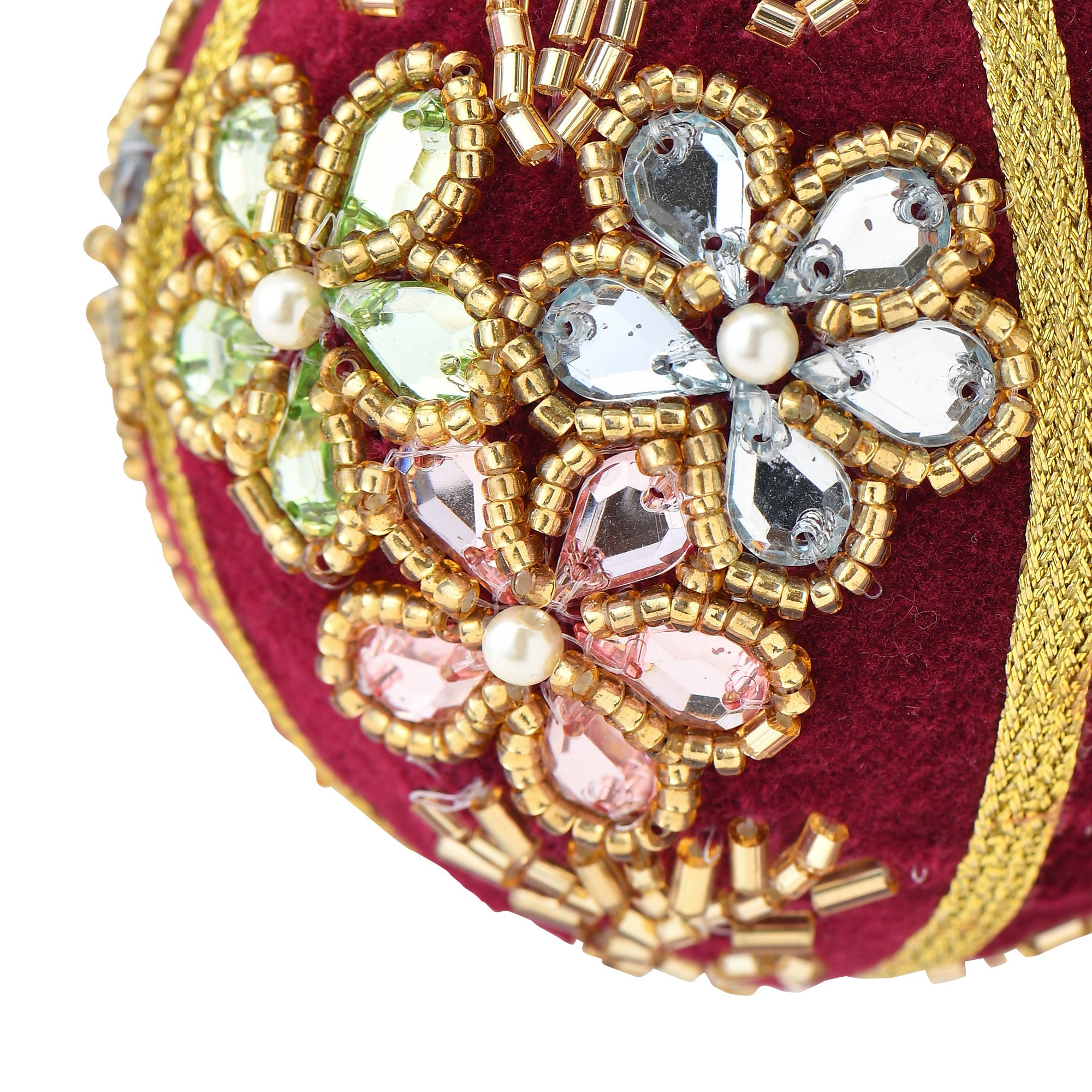 ピンクの起毛生地にビーズでお花をデザインしたオーナメントです。