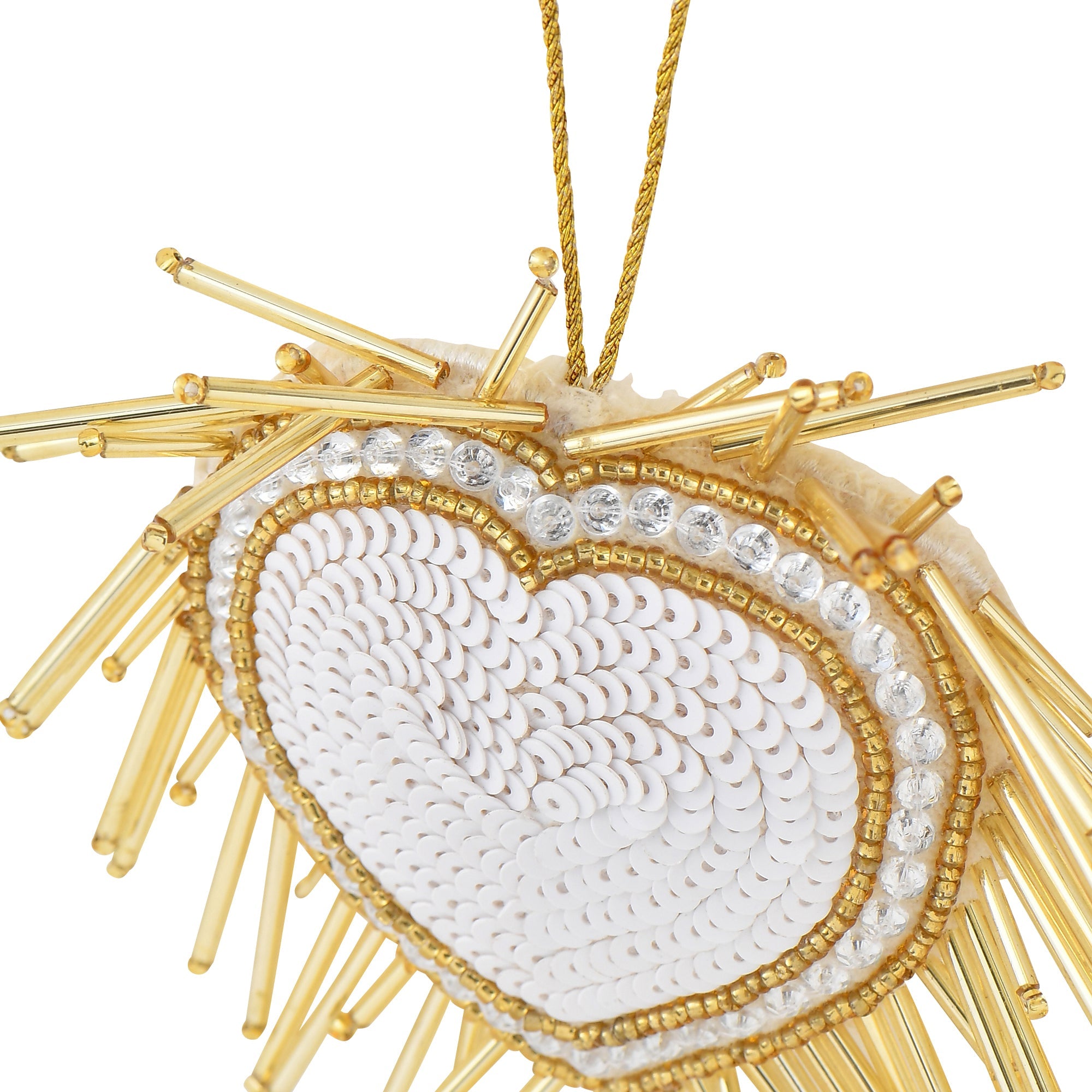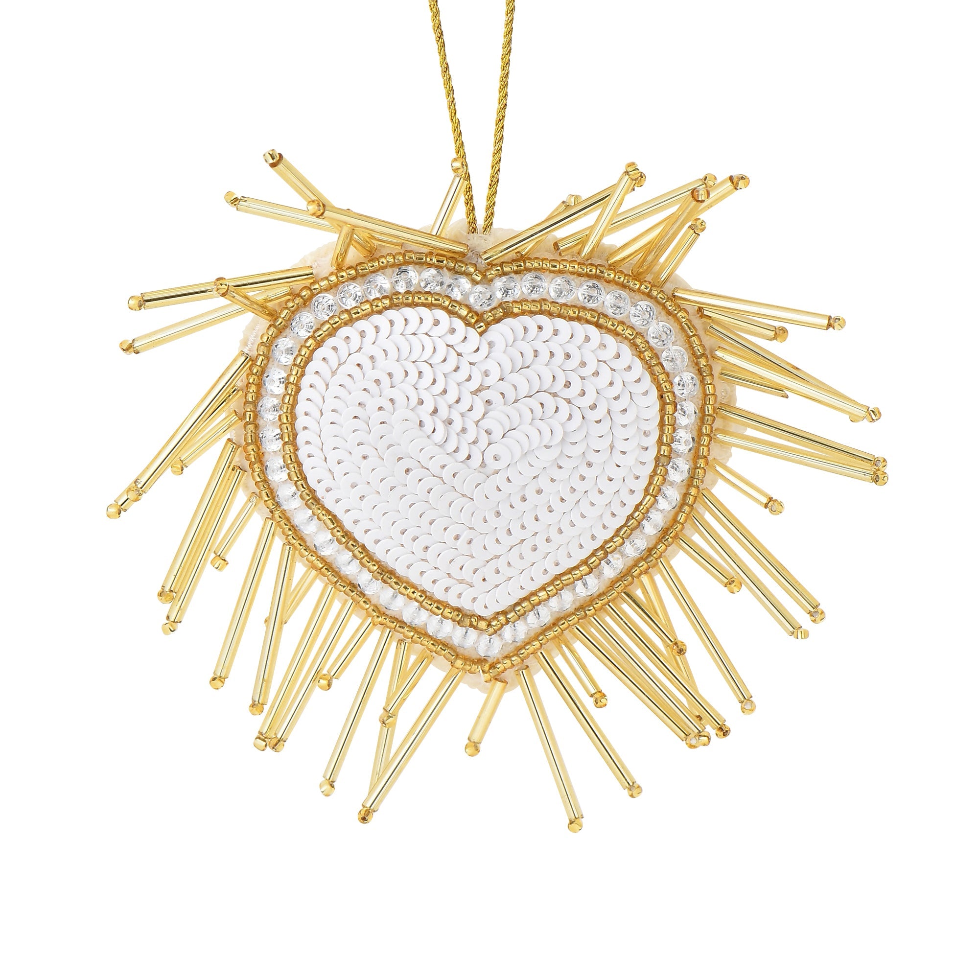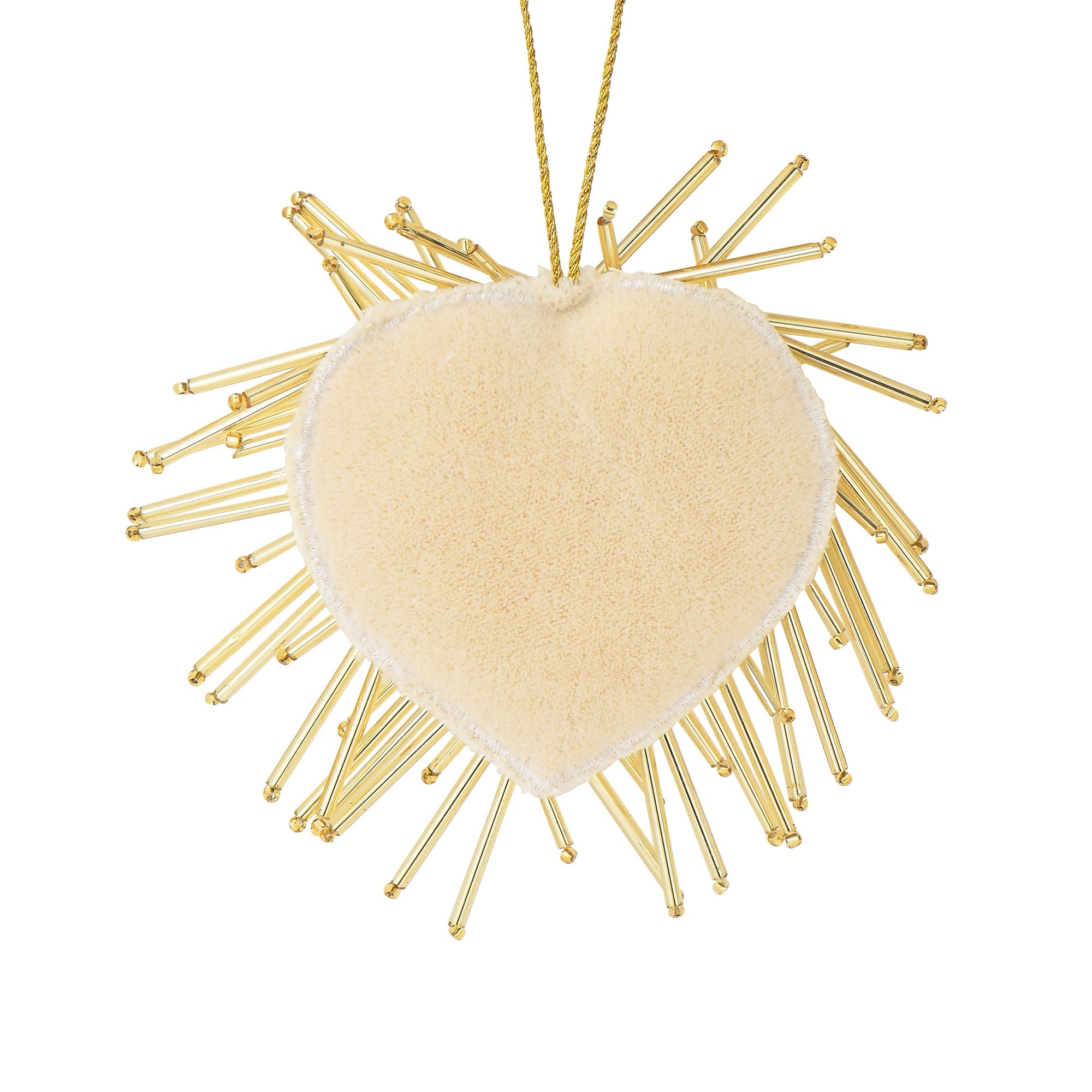 ハートの形にビーズの針がたくさんついたデザインのビーズオーナメントです。