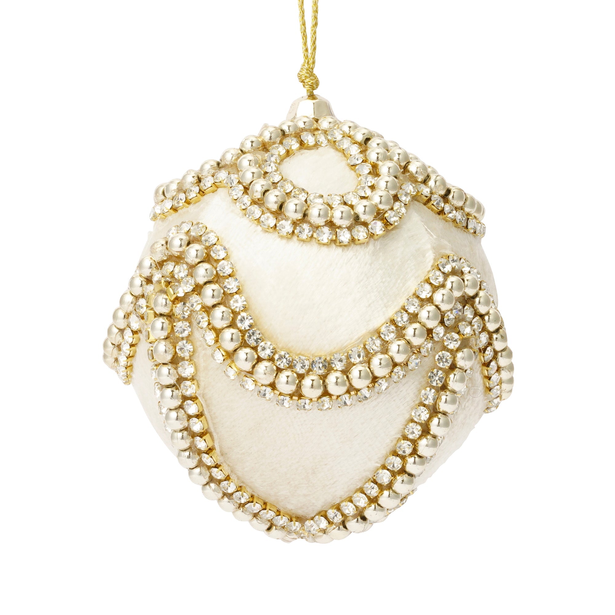 ゴールドのラインにストーンが映えるファブリックオーナメントです。 ツリーを華やかに彩ります。