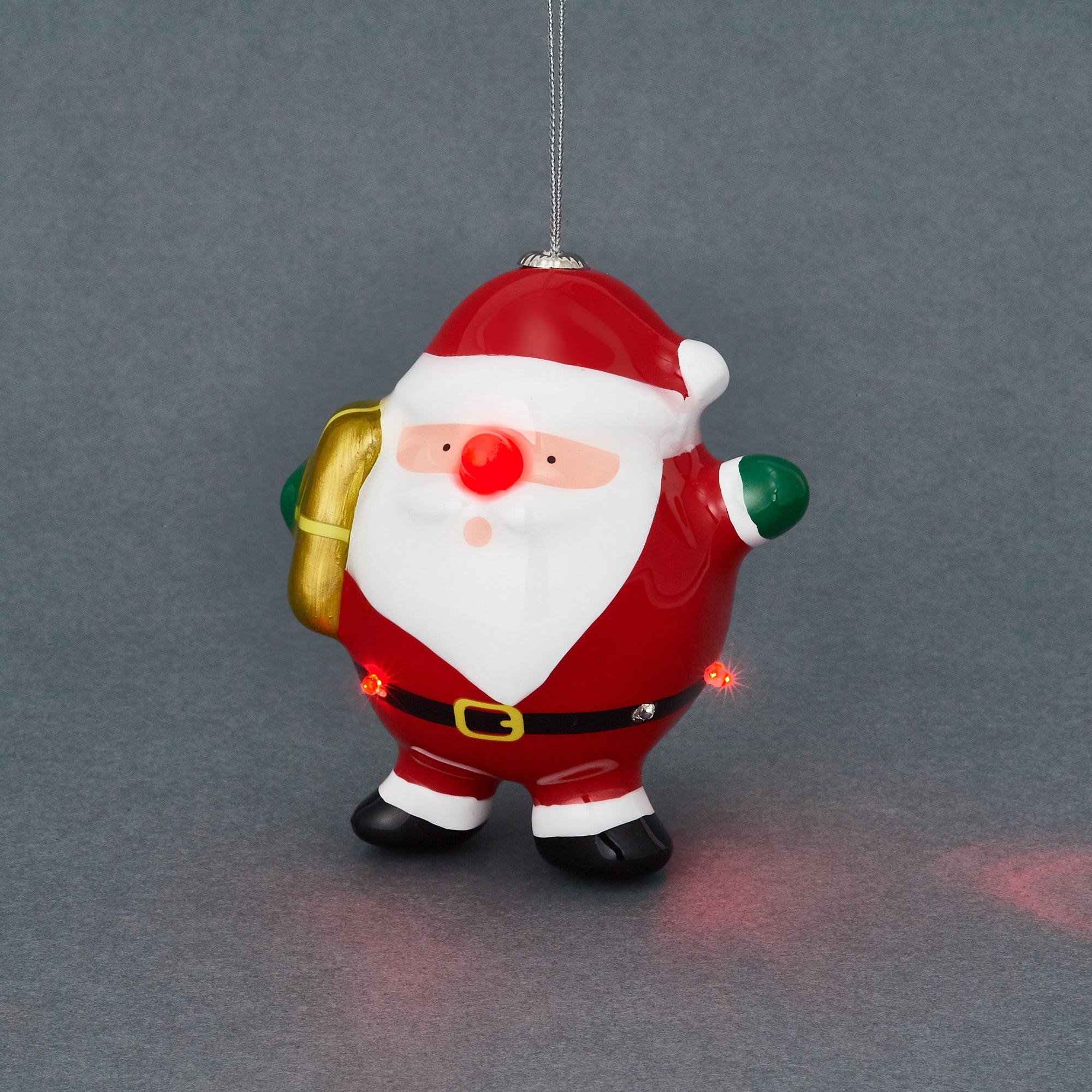 LEDがピカピカと交互に光るサンタのオーナメントです。 キャッチーで目を引くデザインとLEDの光り方がツリーを楽しく彩ります。
