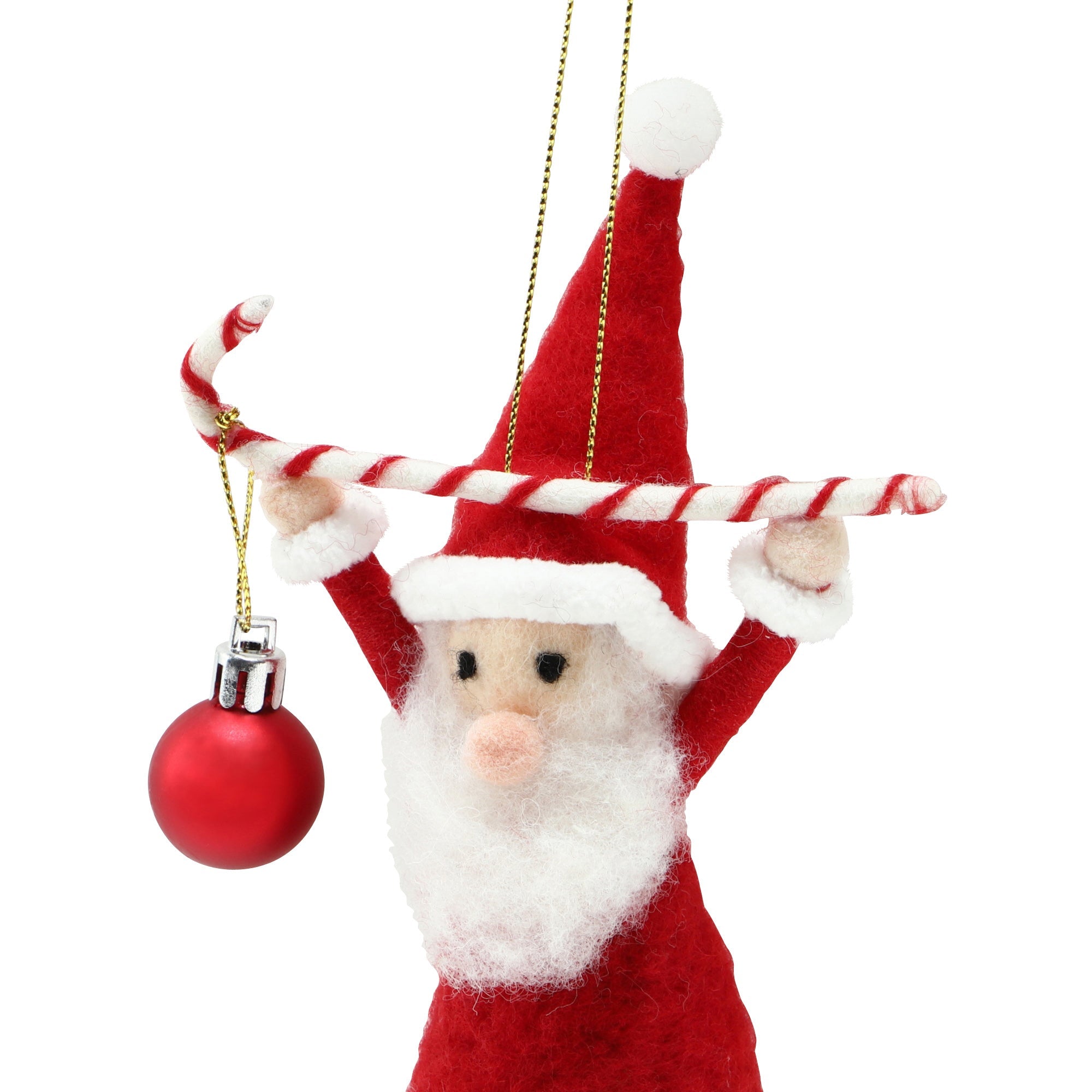 サンタの表情が微笑ましいフェルトのオーナメントです。 ツリーを愛らしく彩ります。