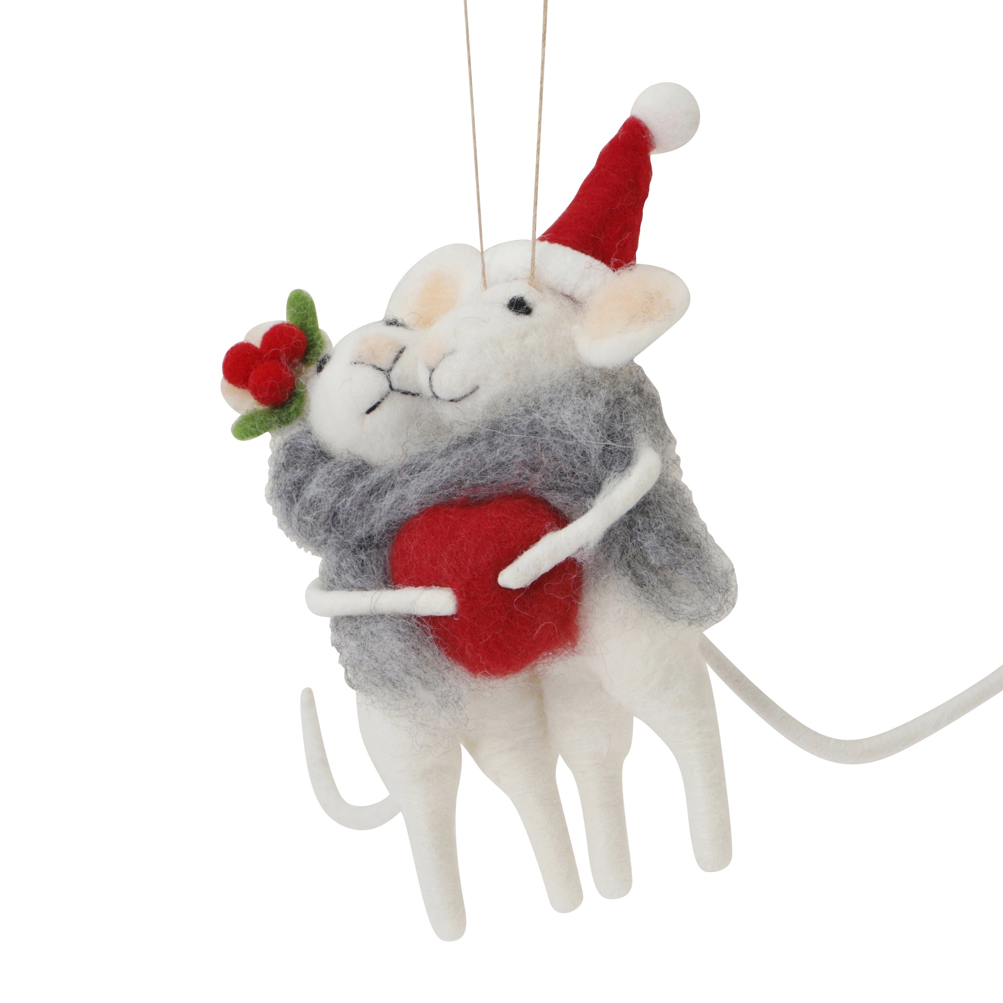 ほっこりかわいい、ねずみのクリスマスオーナメントです。 ねずみが二匹でマフラーを巻いている様子がキュートなデザイン。ツリーを愛らしく彩ります。