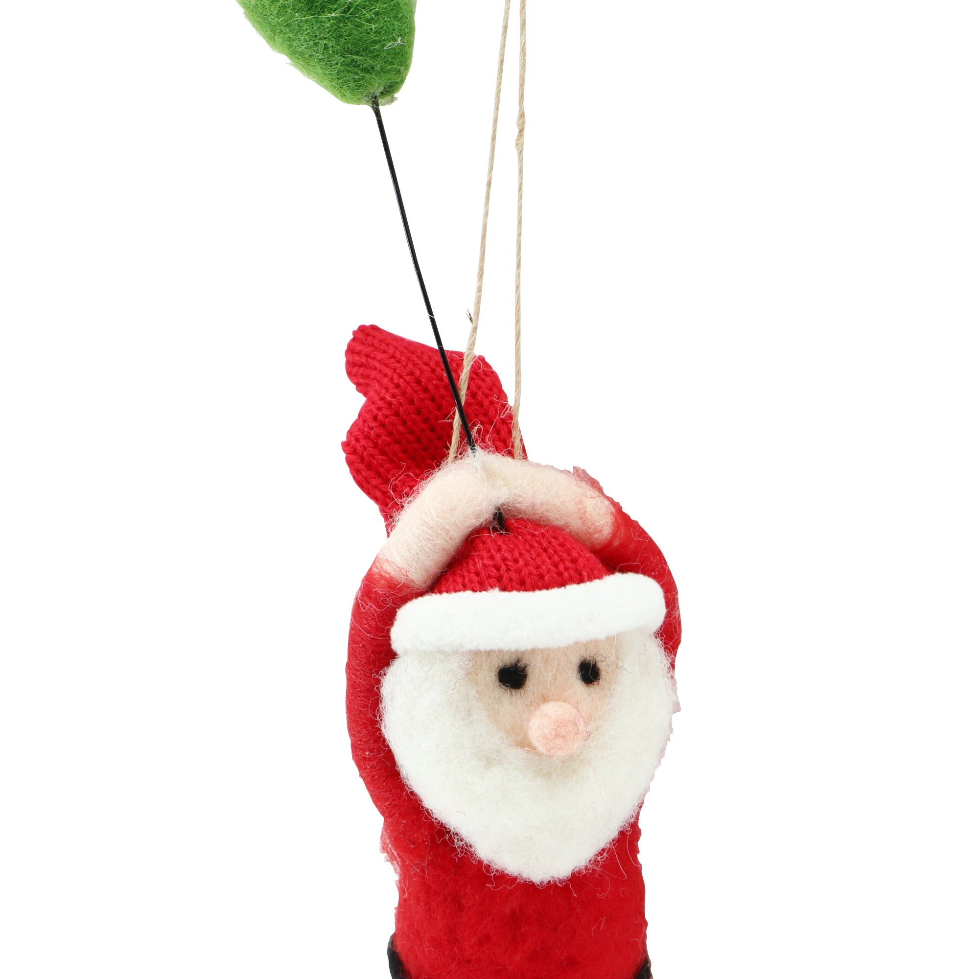 サンタが風船で空を飛んでいるような姿がキュートなオーナメントです。 ツリーを愛らしく彩ります。