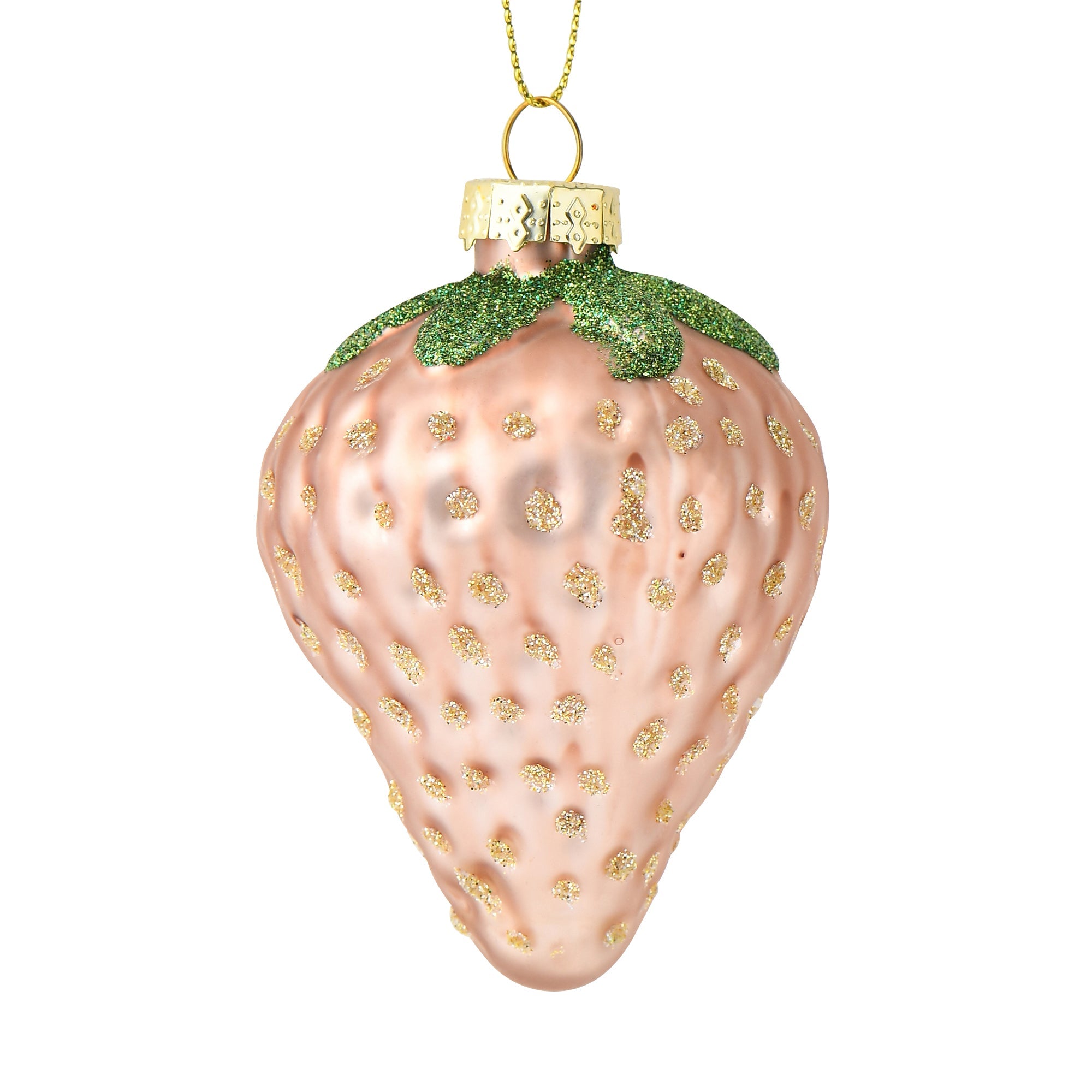 ベビーピンクのいちごのモチーフがかわいらしいガラスオーナメントです。