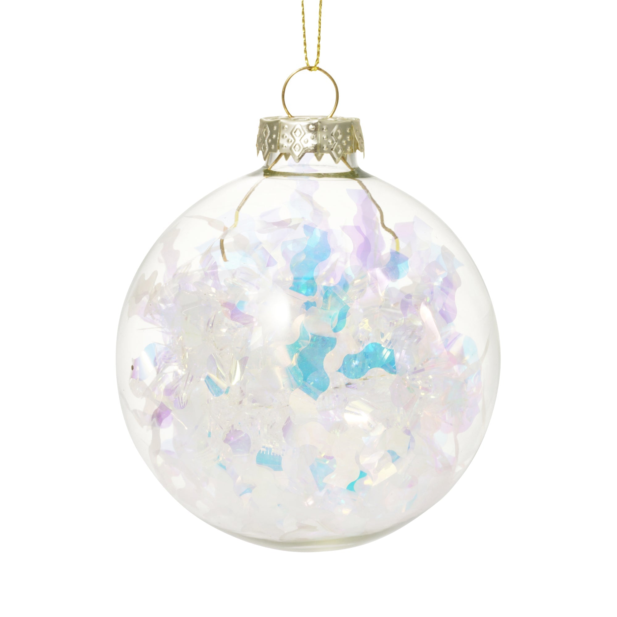 オーロラ色がきれいなガラスオーナメントです。 ガラスの中にオーロラ色のフィルムが入っており、見る角度で様々な表情が楽しめます。