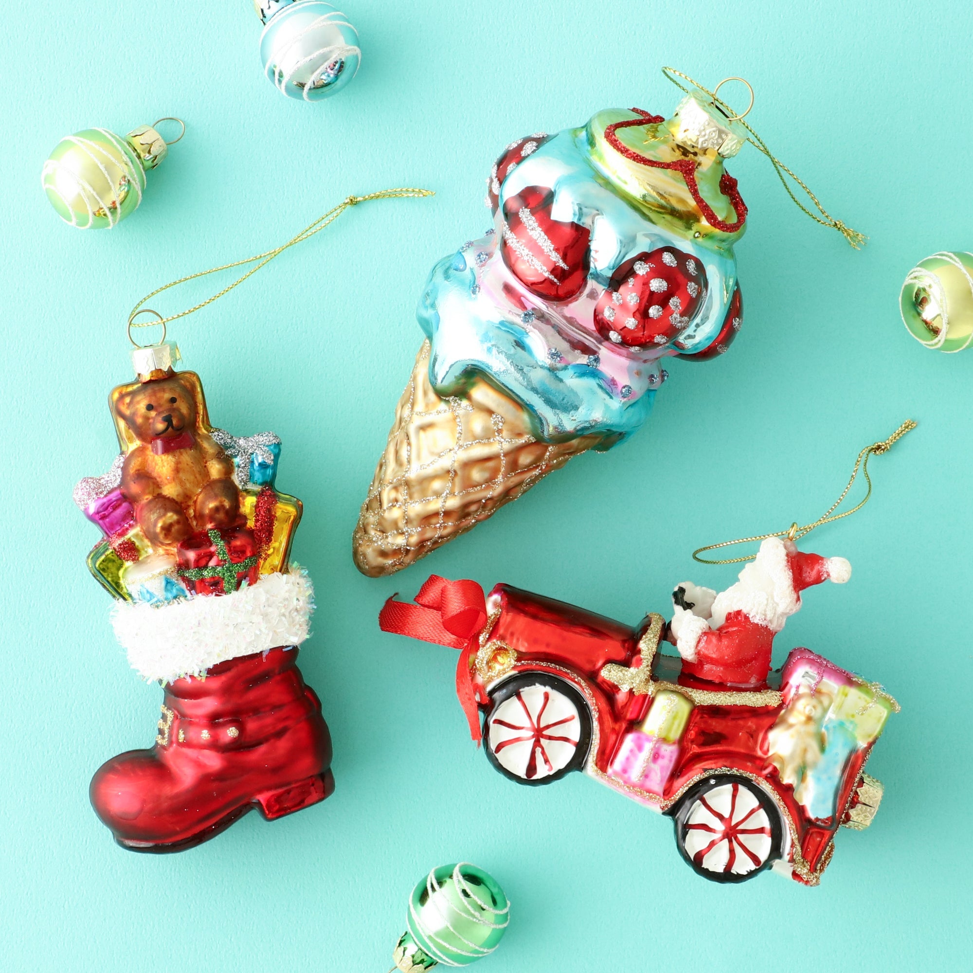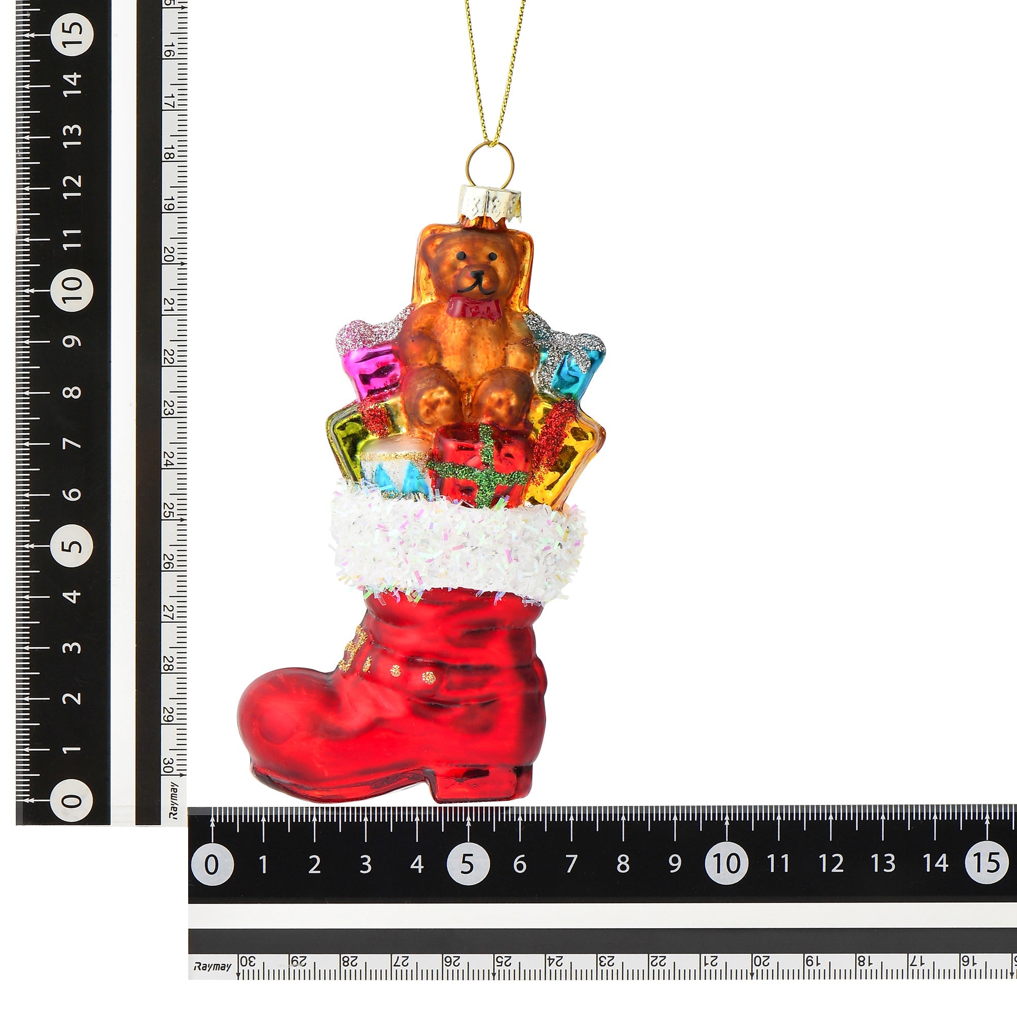 プレゼントがいっぱい詰まったブーツをモチーフにしたガラスオーナメントです。