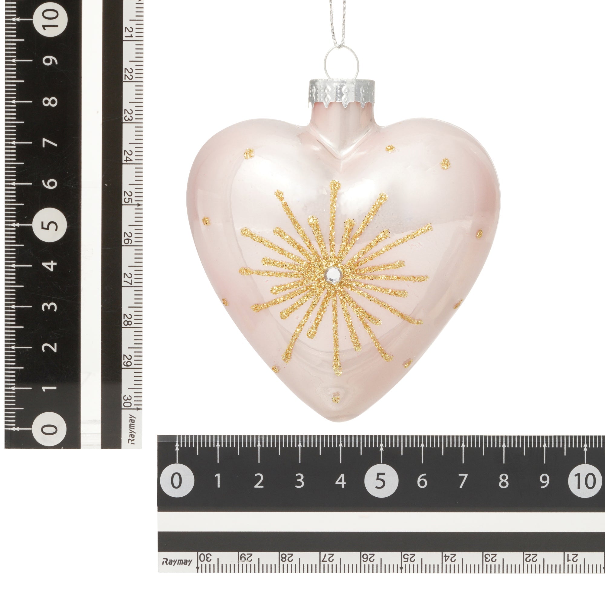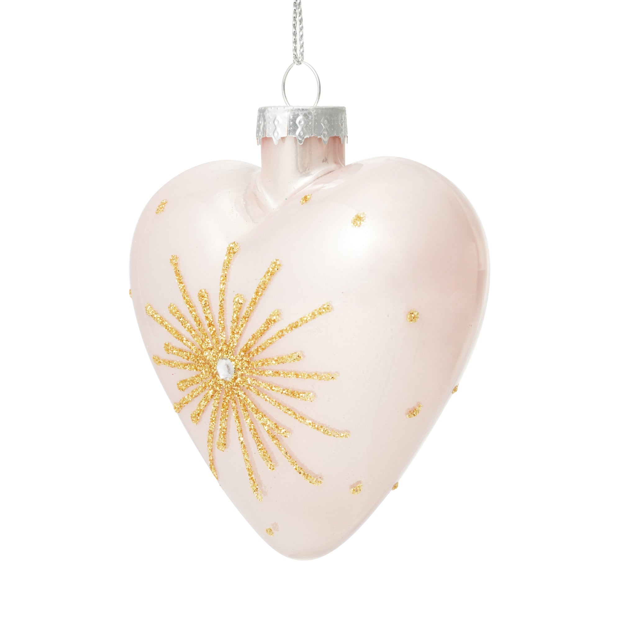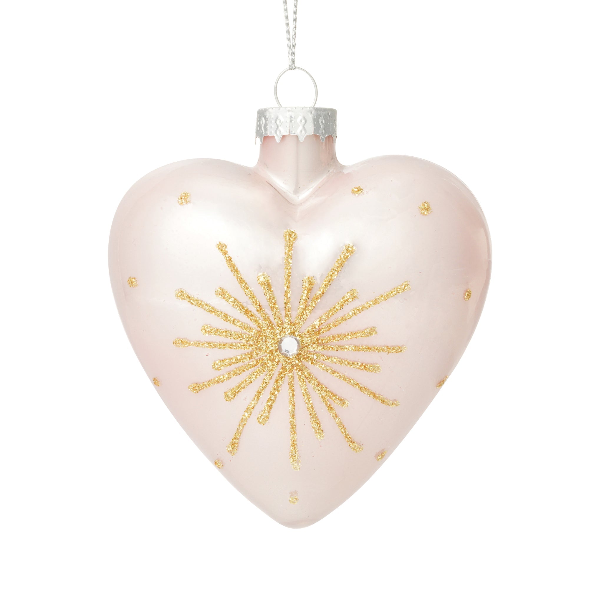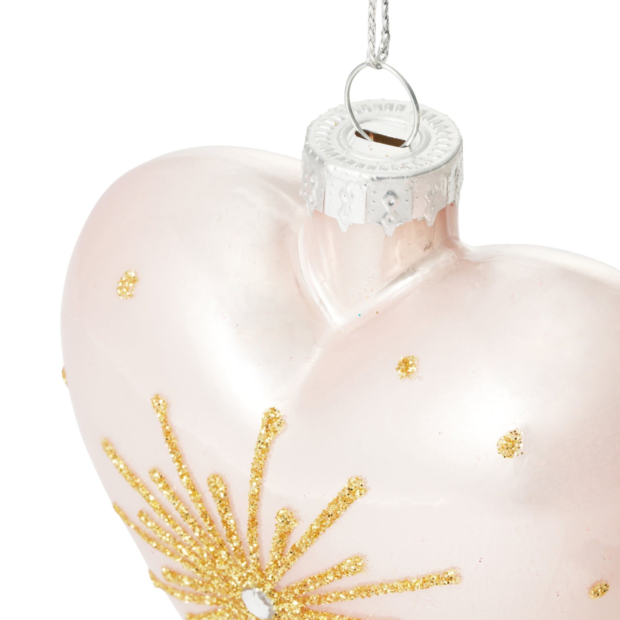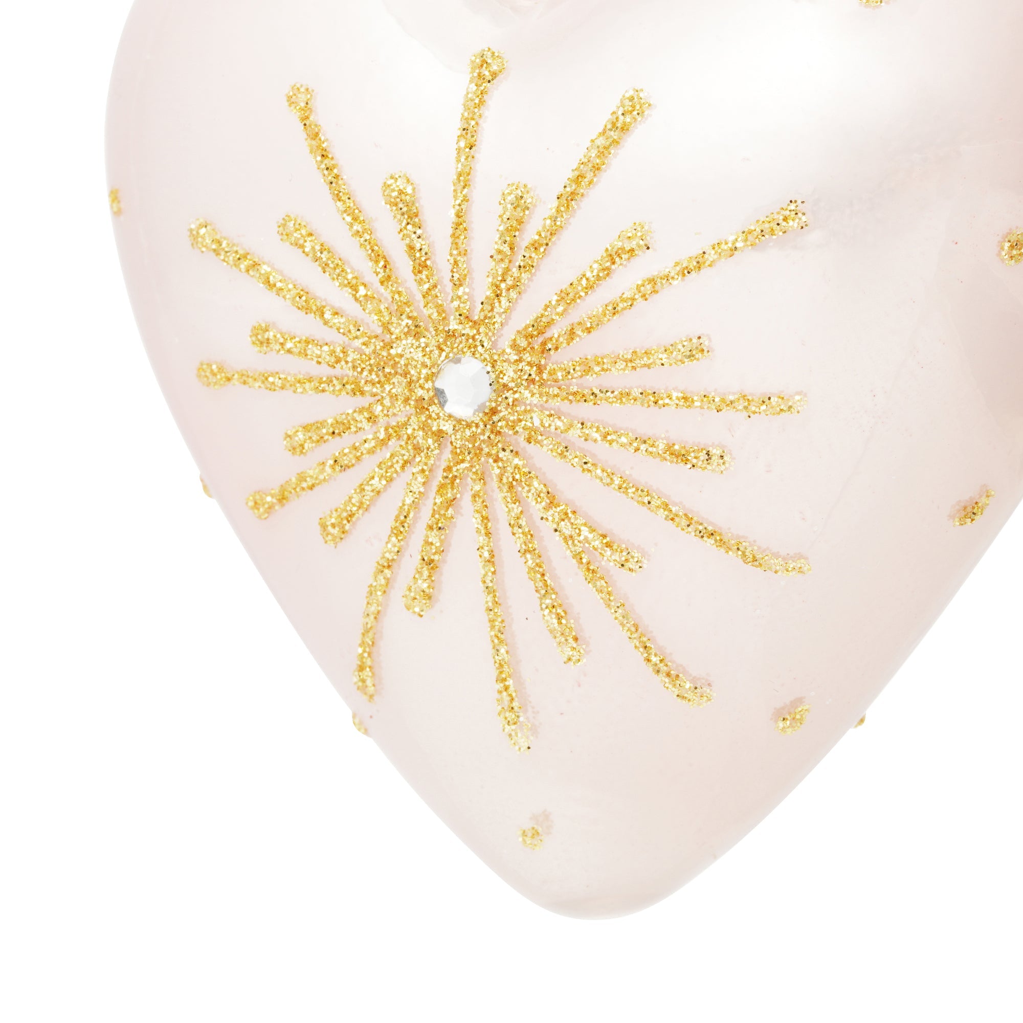 上品なピンクとゴールドの装飾が映えるハートモチーフのガラスオーナメントです。