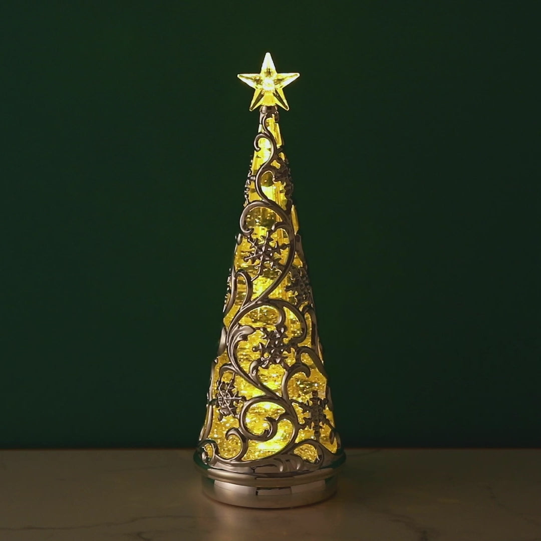 スイッチを入れるとLEDライトがキラキラ光るウォーターツリーです。 スノー柄がエレガントなデザインで、玄関先や窓辺、テーブルの上などちょっとしたスペースを華やかに演出します。さりげなくお部屋をクリスマス仕様にしたいときにもおすすめです。 スイッチを入れると中のラメが自動で舞い上がり、LEDに照らされキラキラ光ります。WARMとRAINBOWの2種類のライトが楽しめるので気分によって使い分けできるのも嬉しいポイントです。
