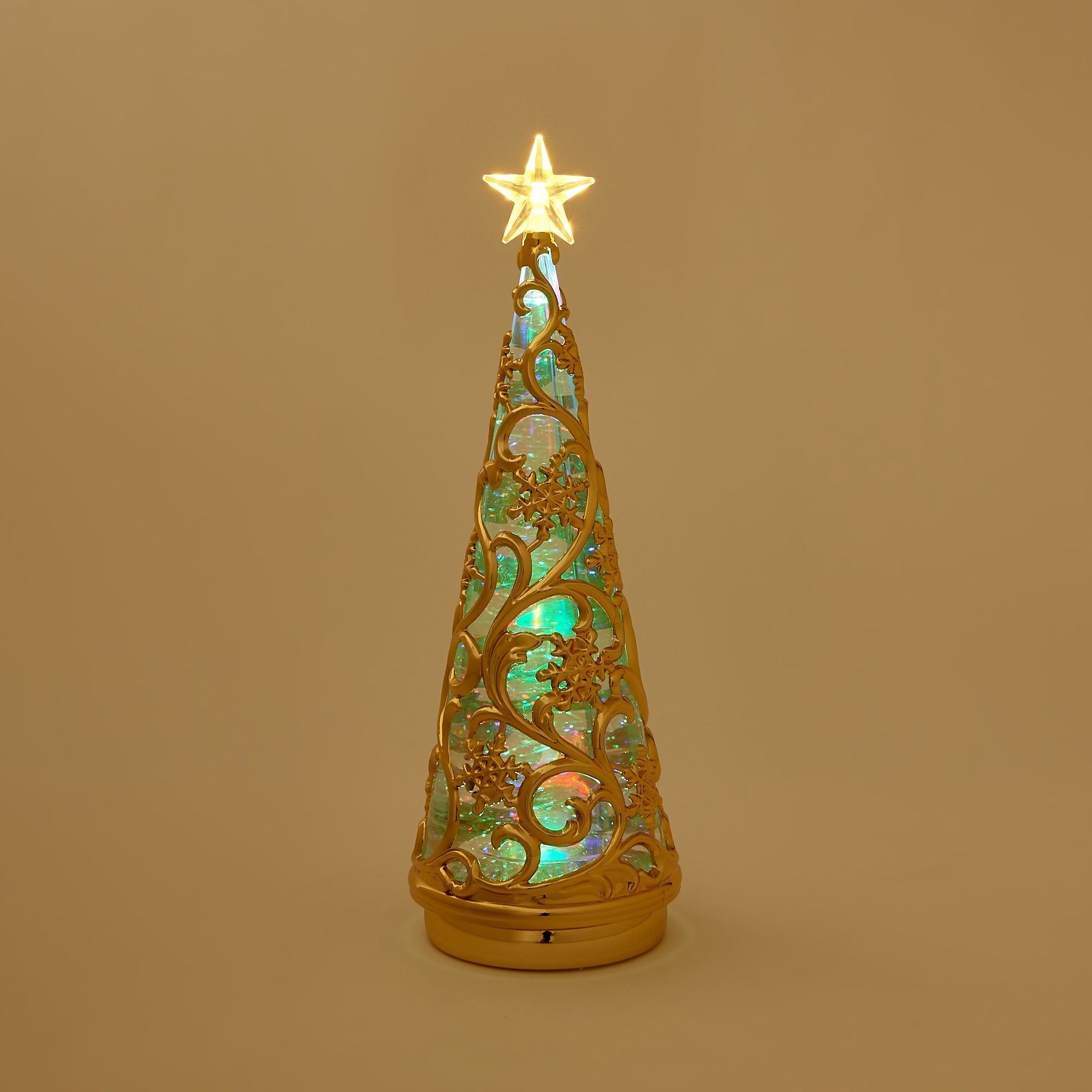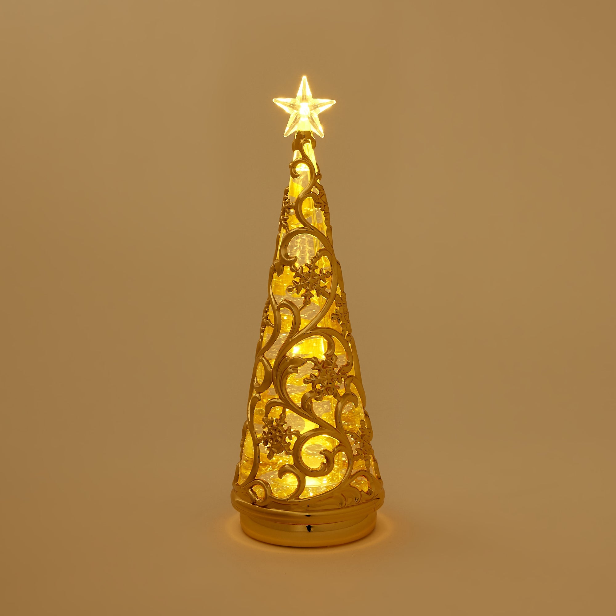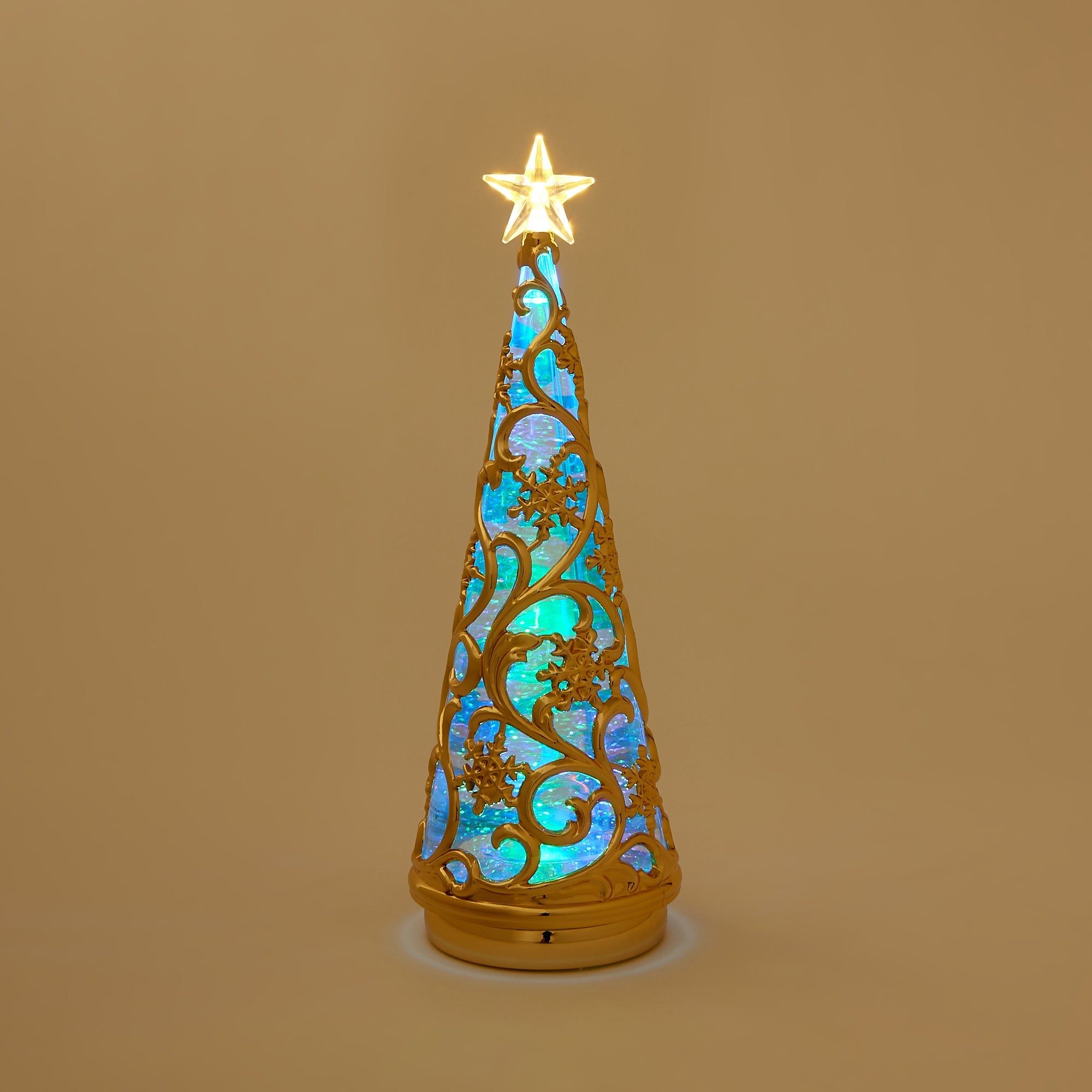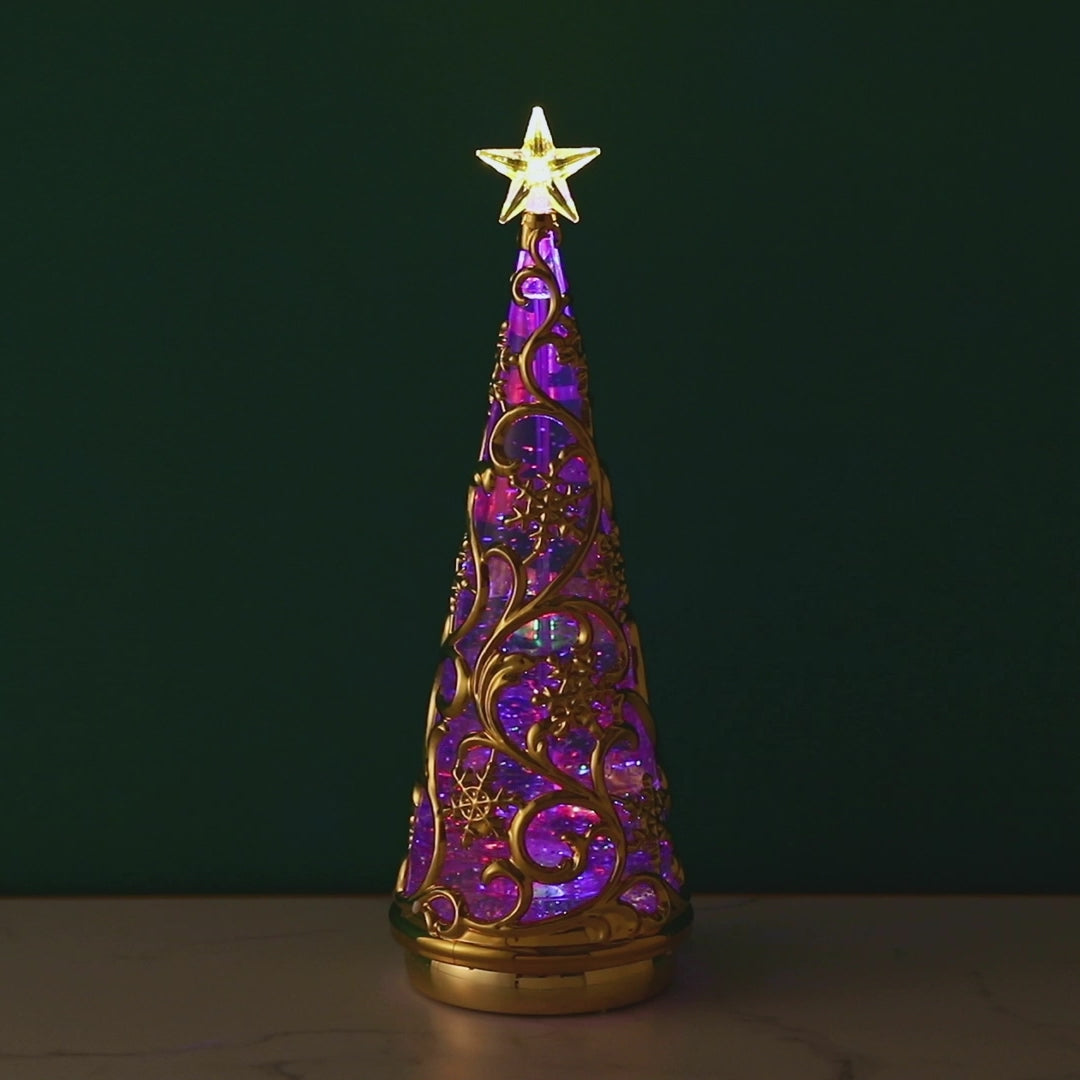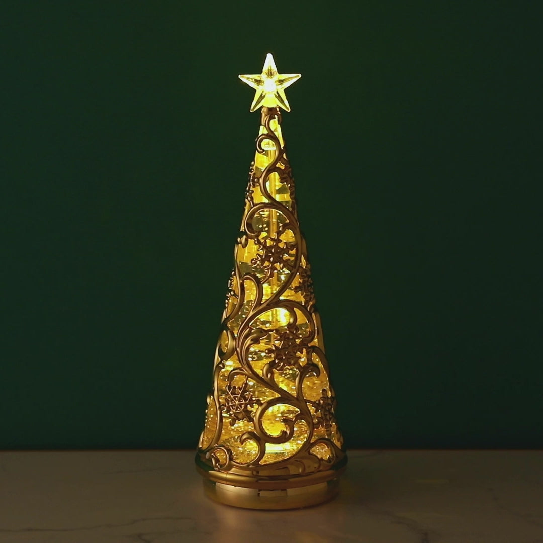 スイッチを入れるとLEDライトがキラキラ光るウォーターツリーです。 スノー柄がエレガントなデザインで、玄関先や窓辺、テーブルの上などちょっとしたスペースを華やかに演出します。さりげなくお部屋をクリスマス仕様にしたいときにもおすすめです。 スイッチを入れると中のラメが自動で舞い上がり、LEDに照らされキラキラ光ります。WARMとRAINBOWの2種類のライトが楽しめるので気分によって使い分けできるのも嬉しいポイントです。