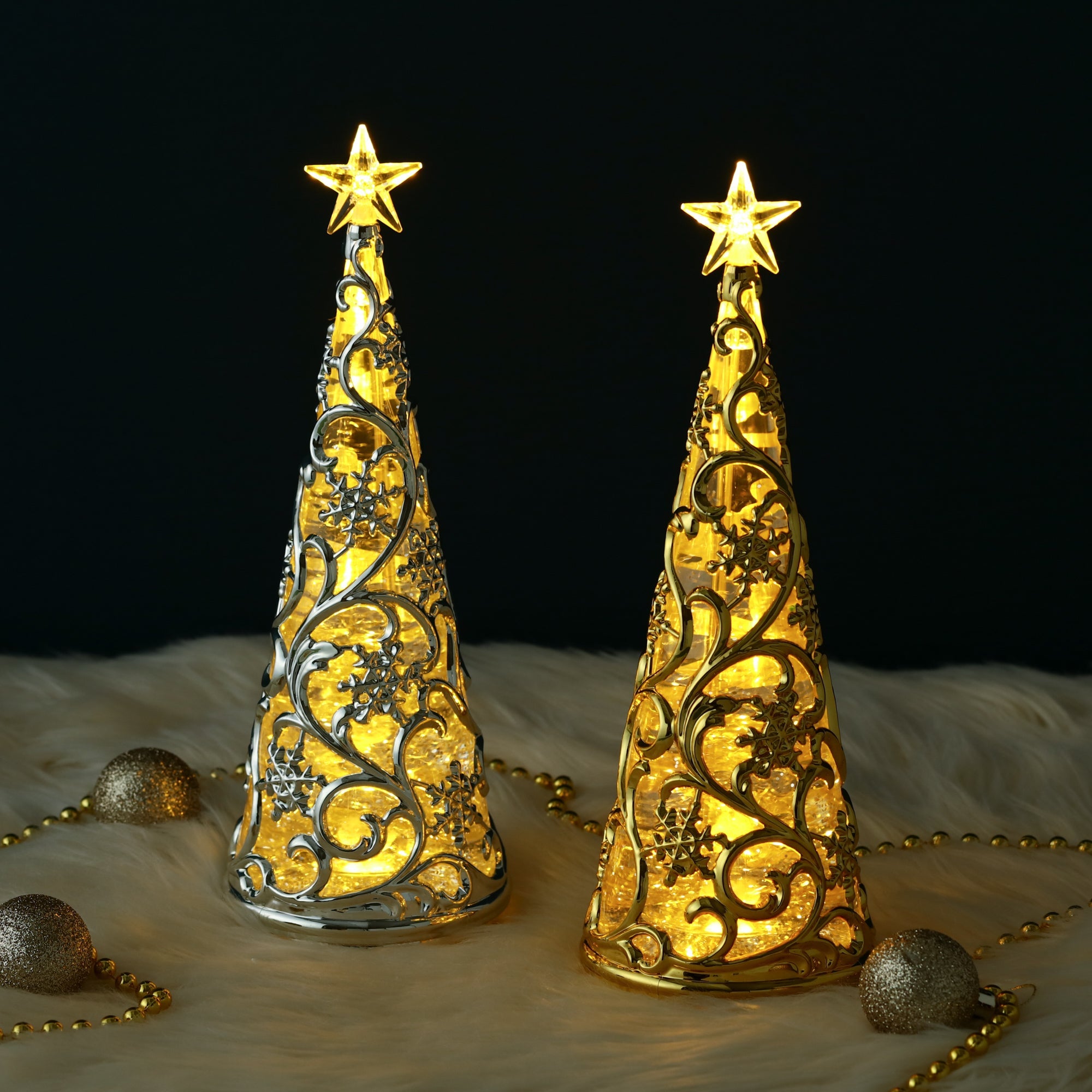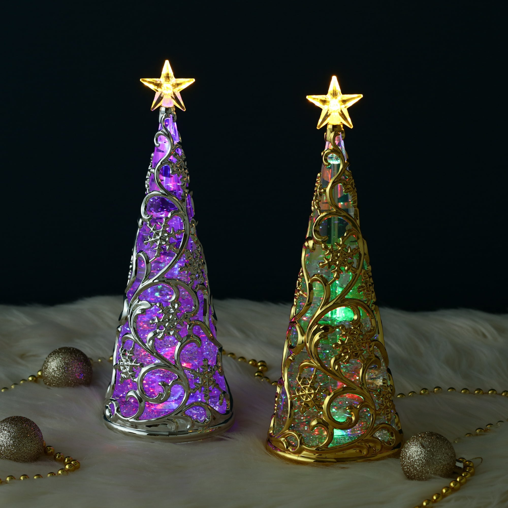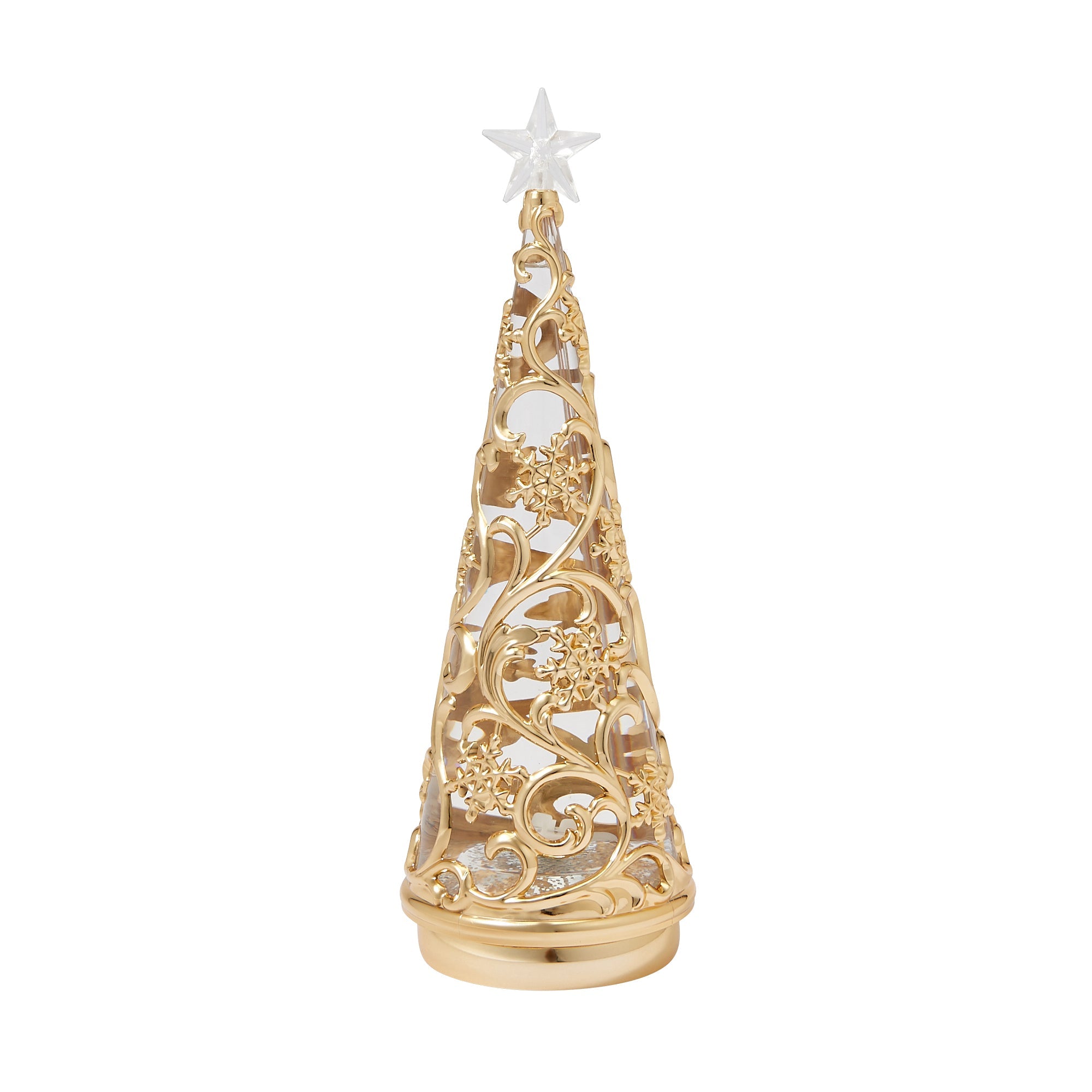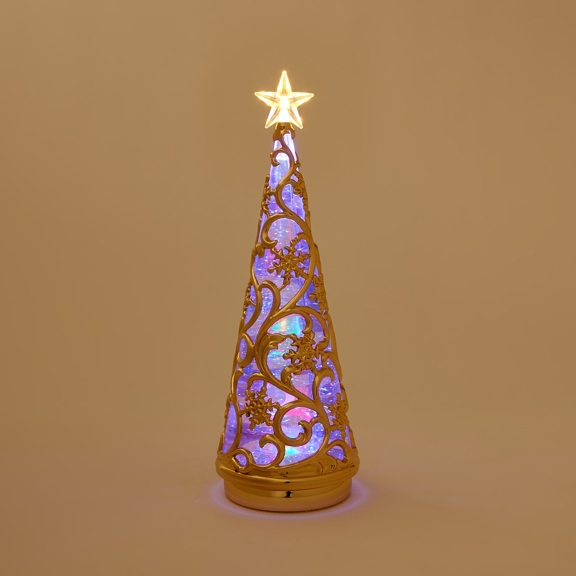 スイッチを入れるとLEDライトがキラキラ光るウォーターツリーです。 スノー柄がエレガントなデザインで、玄関先や窓辺、テーブルの上などちょっとしたスペースを華やかに演出します。さりげなくお部屋をクリスマス仕様にしたいときにもおすすめです。 スイッチを入れると中のラメが自動で舞い上がり、LEDに照らされキラキラ光ります。WARMとRAINBOWの2種類のライトが楽しめるので気分によって使い分けできるのも嬉しいポイントです。