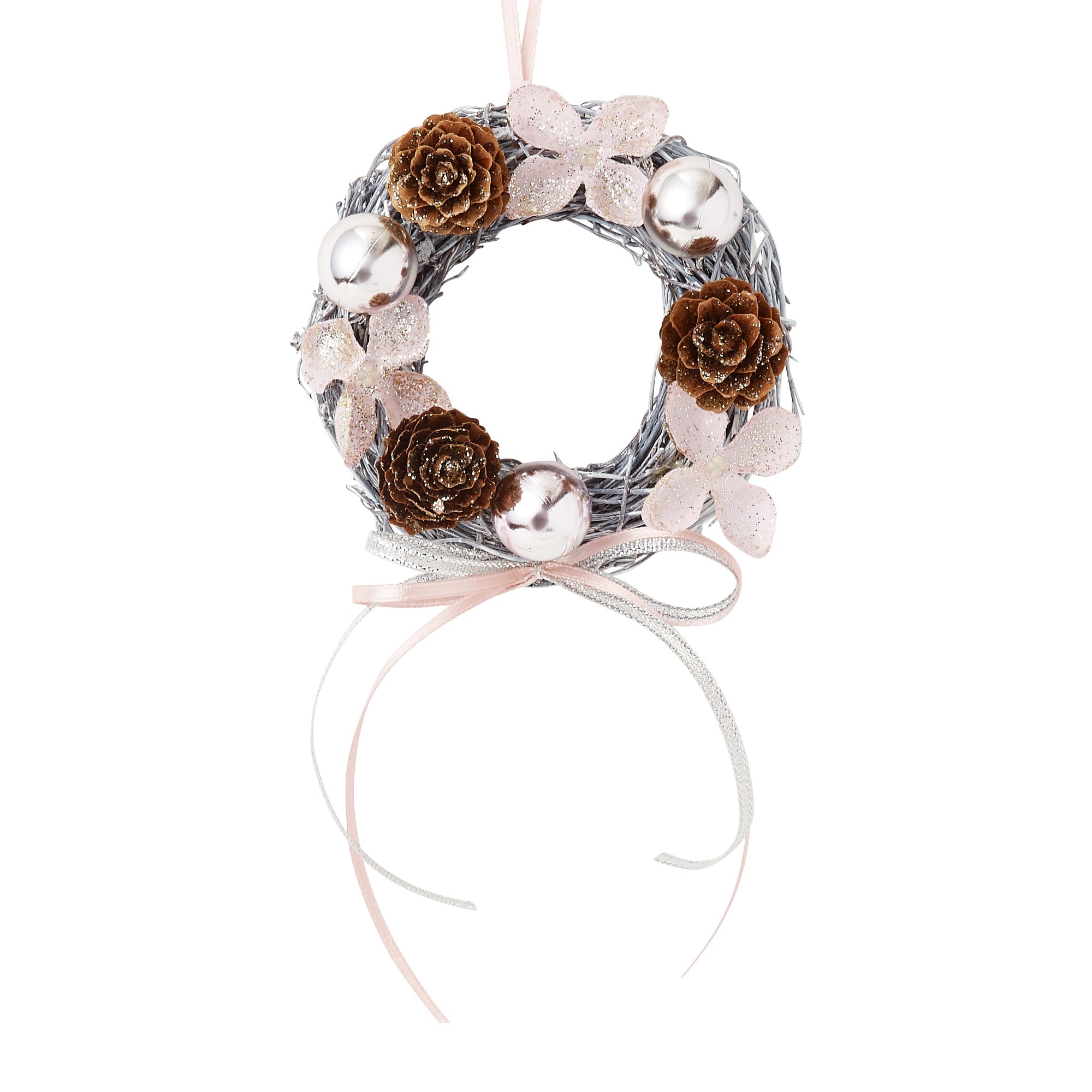小さくてかわいいリースです。 色のトーンをおさえ、全体的に上品な雰囲気のリースに仕上げています。 ちょっとしたギフトの飾りや、ダイニングシーンのワインボトルの飾りなど、クリスマスをかわいく演出するのに最適なアイテムです。 大きさ10cmのミニサイズなら、好きな場所やせまいスペースにも気軽に飾ることができます。 リースは壁に掛ける以外にも立て掛けたり、ブックボックスの上に置いたりすると素敵なディスプレイに。 他にも、リースをツリーに飾りつけたり、ディナーのお皿の上に飾ったりすると、ハイセンスなパーティーデコレーションが楽しめます。 おうちのあちこちにクリスマスアイテムを飾ると、クリスマス気分も高まります。